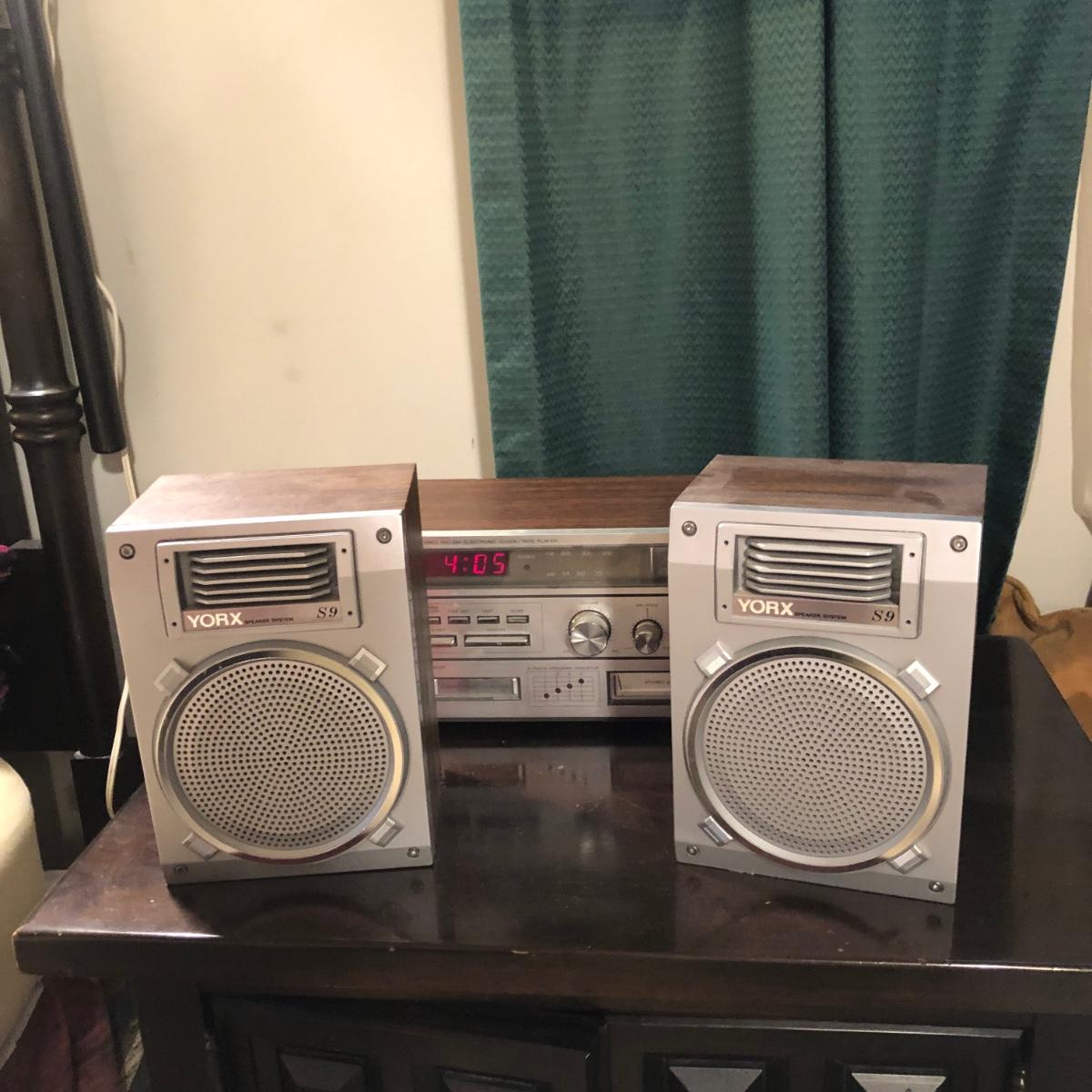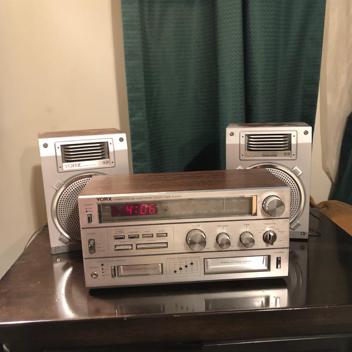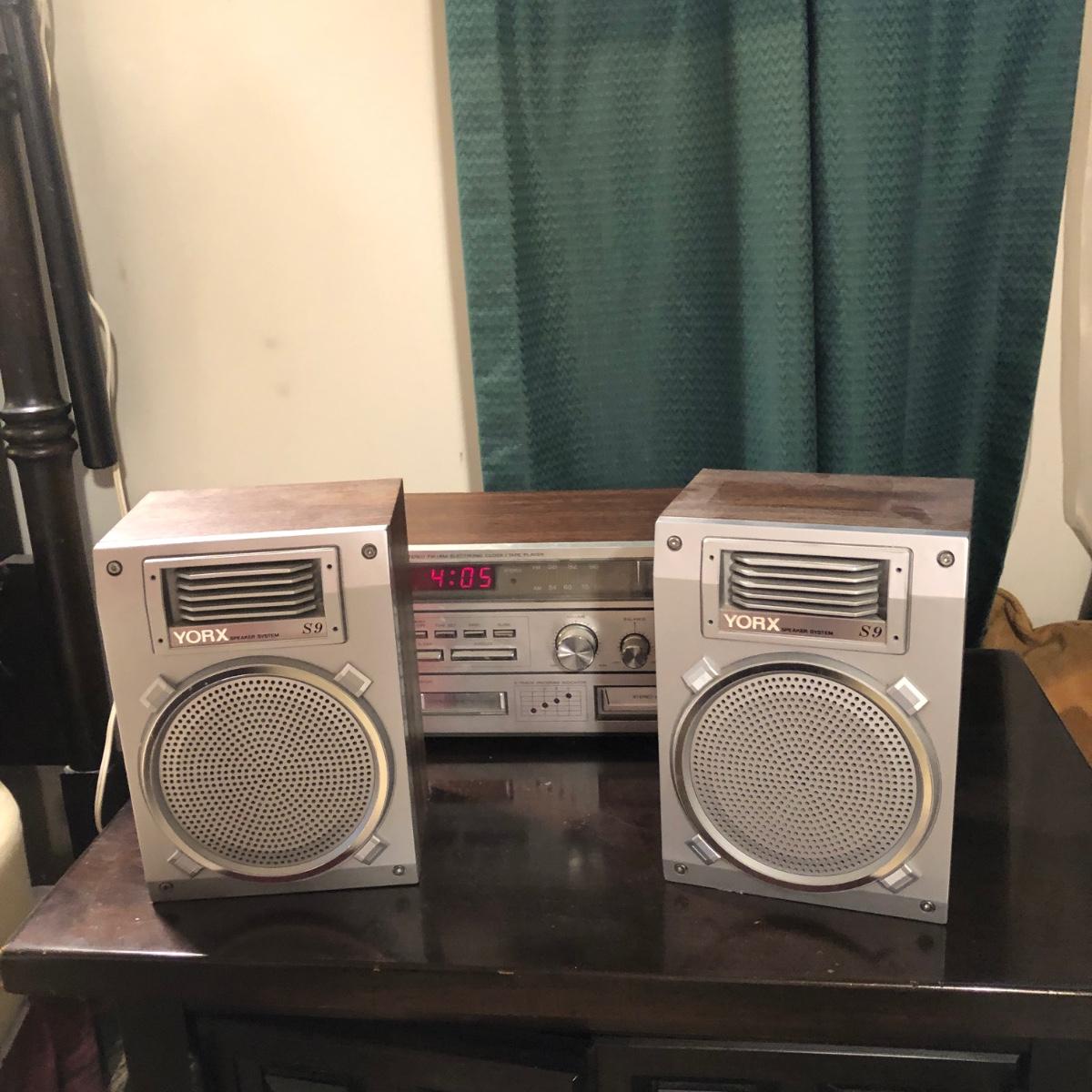 LOT 106M: Yorx Stereo FM/AM Electric Clock/Tape Player Model M2487 w/ Yorx Speakers Model S-9