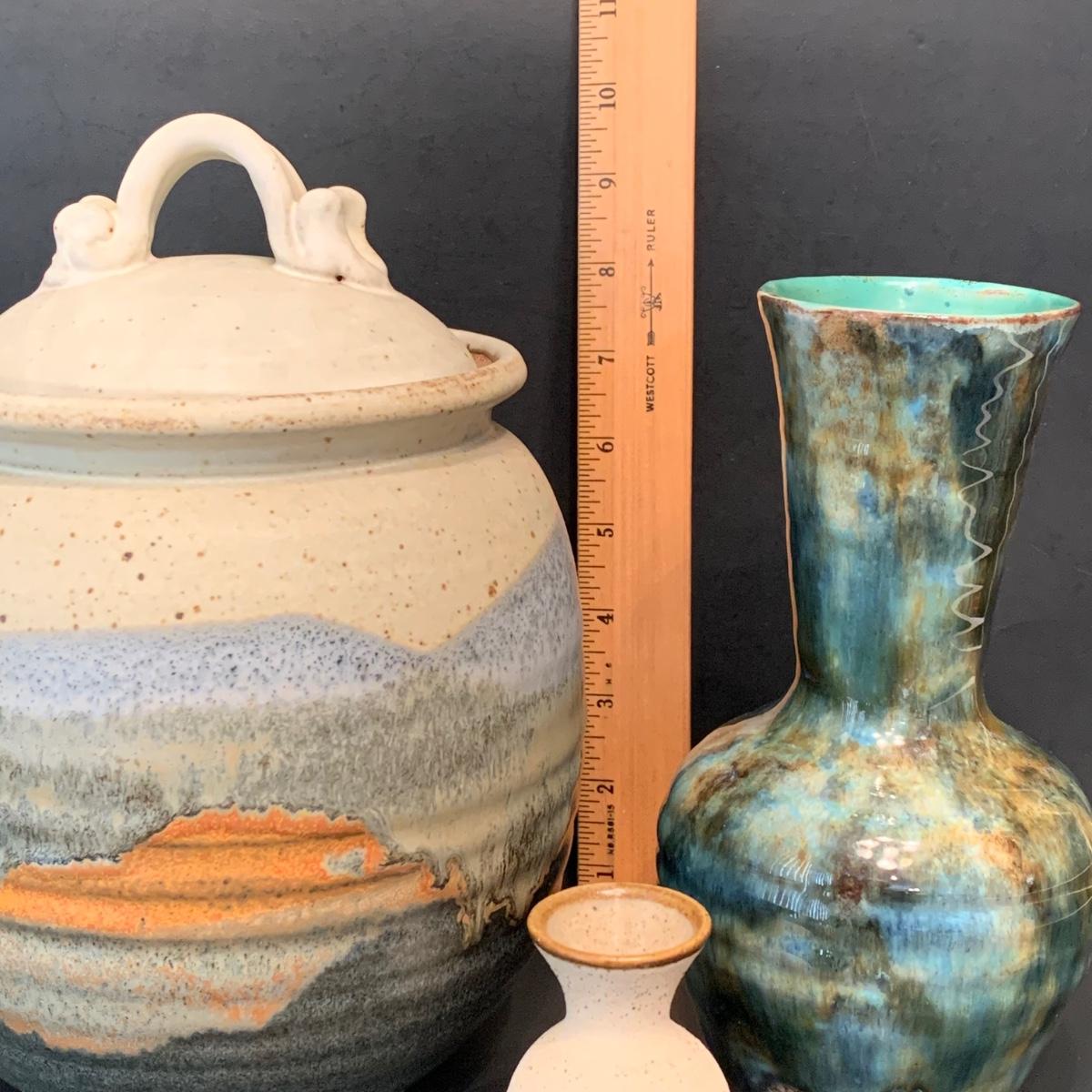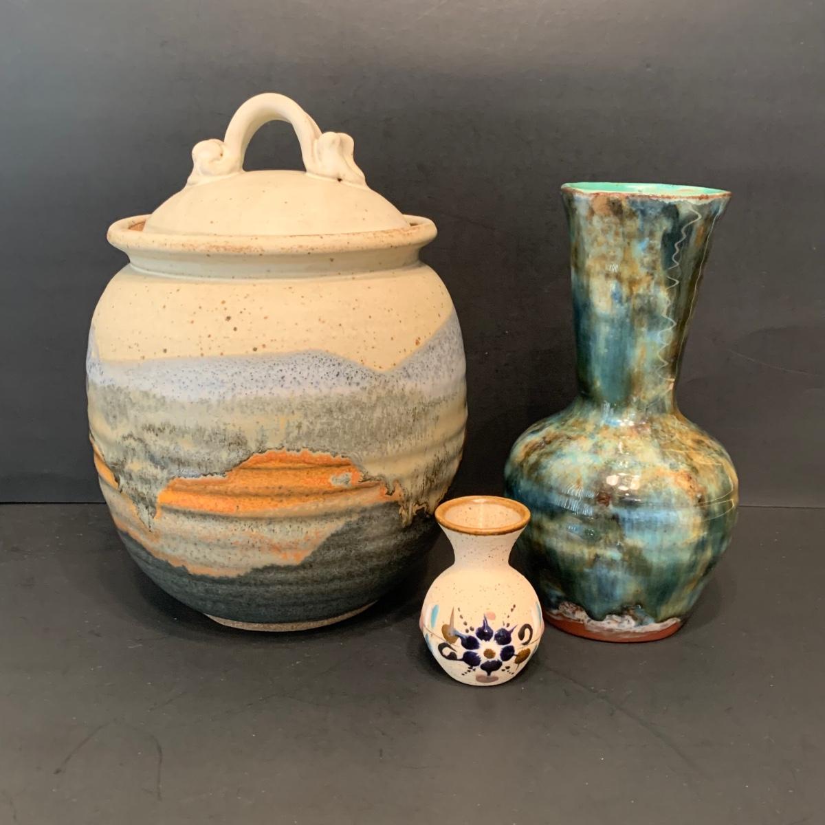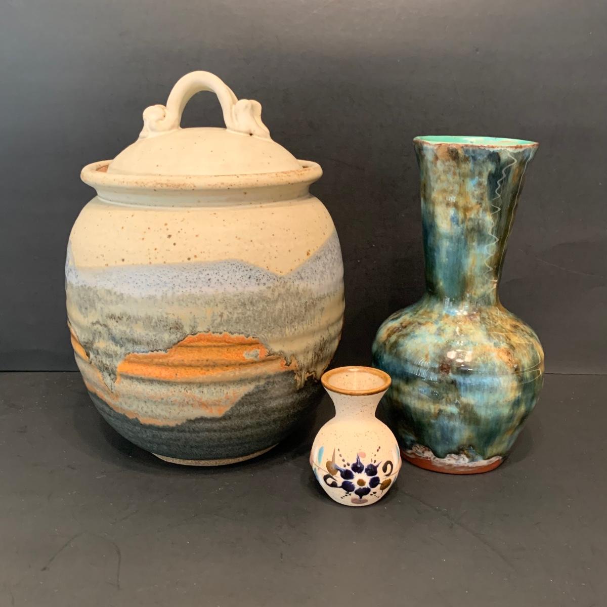 LOT 110R: Hazelton Jones Stoneware Jar, E.J. Bermuda Pottery & Vintage Tonala Mexico Rs Folk Art Pottery