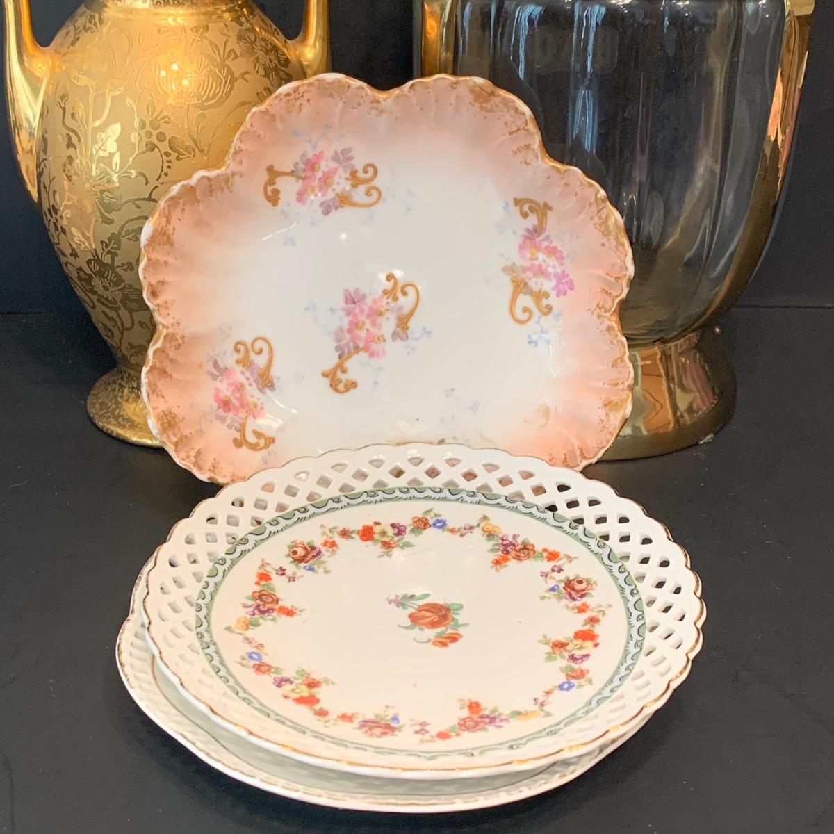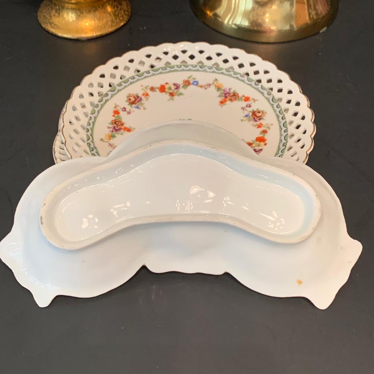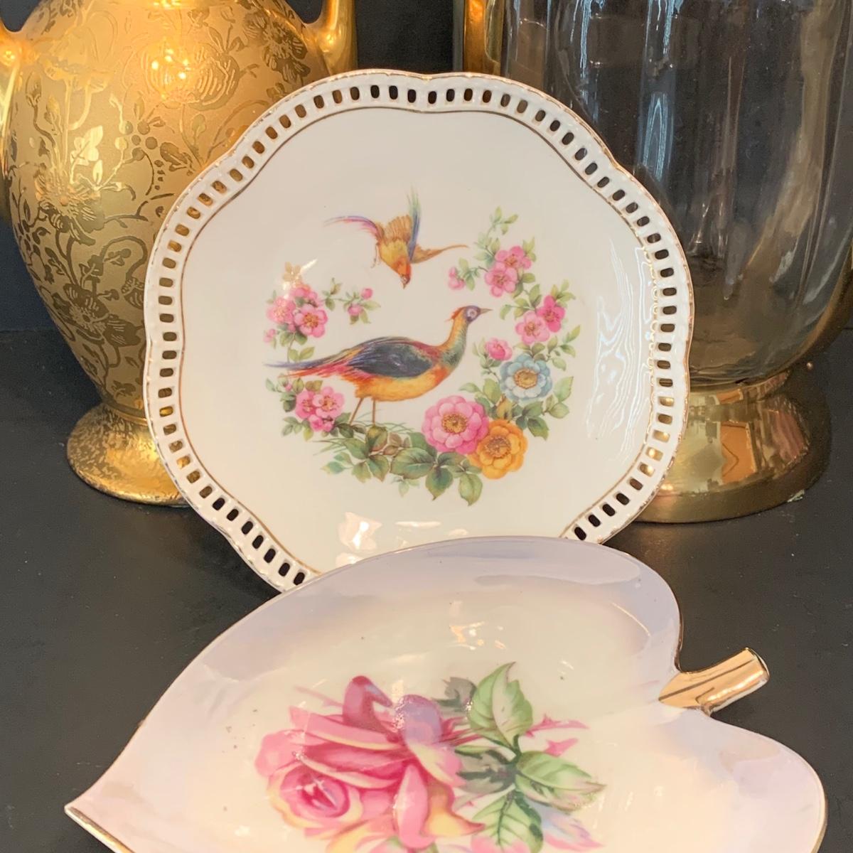 LOT 111R: Vintage Limoges, Schumann Hand Painted Leaf Shaped Dish, Musical Biscuit Jar, Stouffer China Bavaria Gold Vase