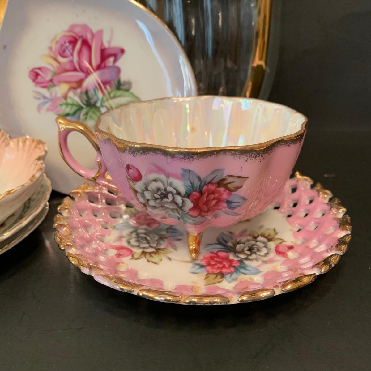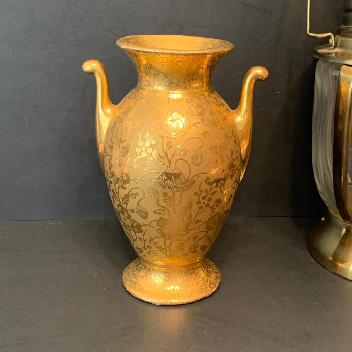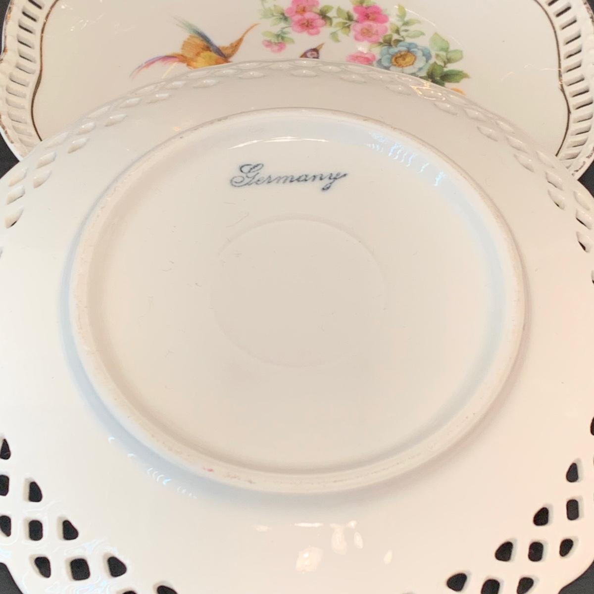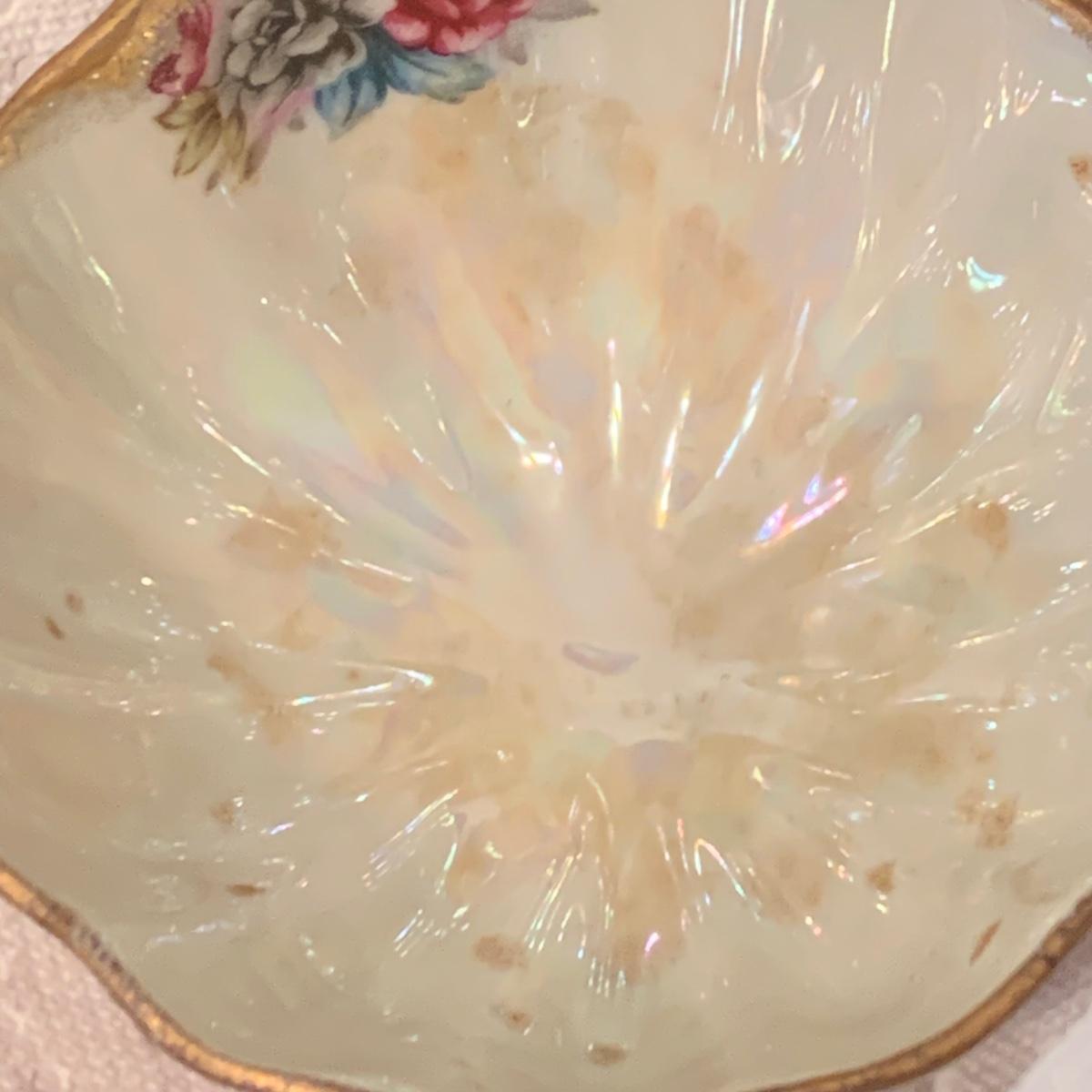 LOT 111R: Vintage Limoges, Schumann Hand Painted Leaf Shaped Dish, Musical Biscuit Jar, Stouffer China Bavaria Gold Vase