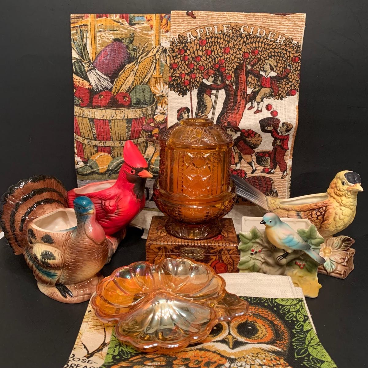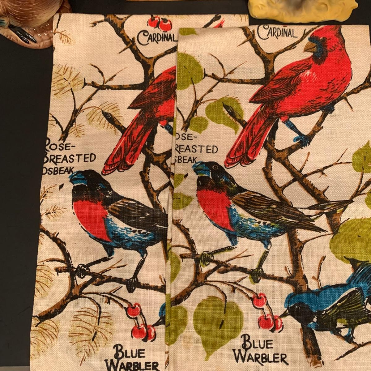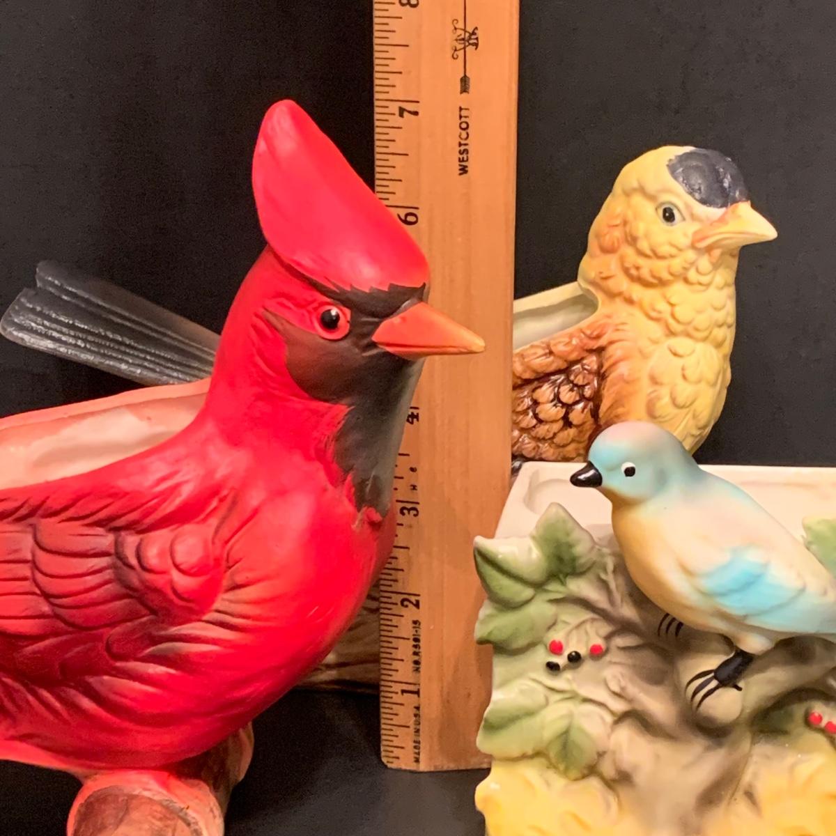 LOT 114R: Vintage Feathered Friends Planters, Vintage Linen Tea Towels & More
