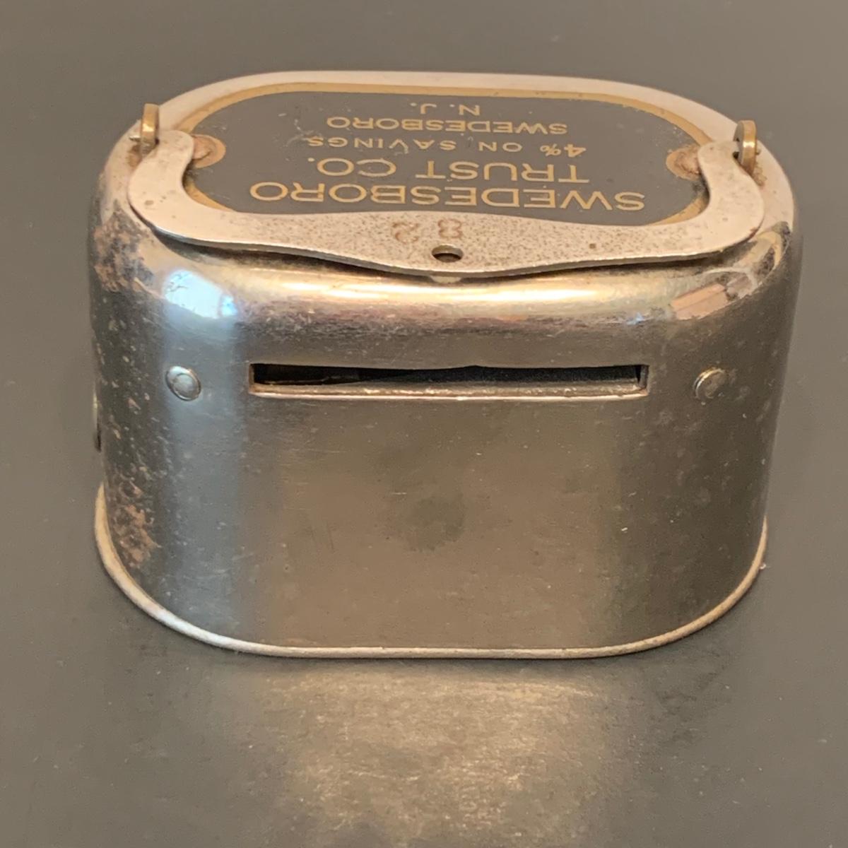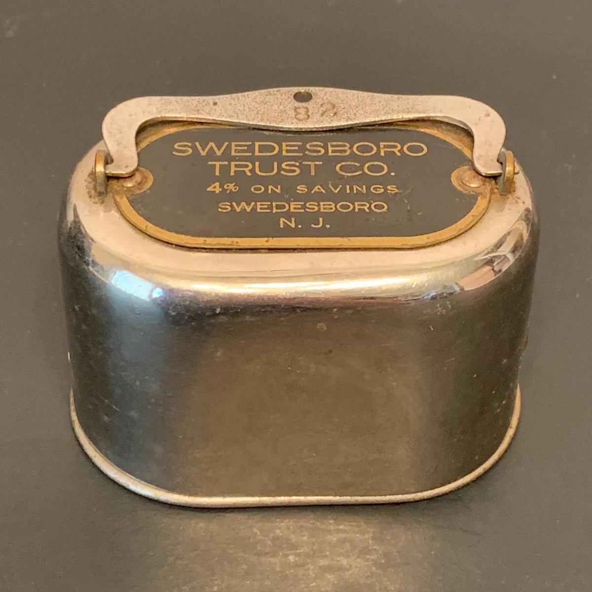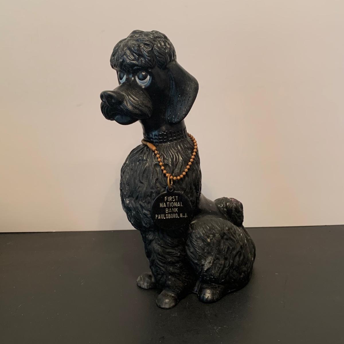 LOT 118R: Vintage Ceramic Piggy Bank, Vintage Plastic Poodle Bank & Swedesboro Trust Co. Bank