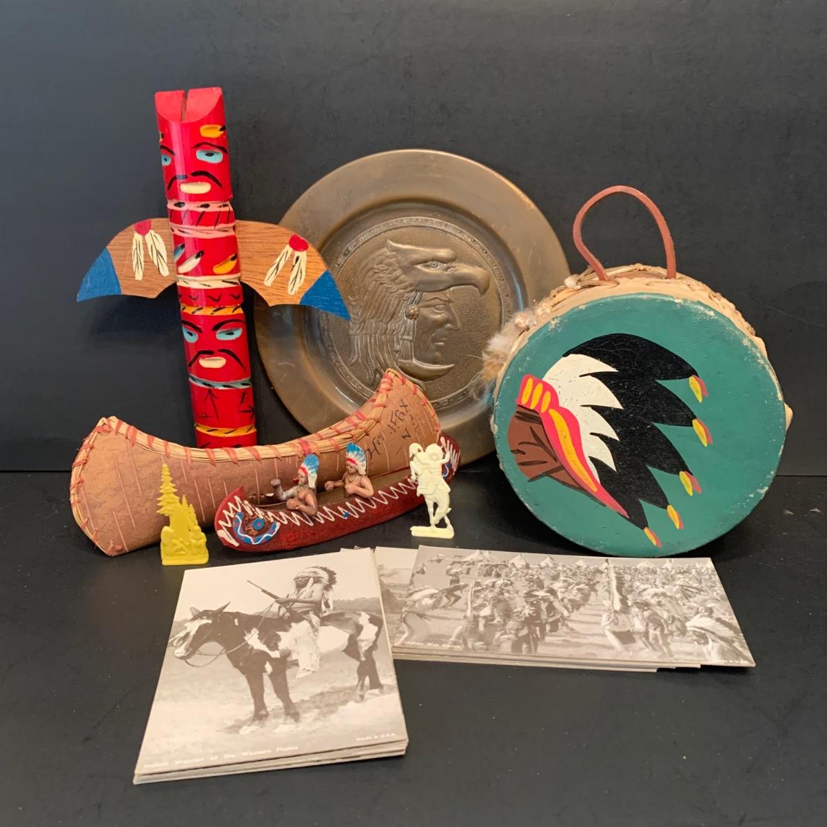 LOT 121R: Vintage Warrior Embossed Plate, Vintage Native American Postcards & More