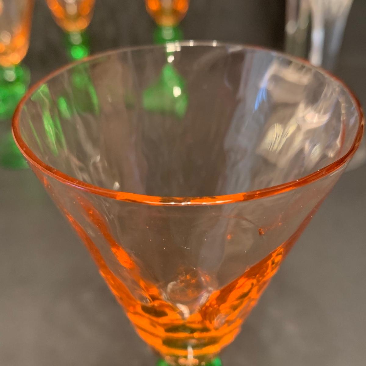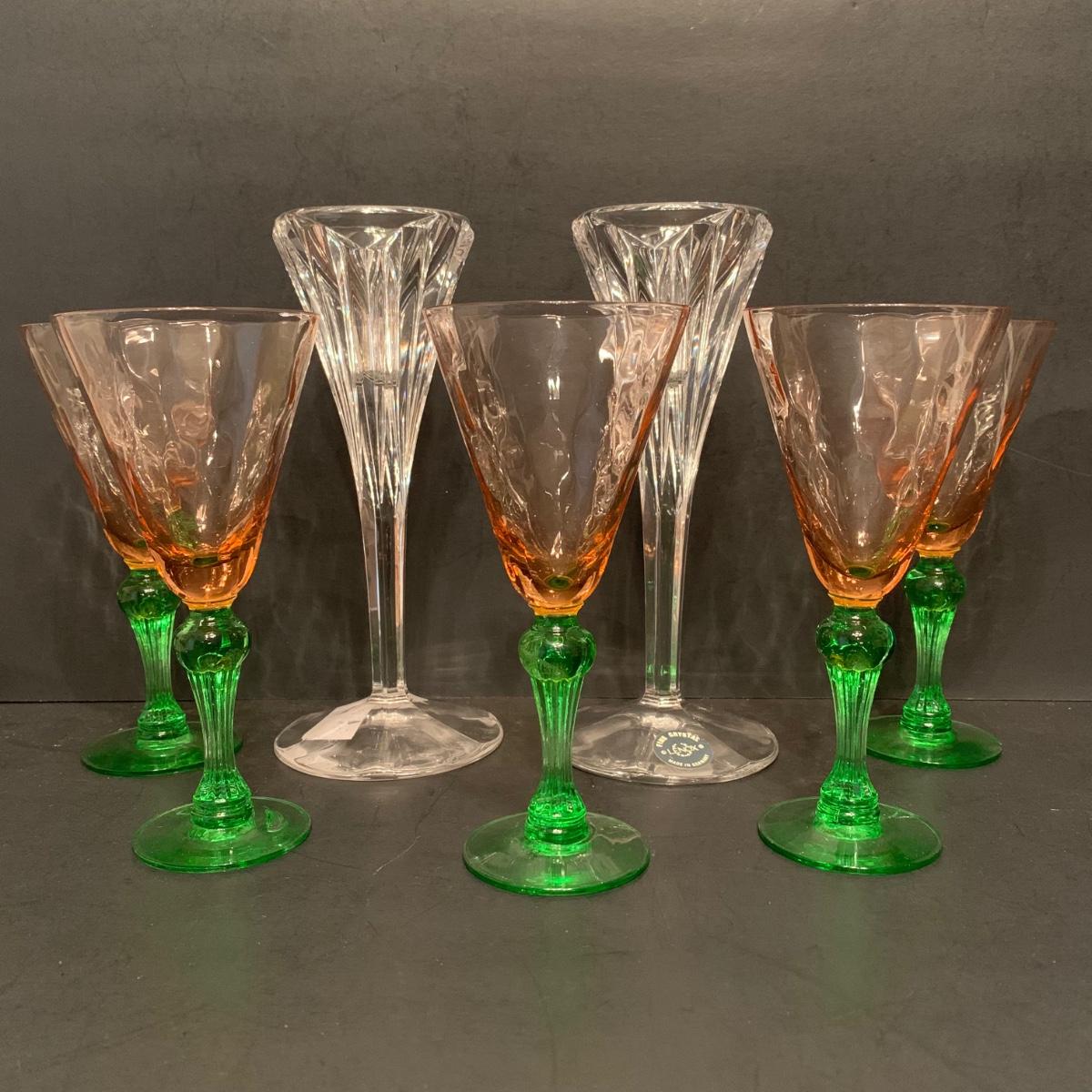 LOT 127R:  Vintage Tiffin Depression Glass Watermelon Pink w/Uranium Glass Stems and Lenox Candle Holders,Germany