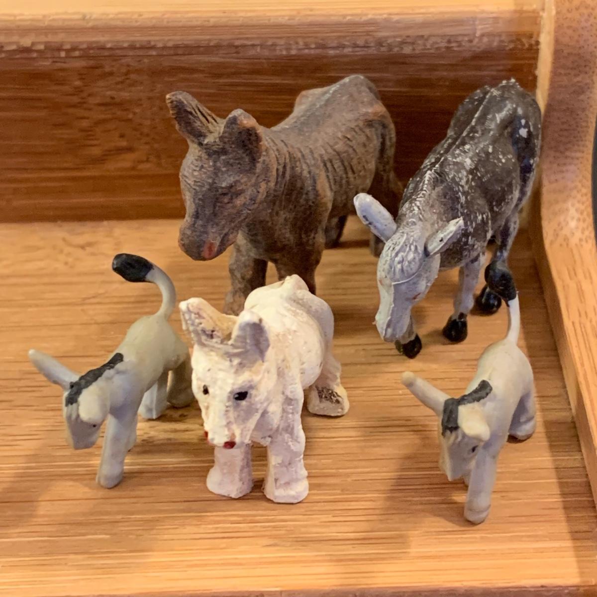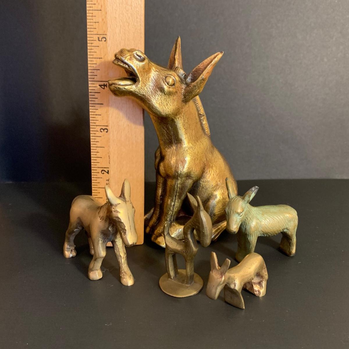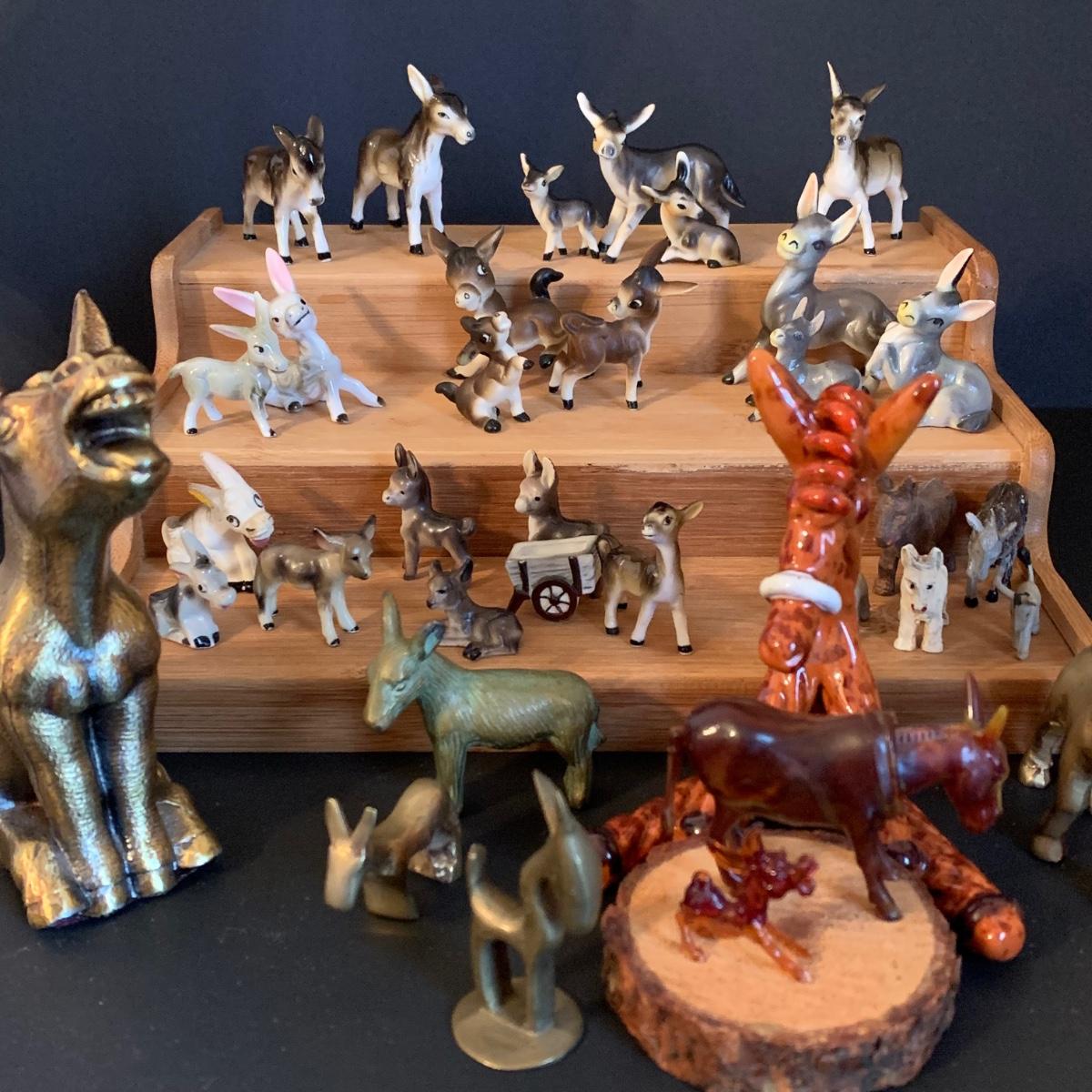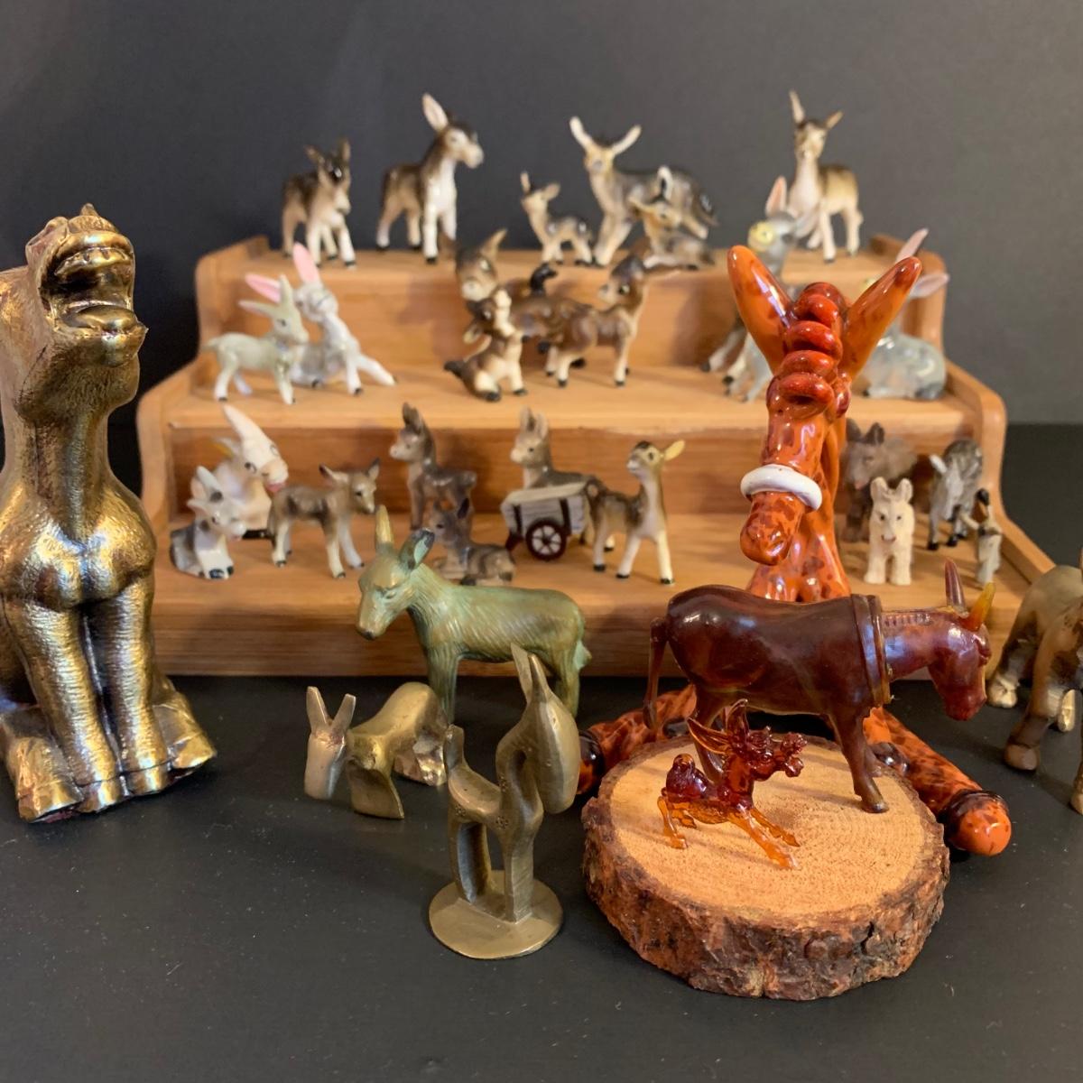 LOT 129R: Miniature Donkey Collection & More including Brass Donkeys, a Bobble Head Donkey, Handcrafted Clay Donkey