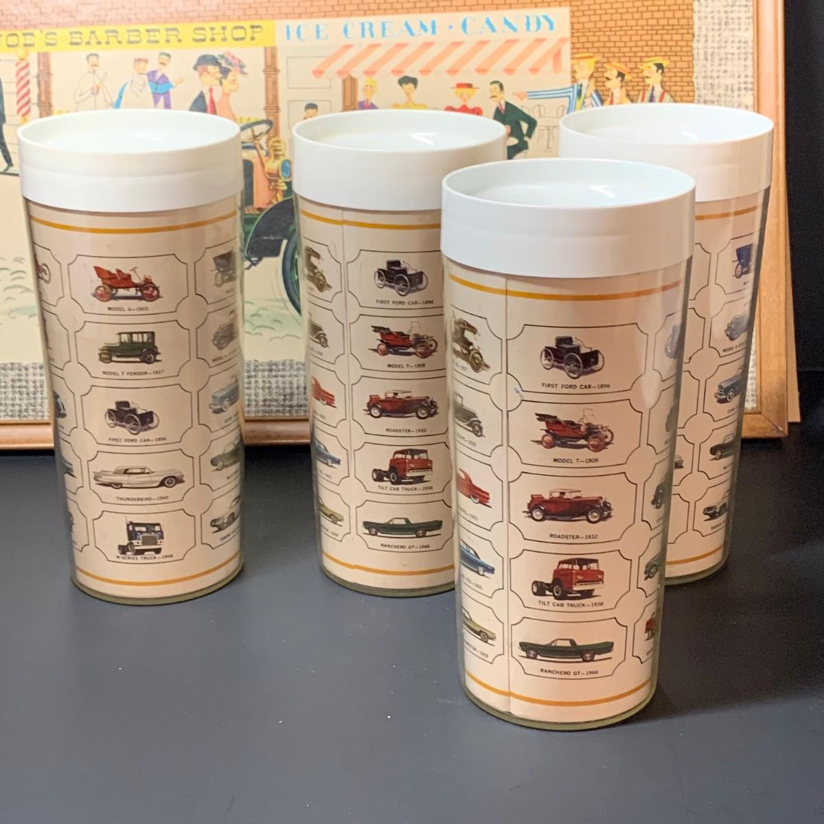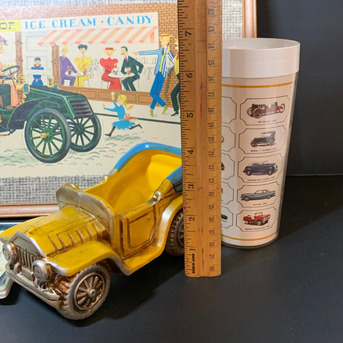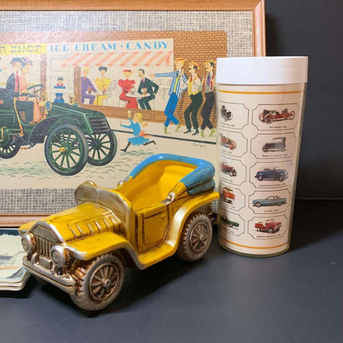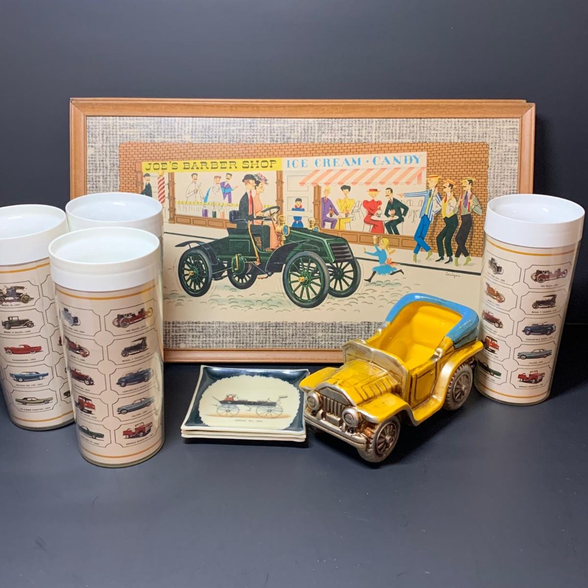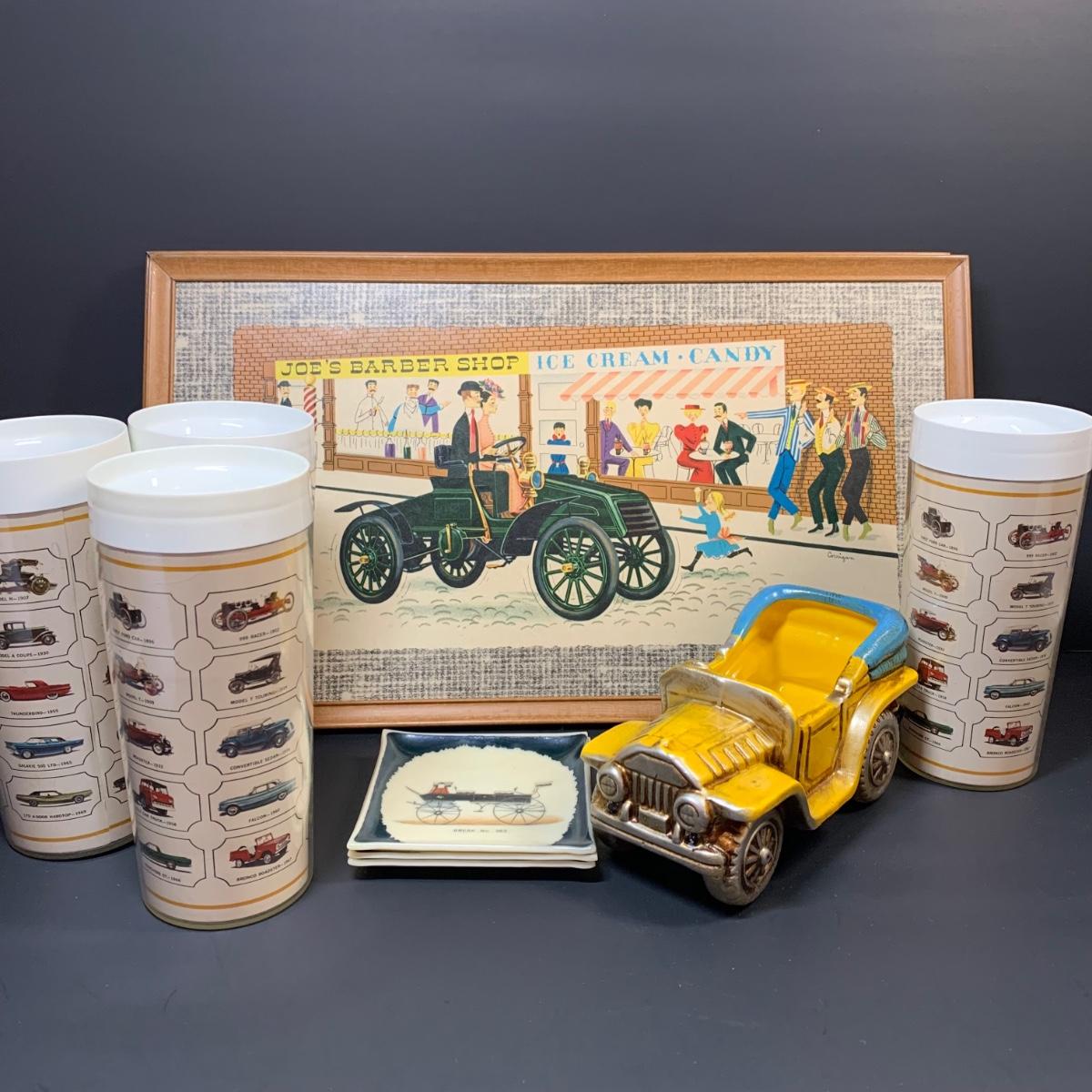 LOT 134R: Vintage Westbend Thermo-Serv Insulated Tumblers, Corrigan Kentley Auto Prints, Vintage Automobile Trinket Dishes & More