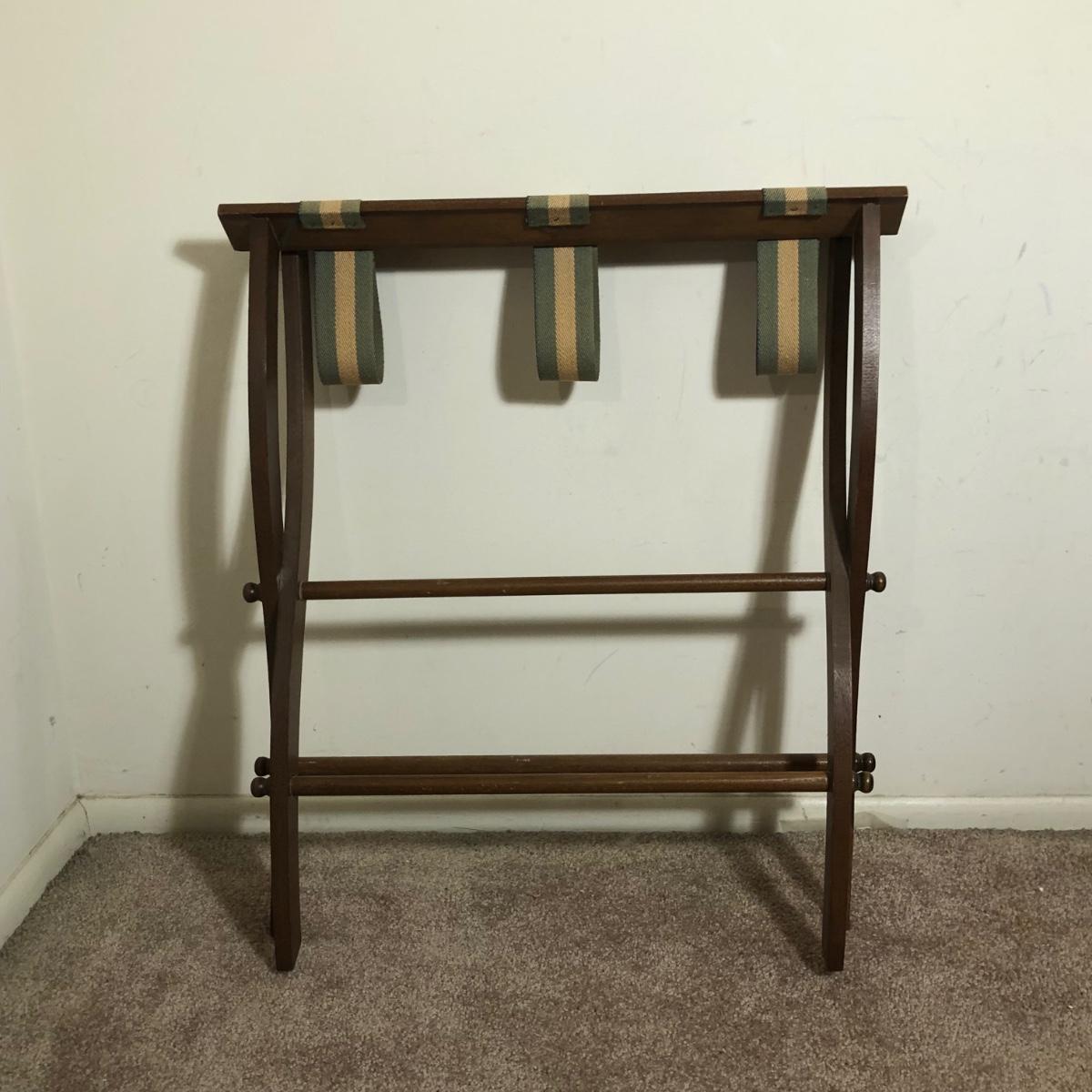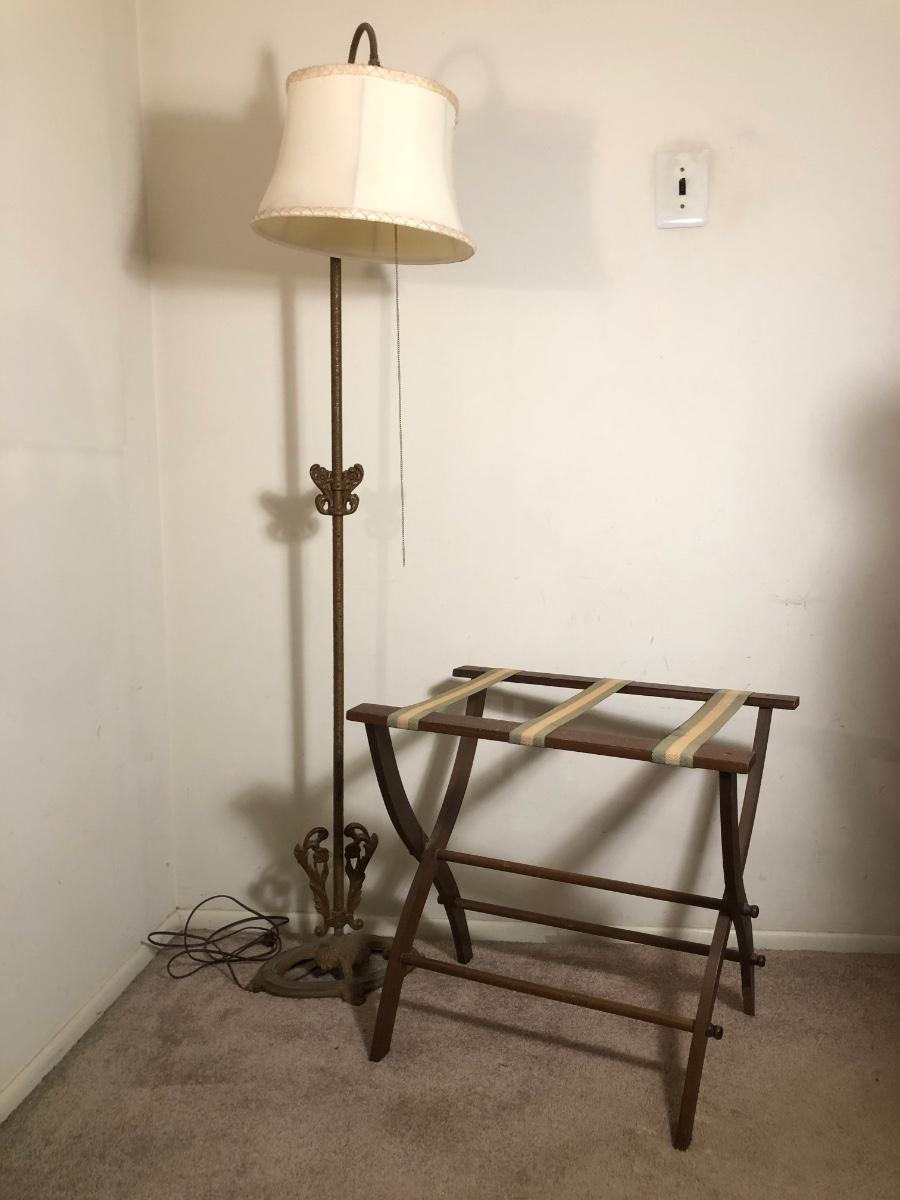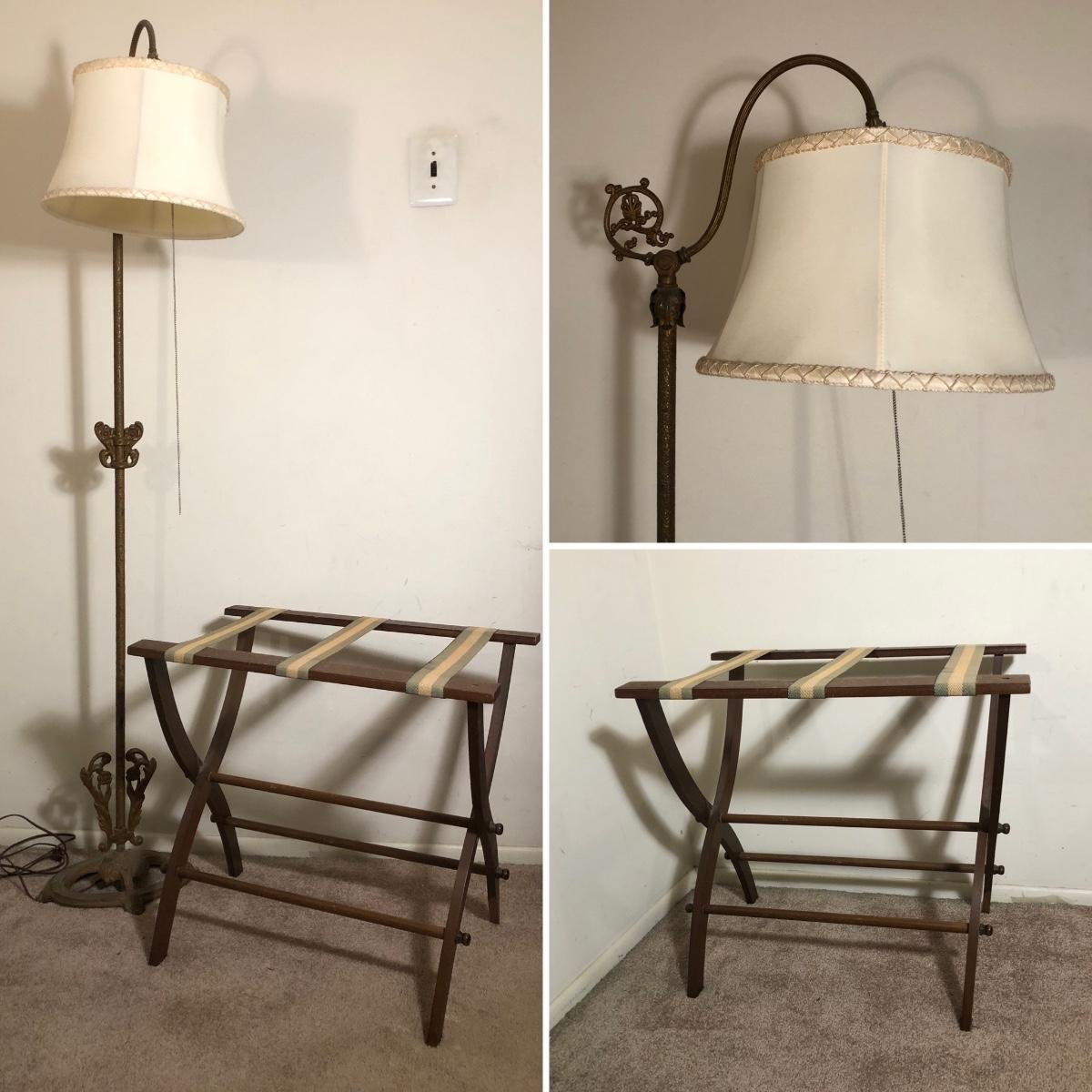 LOT 136M: Vintage/MCM Metal Floor Lamp & Vintage Wooden Luggage Rack