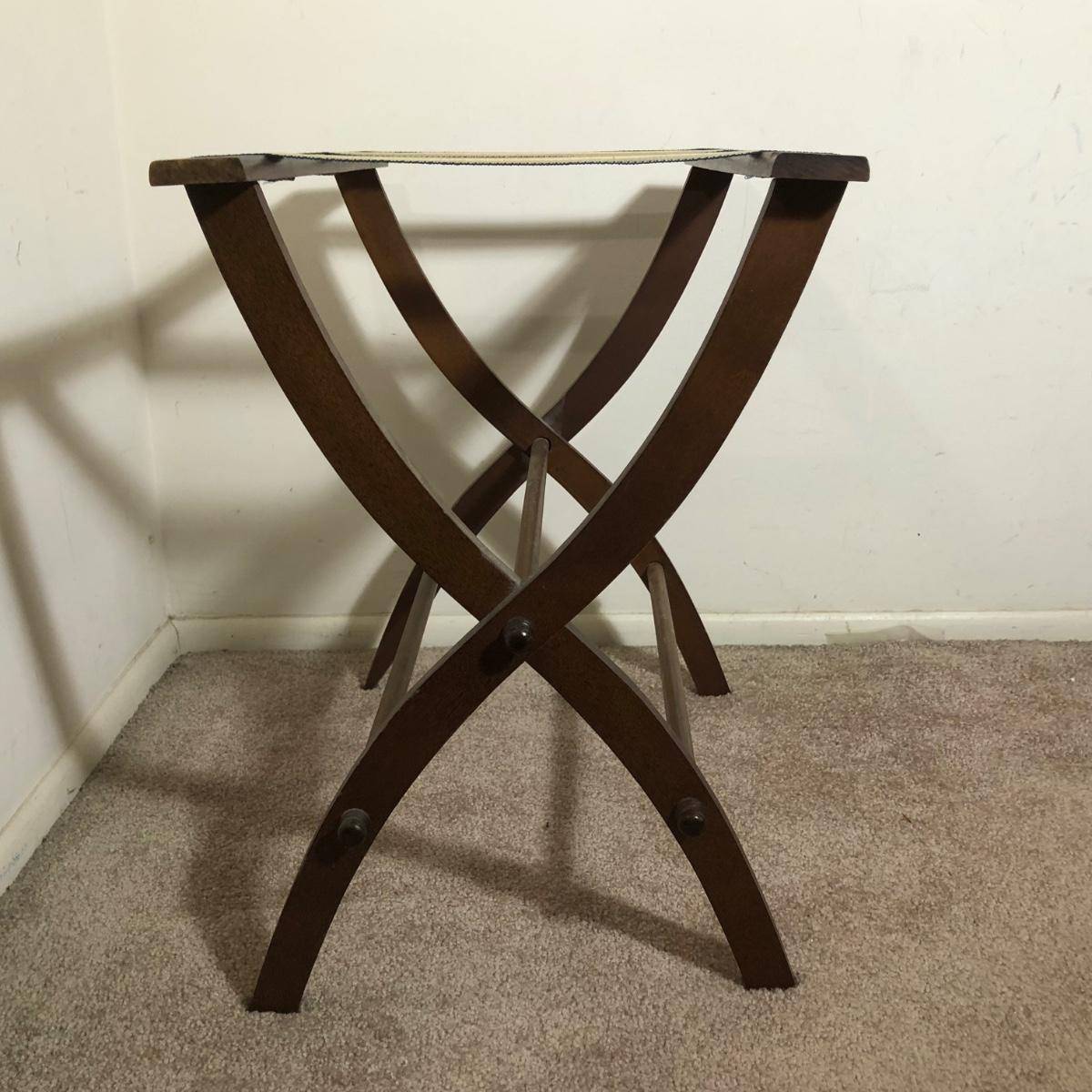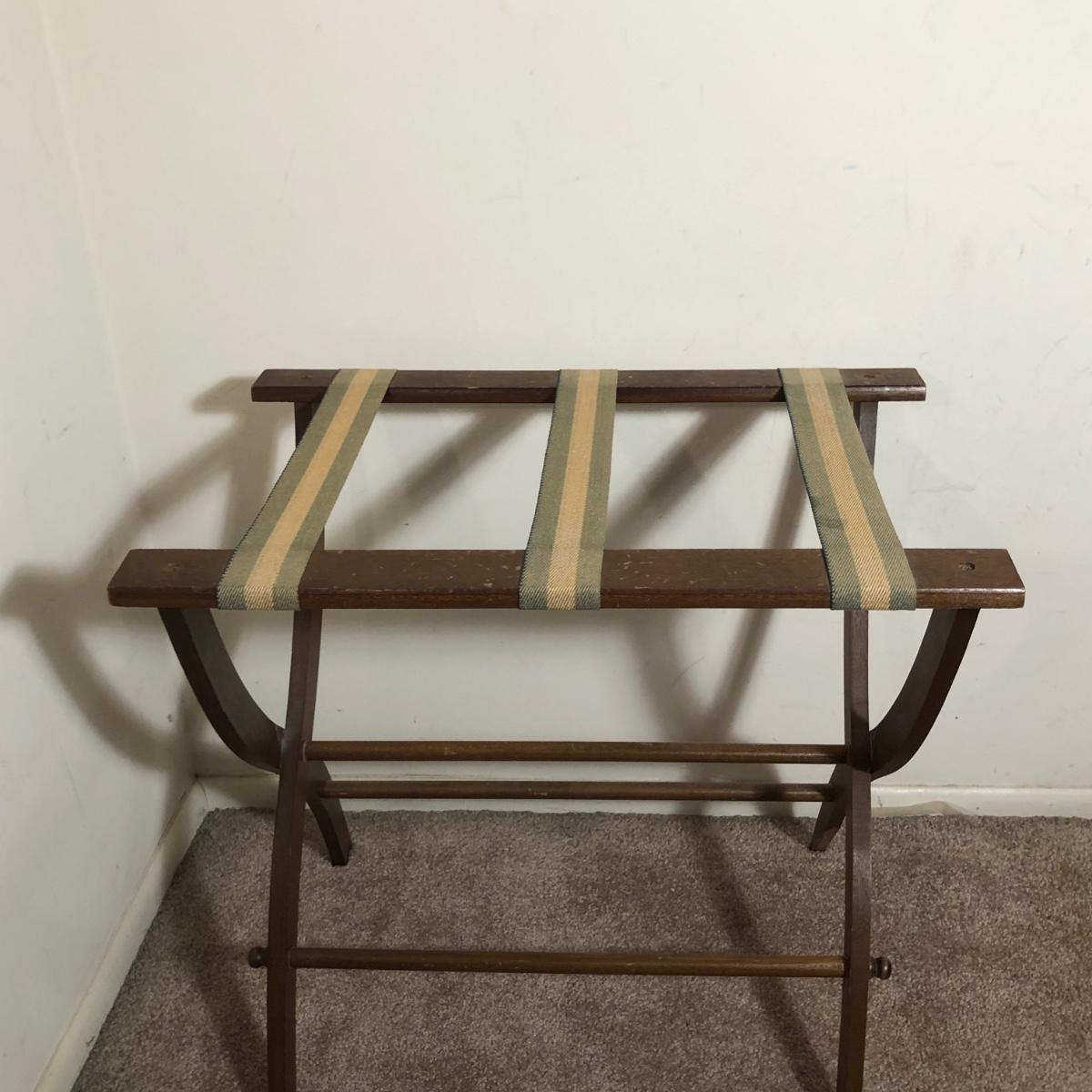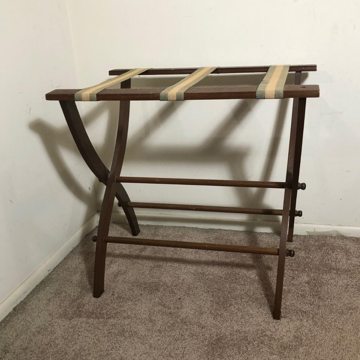LOT 136M: Vintage/MCM Metal Floor Lamp & Vintage Wooden Luggage Rack