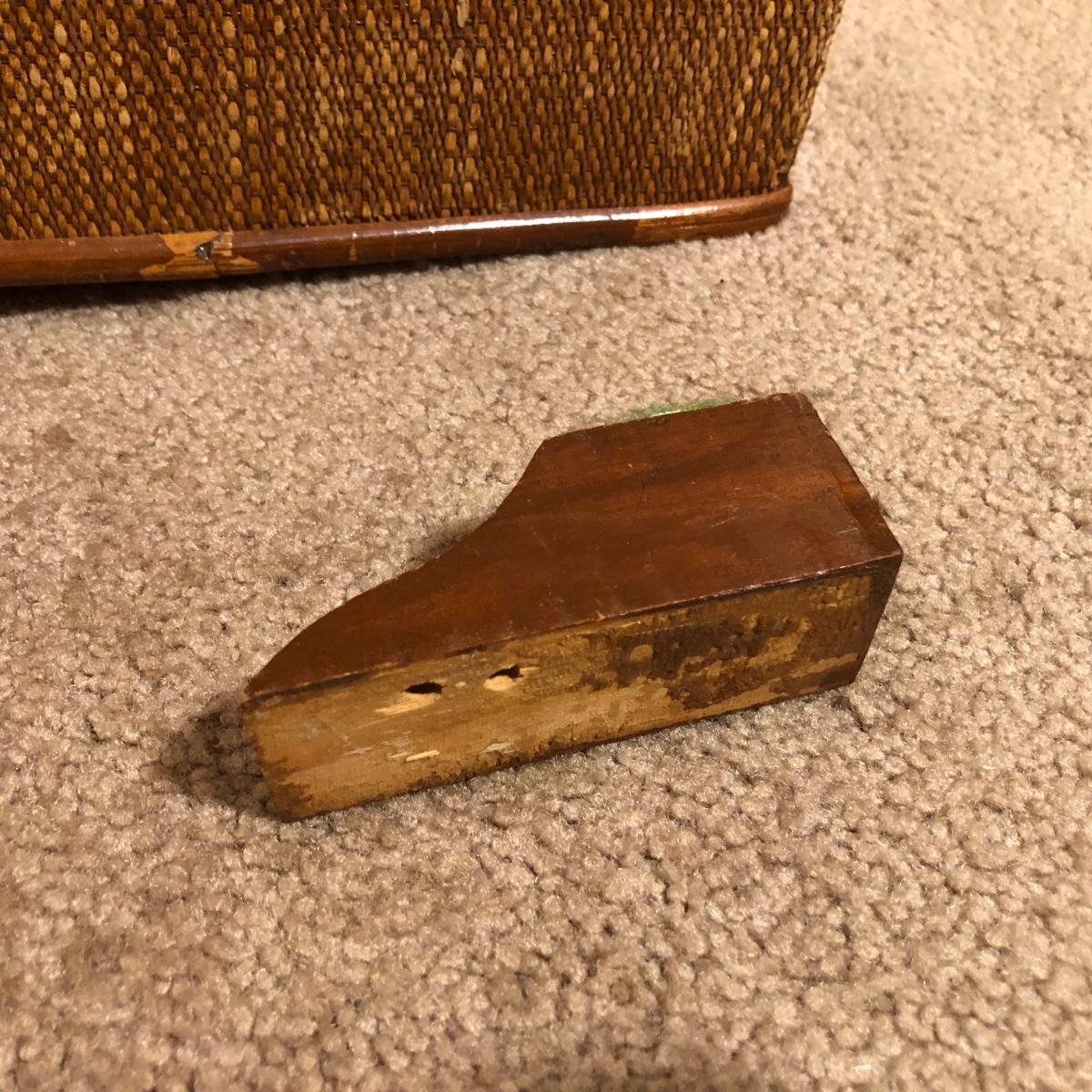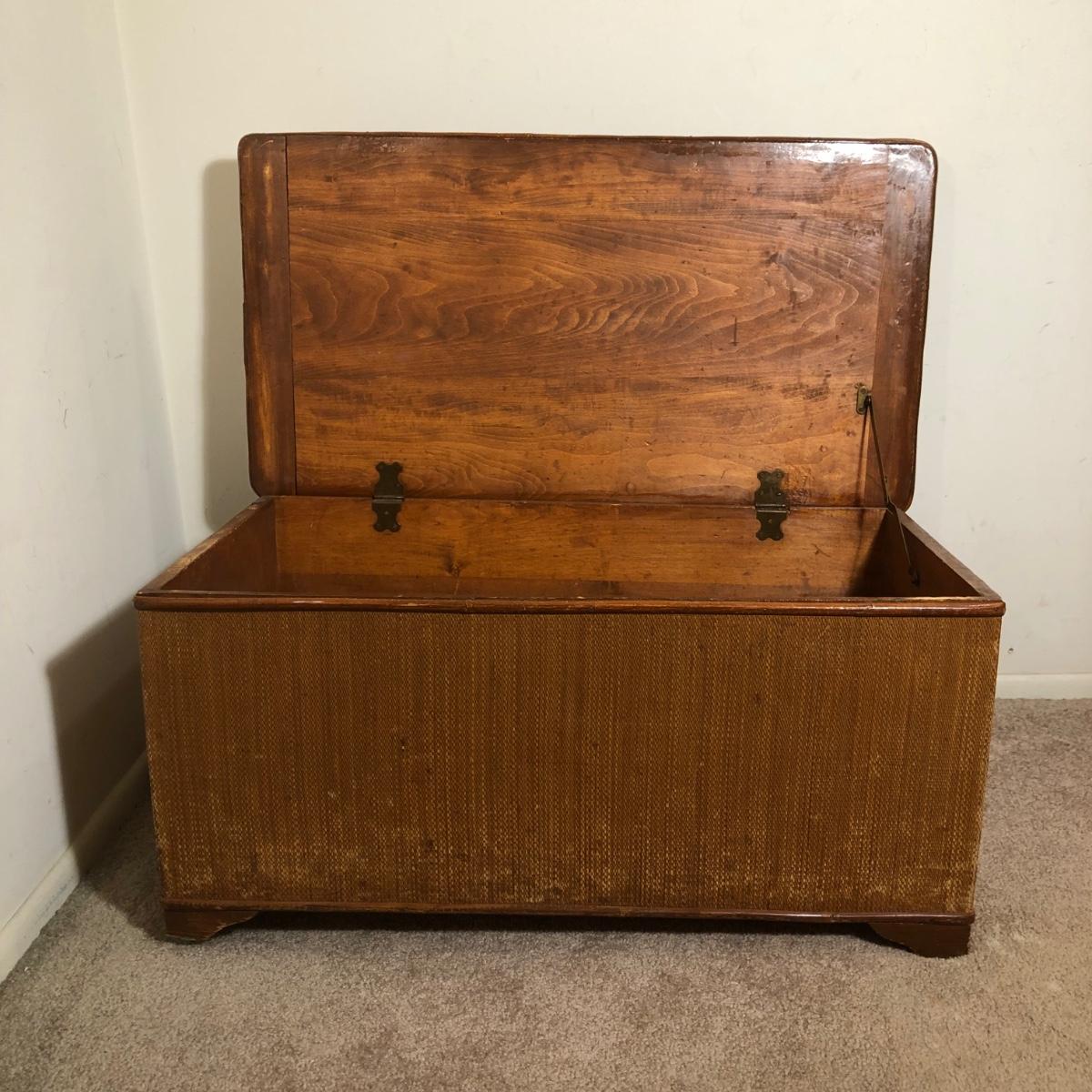 Chest has condition issues - one leg is broken off and IS included for repair. Located on the 2nd floor of the home. Measures 30 x 17 x 14 inches.