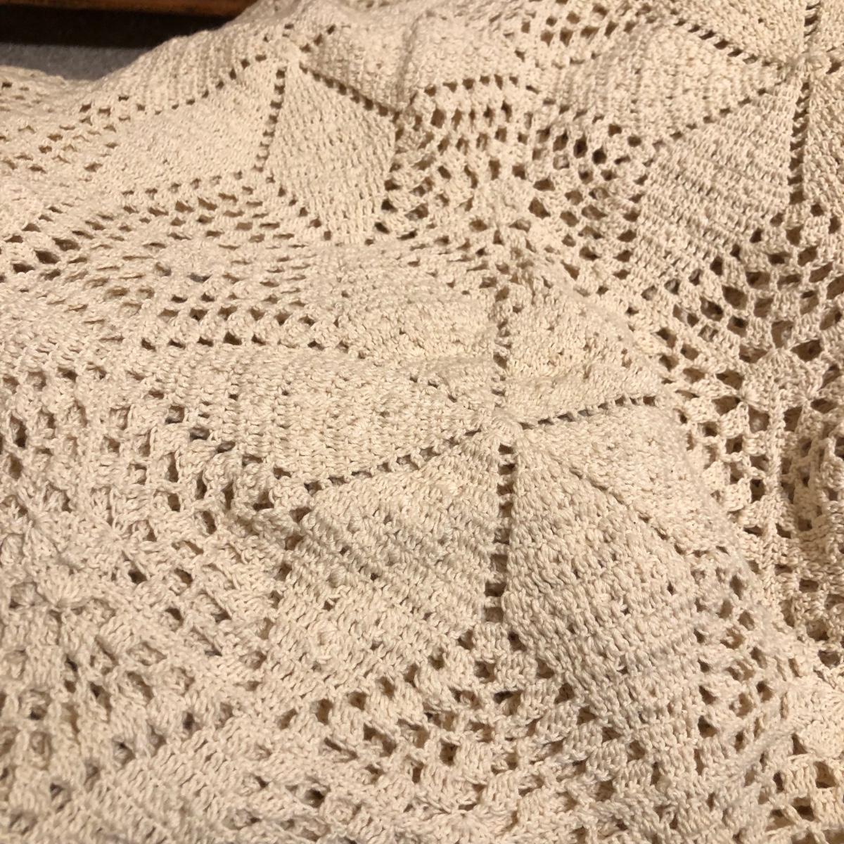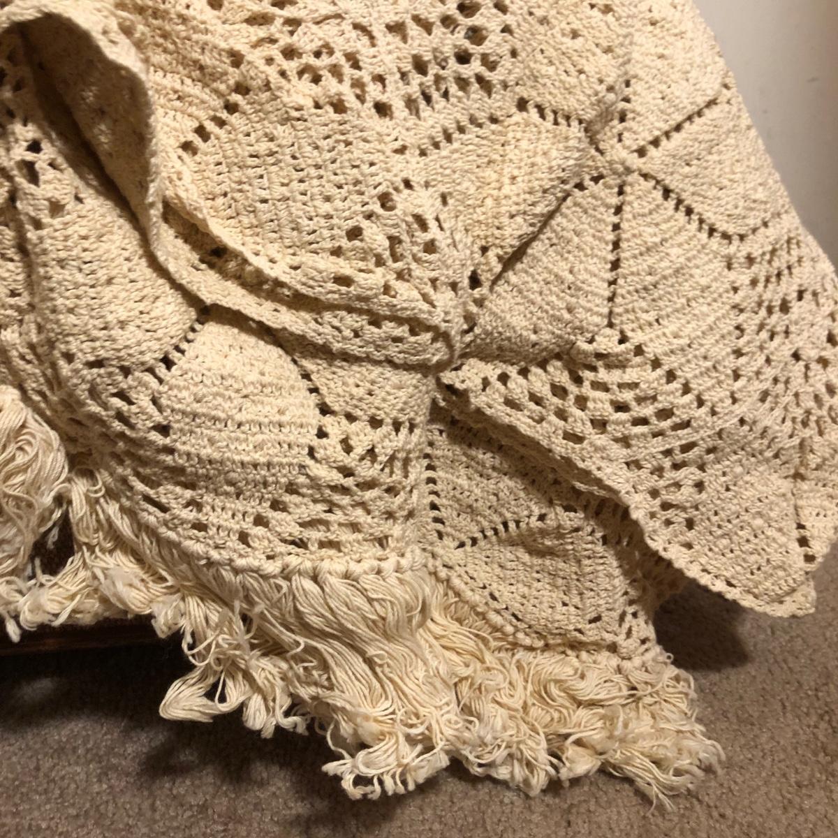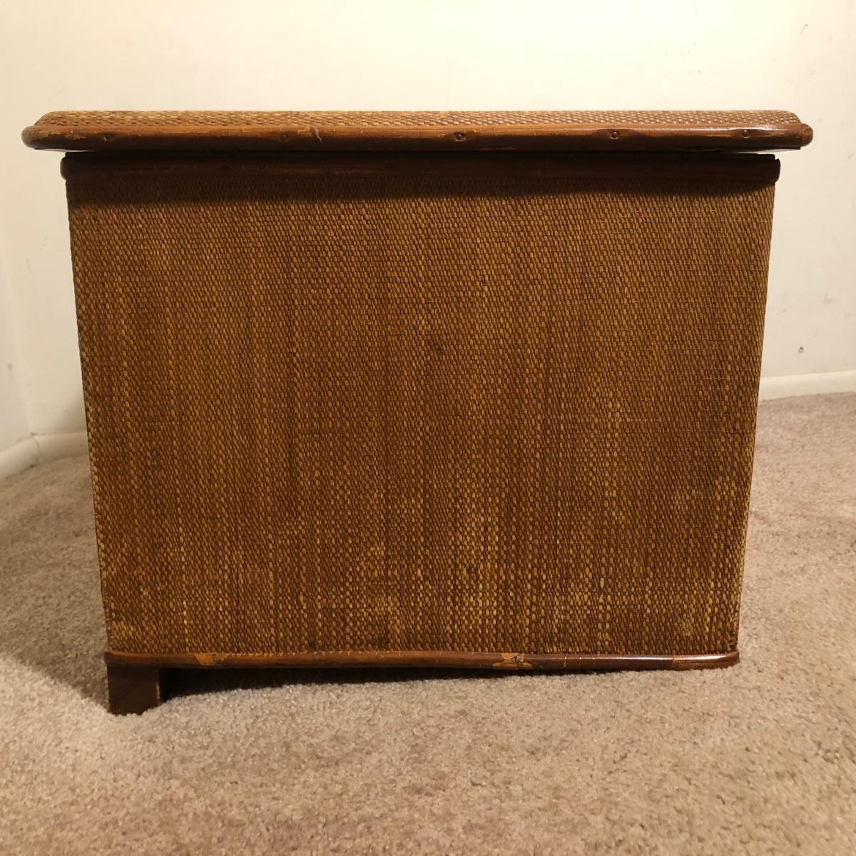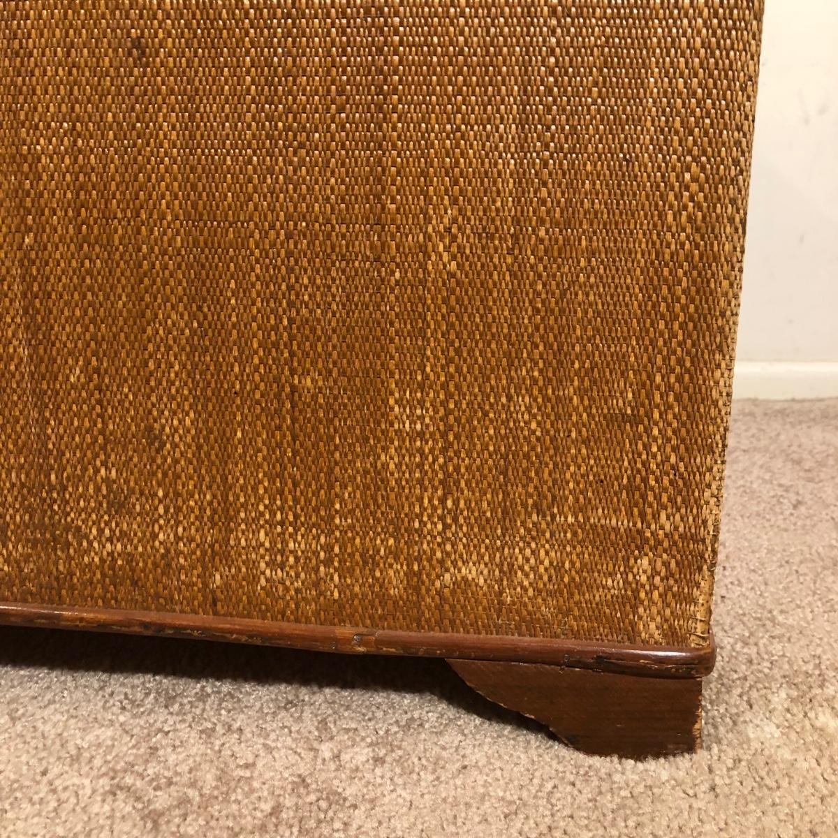 LOT 138M: Vintage Cane & Wood Chest w/ Lace Blanket