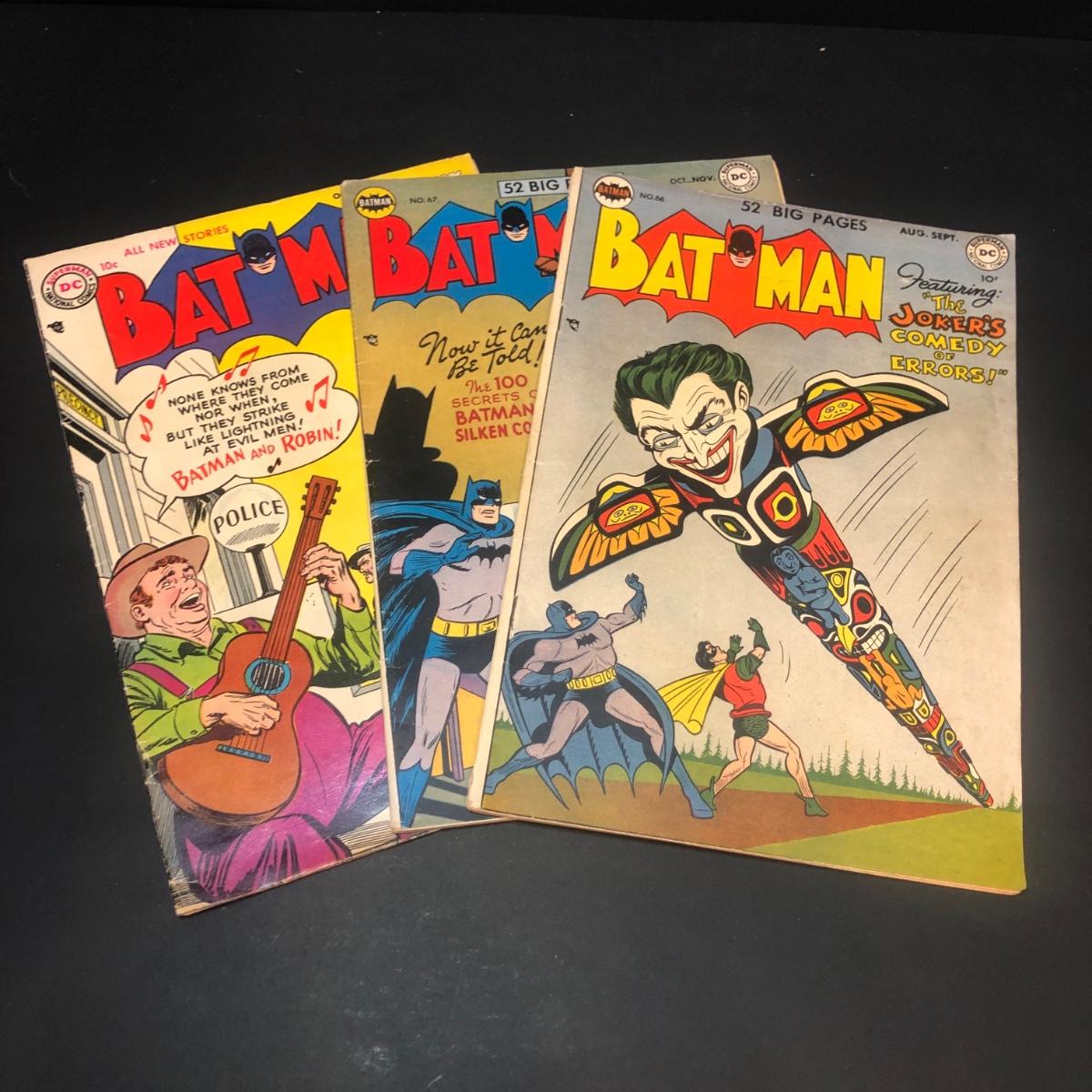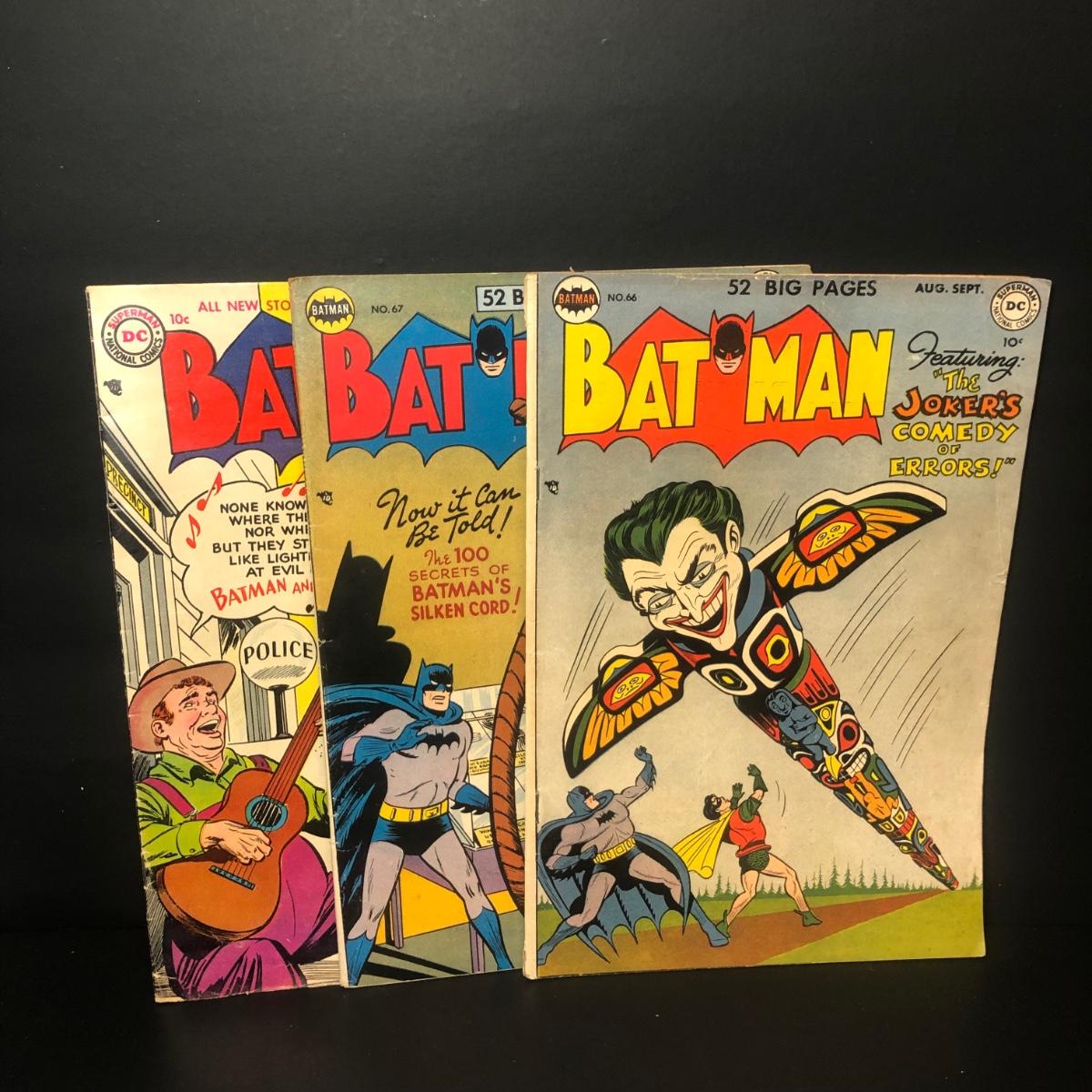 LOT 142M: Vintage DC Batman Comic Books - 1951 #66 & #67, 1955 #95