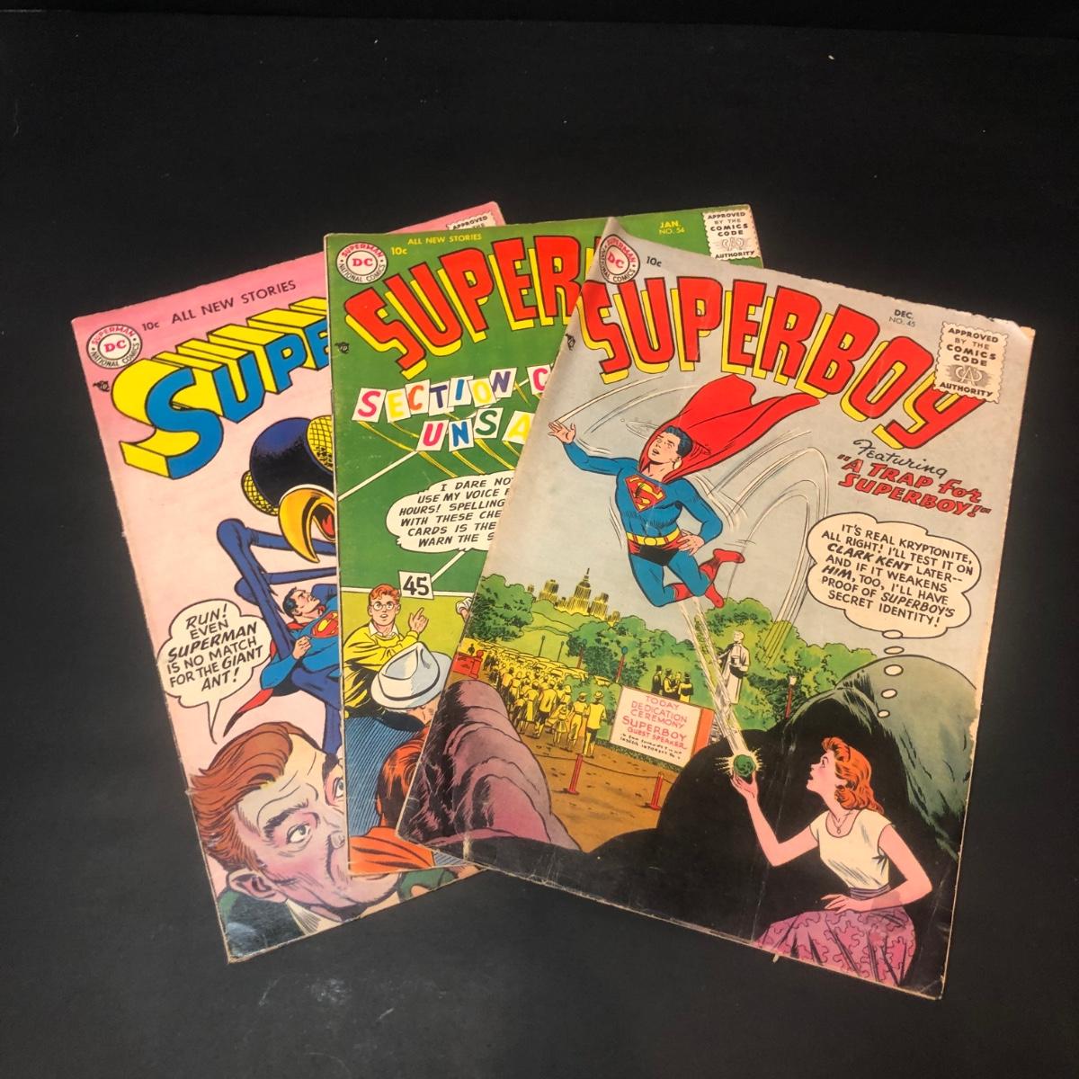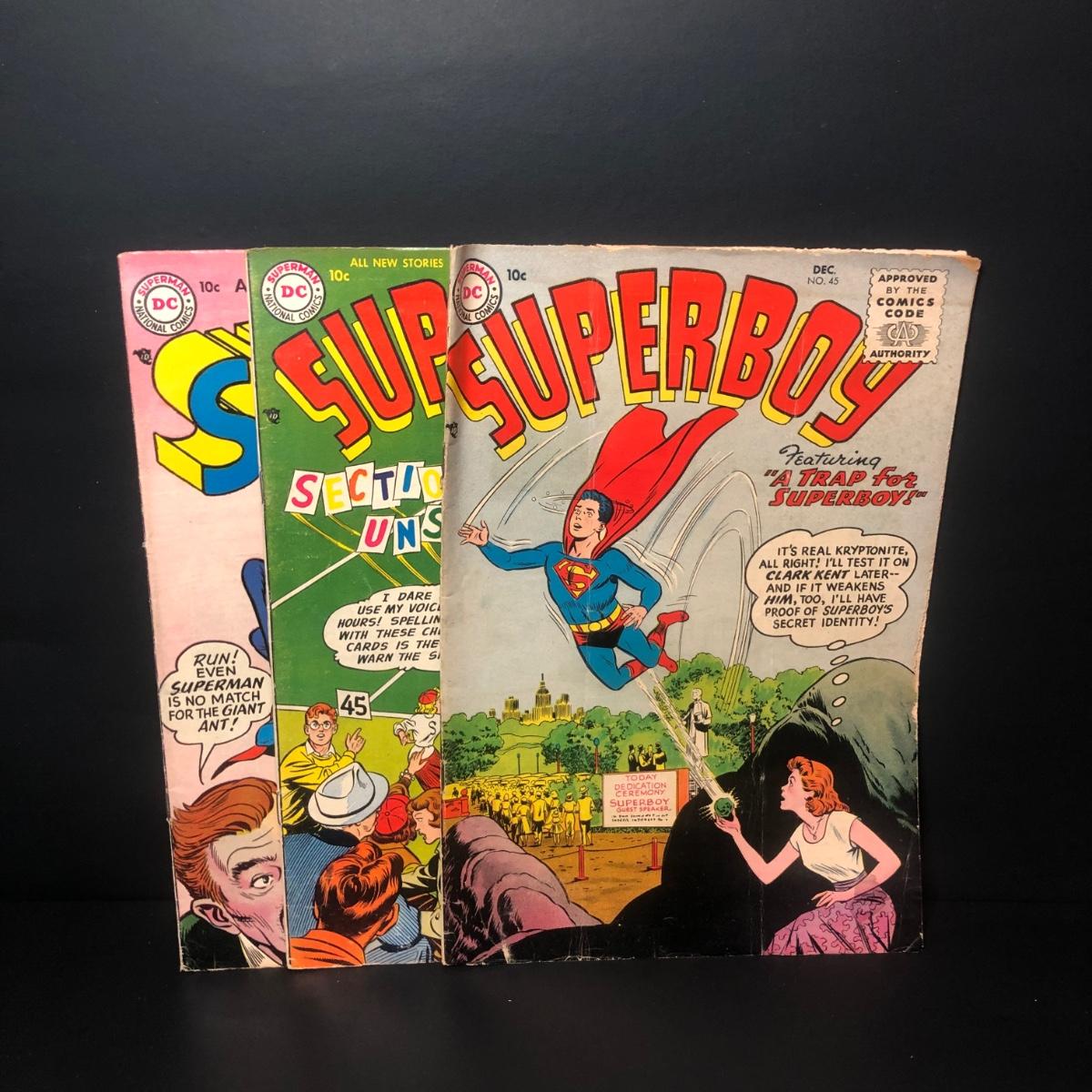 LOT 143M: Vintage DC Comic Books - Superboy 1955 #45, Superboy 1957 #54 & 1957 Superman #110: The Defeat of Superman