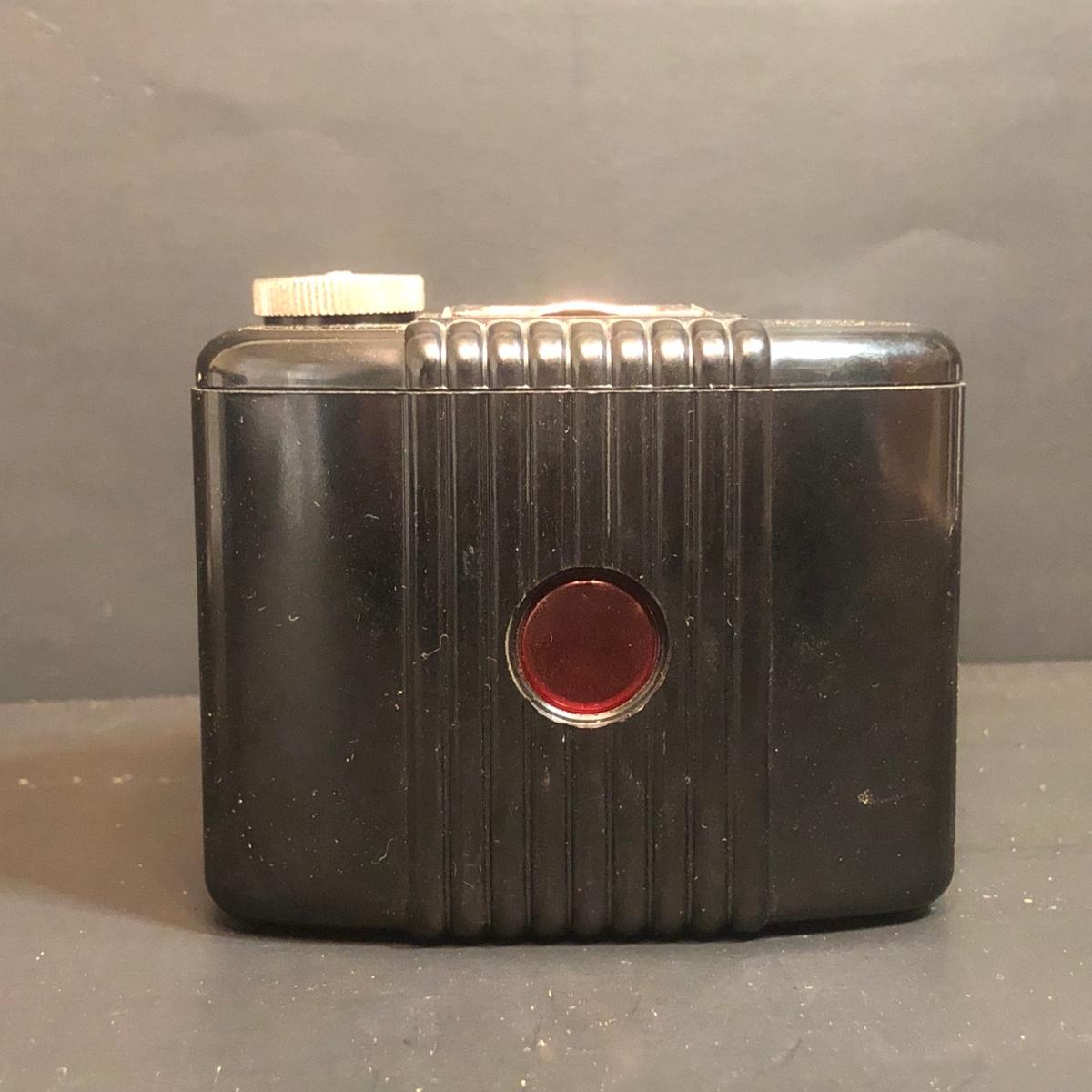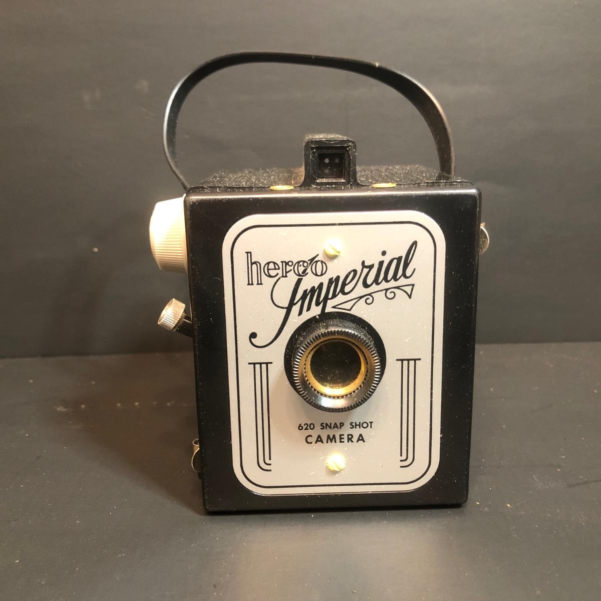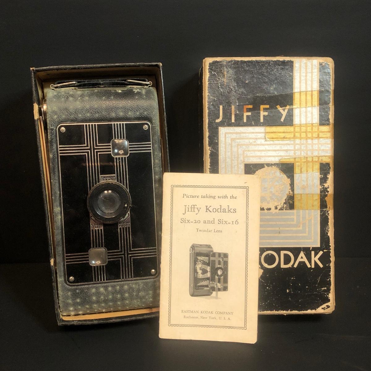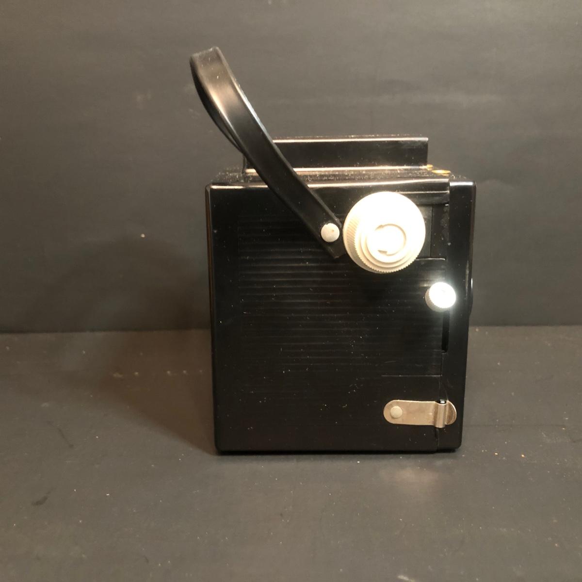 LOT 152M: Vintage Cameras w/ Leather Camera Bag & Argus Flash - Jiffy Kodak Six-16 (w/box & Manual), Herco Imperial 620 SnapShot (w/ Box), Kodak Baby Brownie, Falcon Mini Cam JR, Kodak Six-16 Brownie