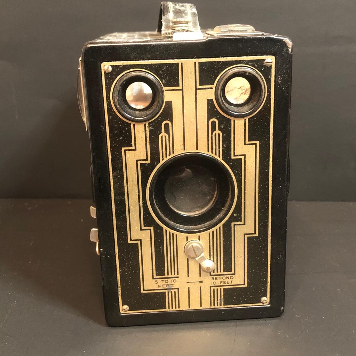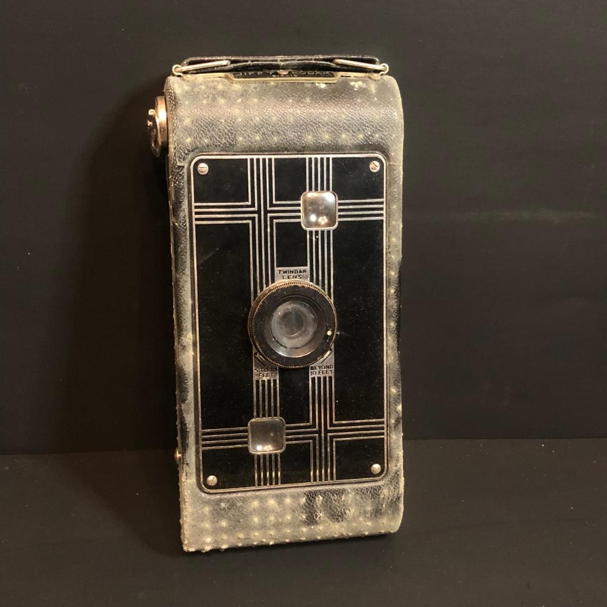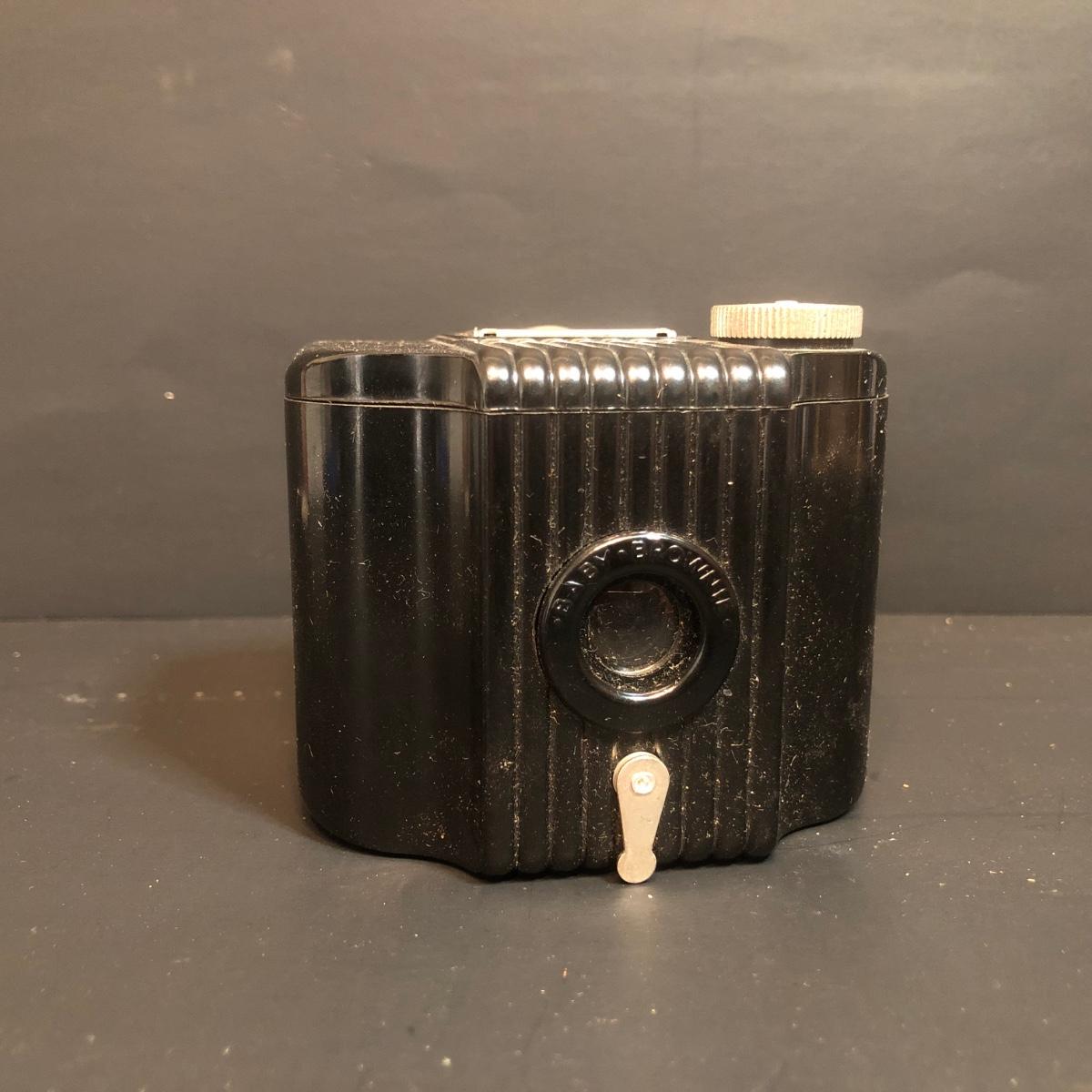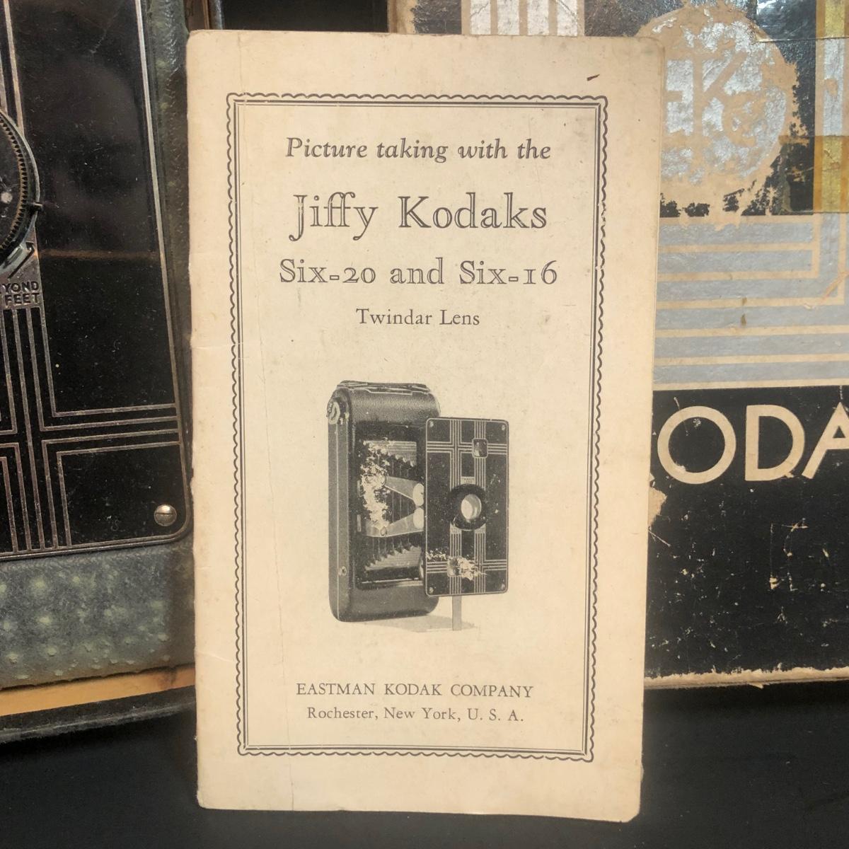LOT 152M: Vintage Cameras w/ Leather Camera Bag & Argus Flash - Jiffy Kodak Six-16 (w/box & Manual), Herco Imperial 620 SnapShot (w/ Box), Kodak Baby Brownie, Falcon Mini Cam JR, Kodak Six-16 Brownie