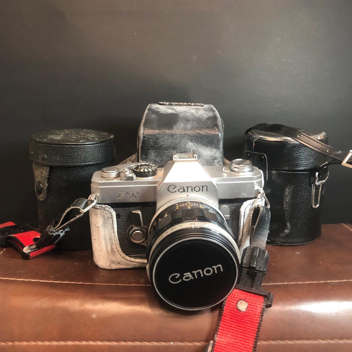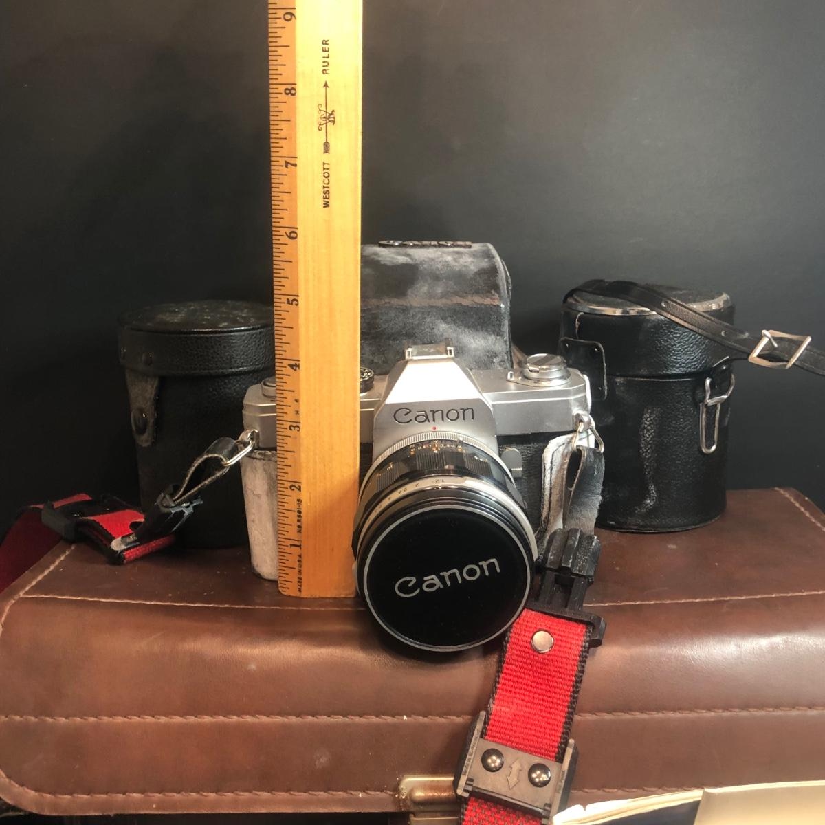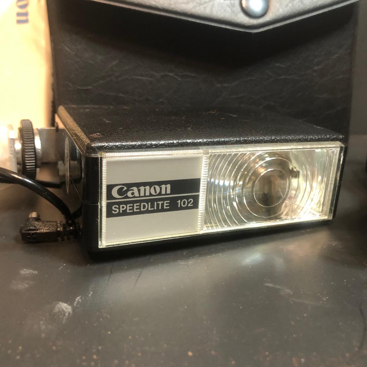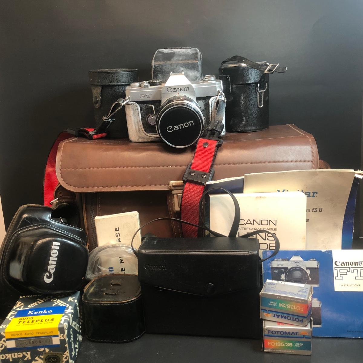 LOT 153M: Canon FT 35mm Camera w/ Canon Speedlite 102, Kenko Fisheye 180 Lens, Vivitar Wide Angle, 2 Packs of 35mm Film & More Camera Ccessories