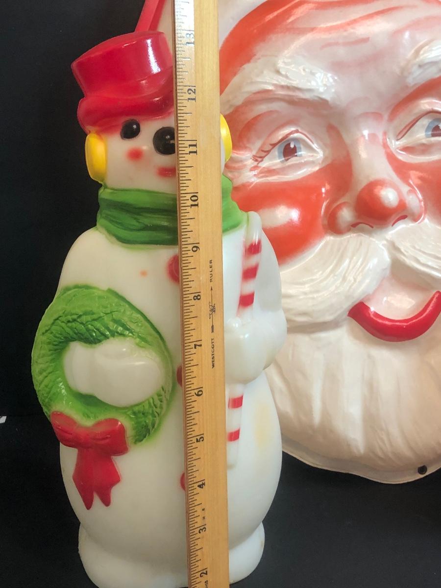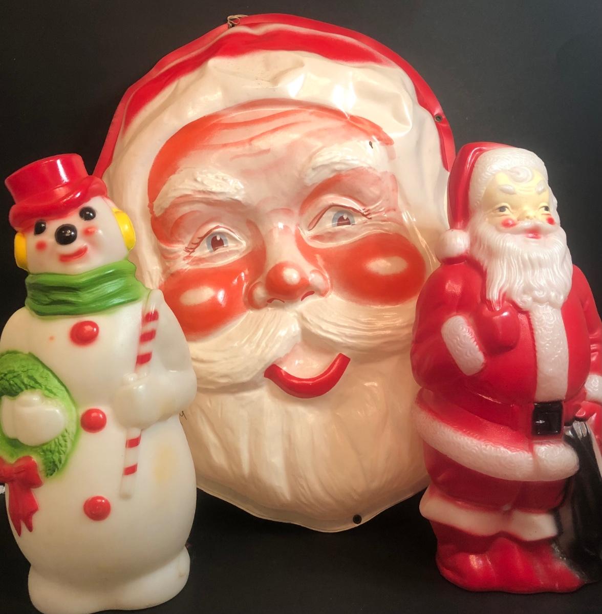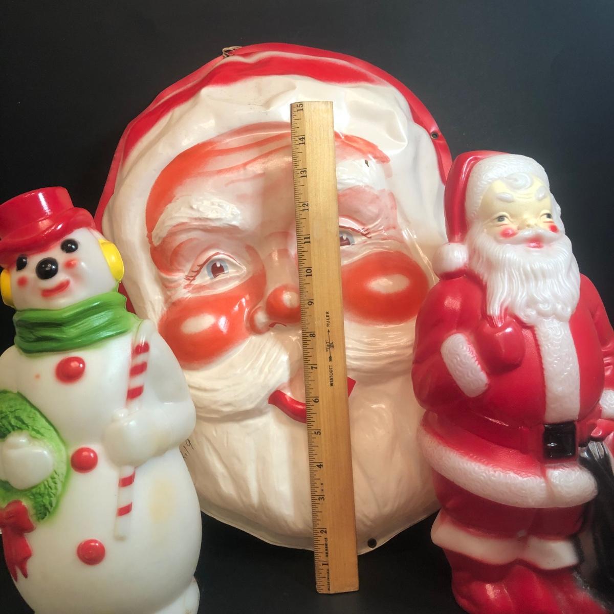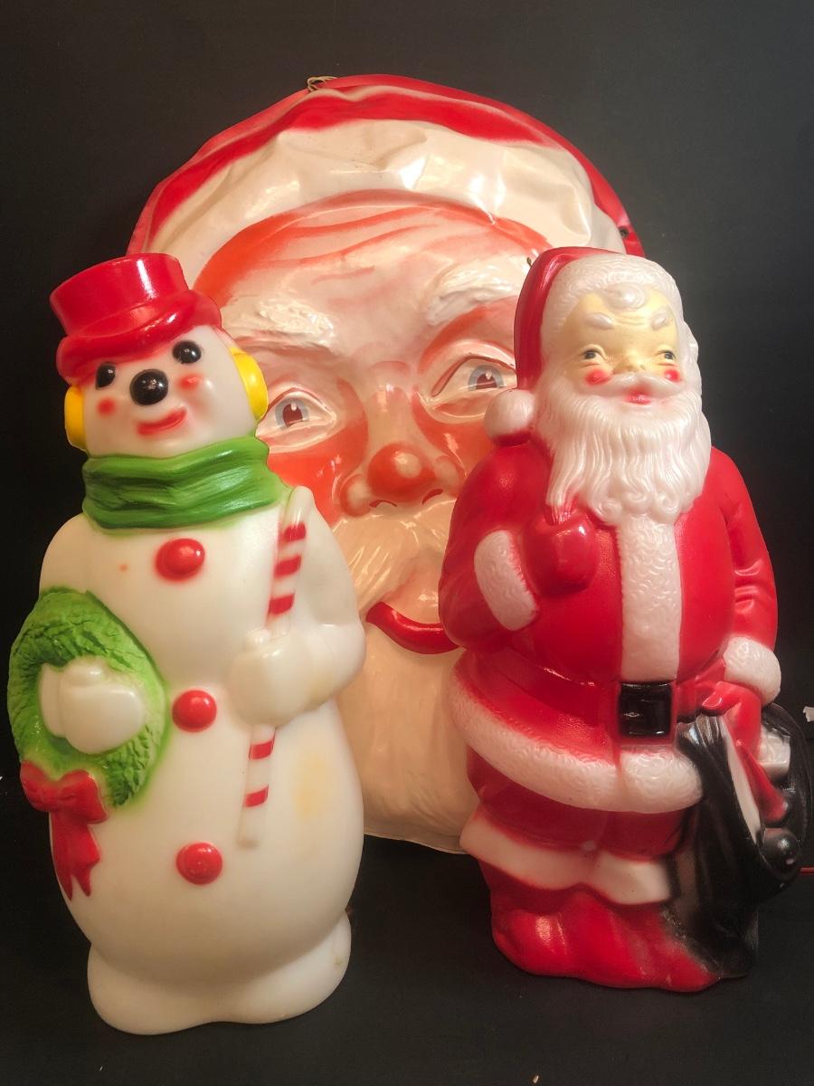 LOT 156M: Vintage Santa Face Wall Mounted Blow Mold Christmas Decoration w/ Snowman & Santa Blow Molds