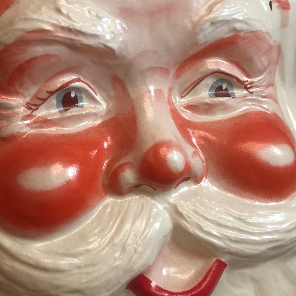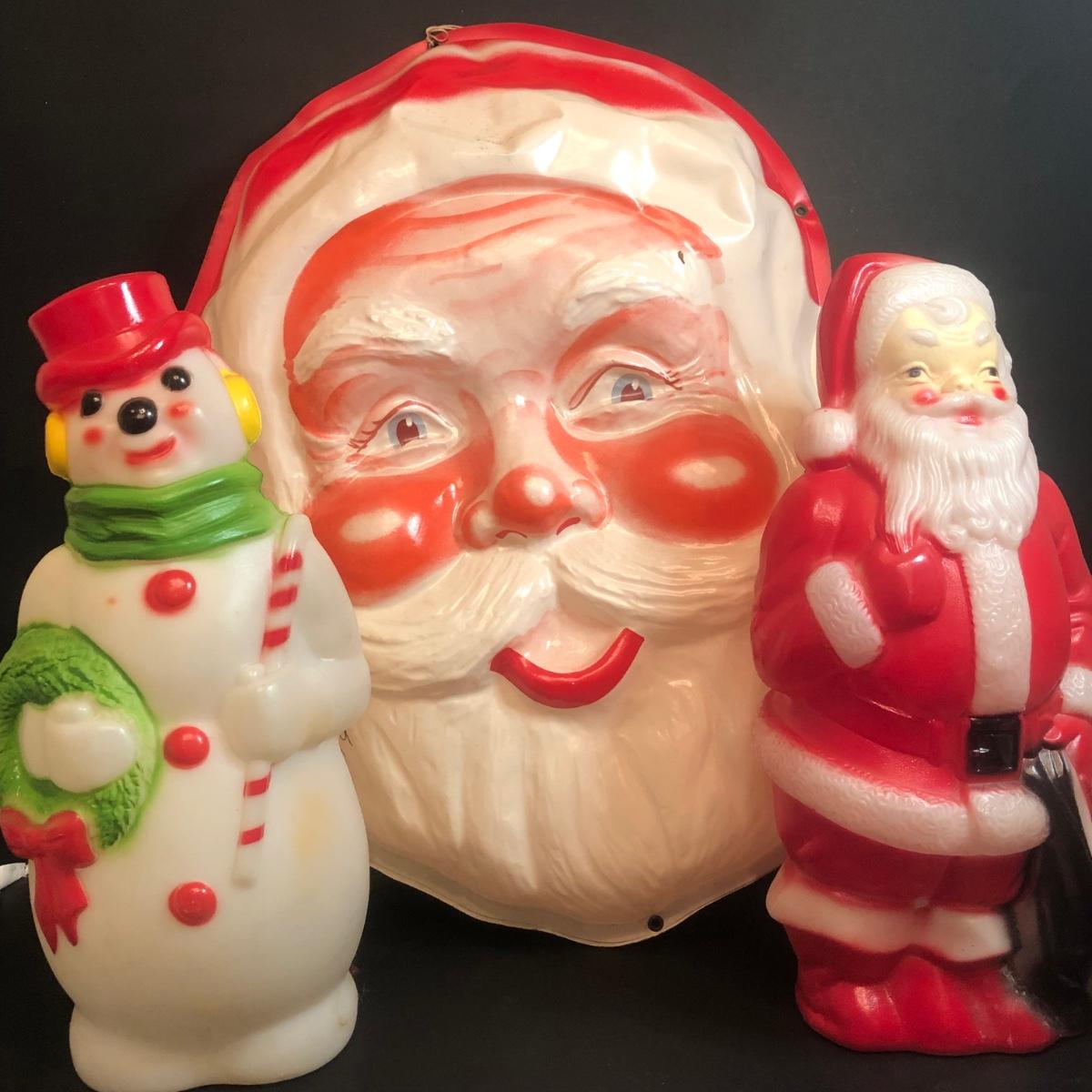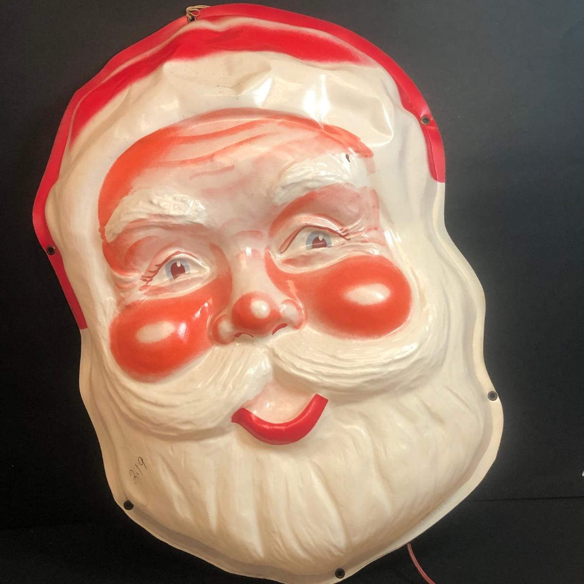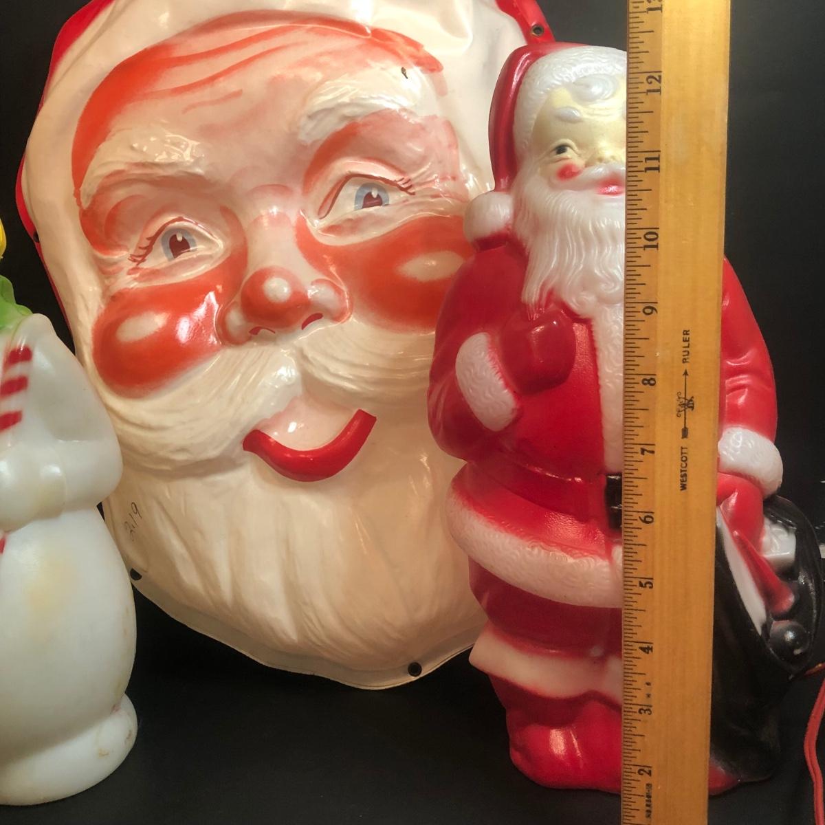 LOT 156M: Vintage Santa Face Wall Mounted Blow Mold Christmas Decoration w/ Snowman & Santa Blow Molds