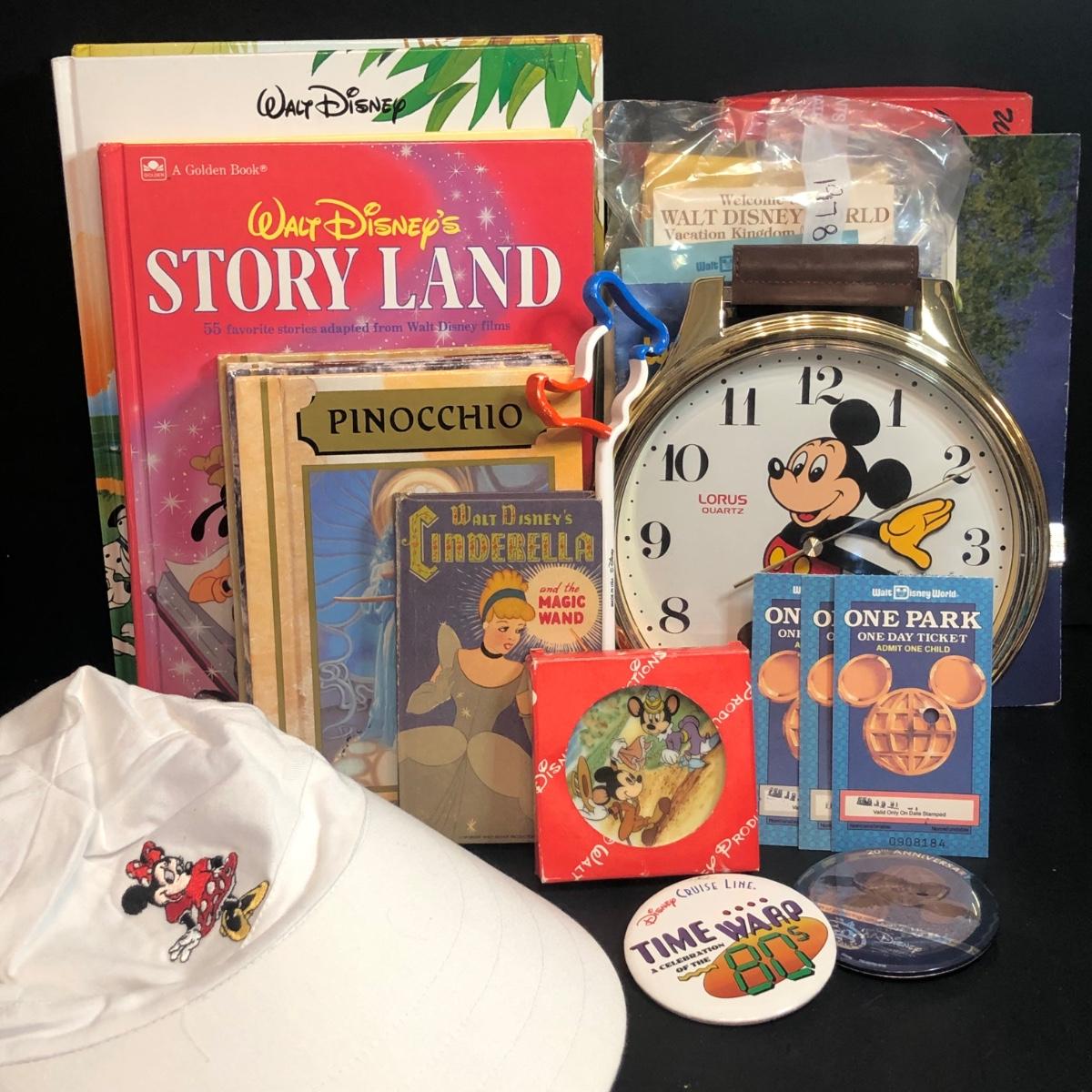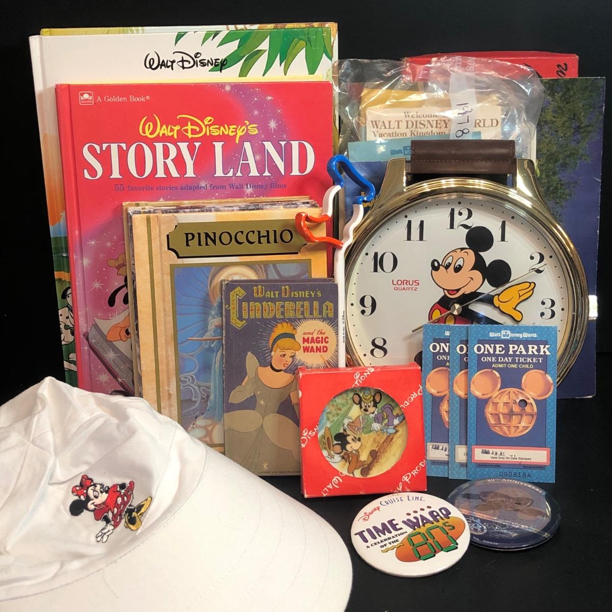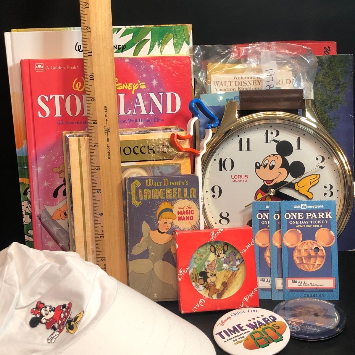 LOT 157M: Disney Souvenirs/Ephemera, Children's Books & Large Watch Shaped Lorus Quartz Mickey Hand Clock