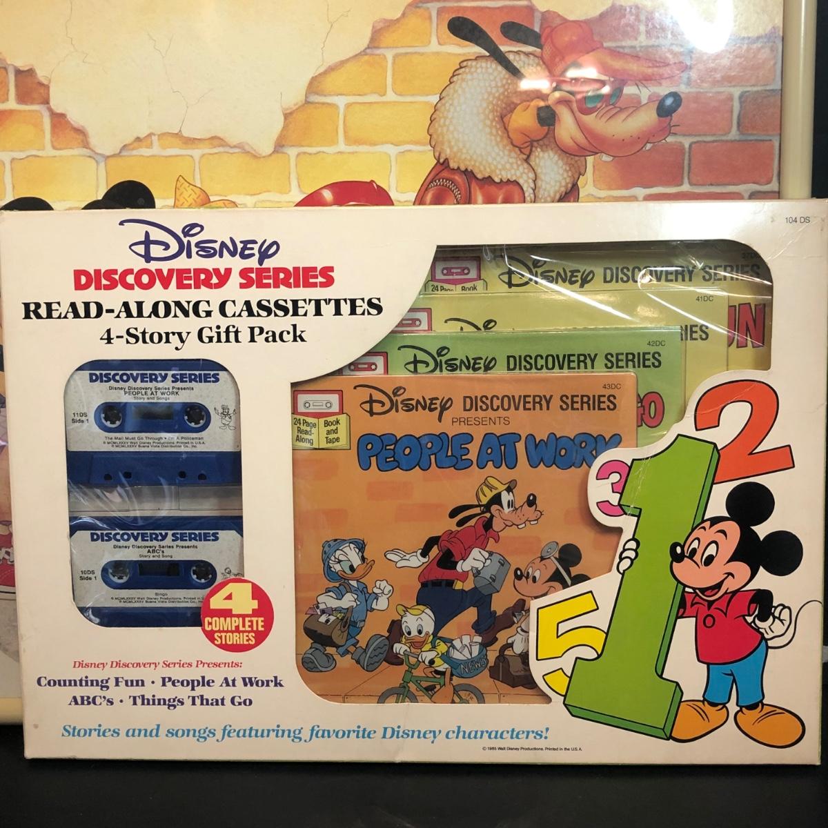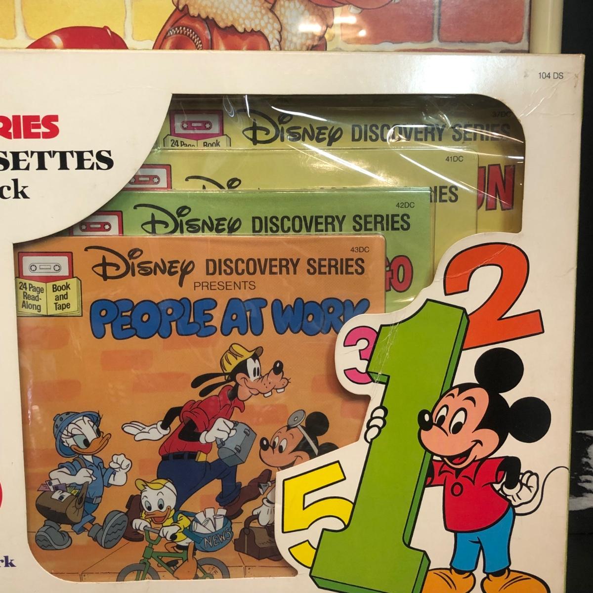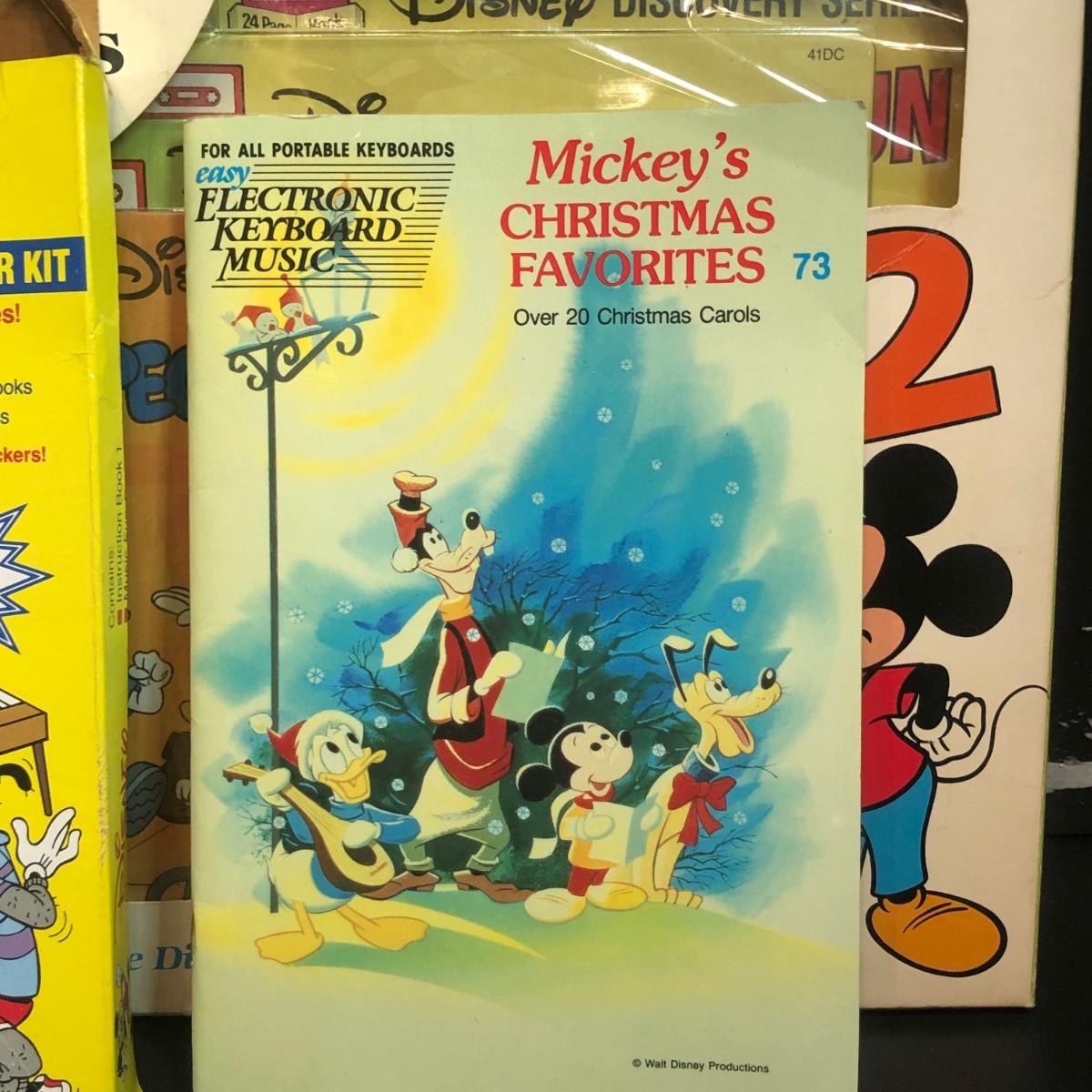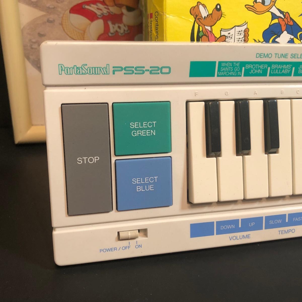 LOT 158M: Yamaha PortaSound PSS-20 Keyboard w/ Vintage Disney Keyboard Starter Kit, Disney Discovery Series Read Along Cassettes (NIB) & 80s/90s Framed Mickey & Friends Poster