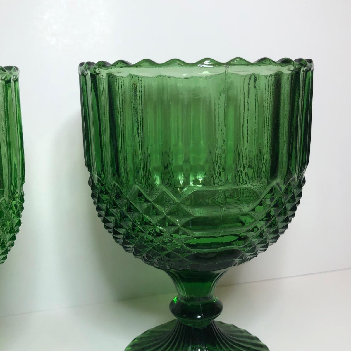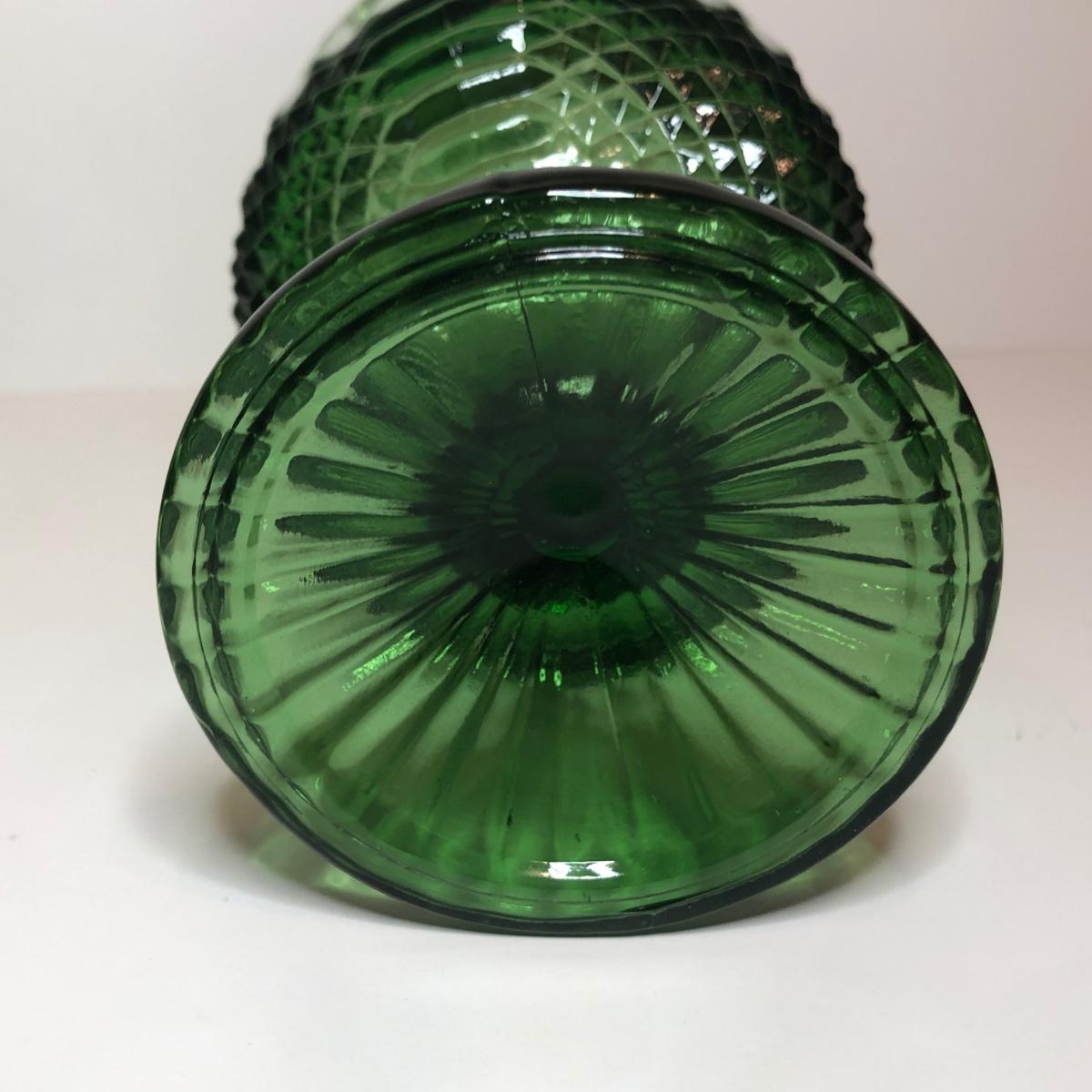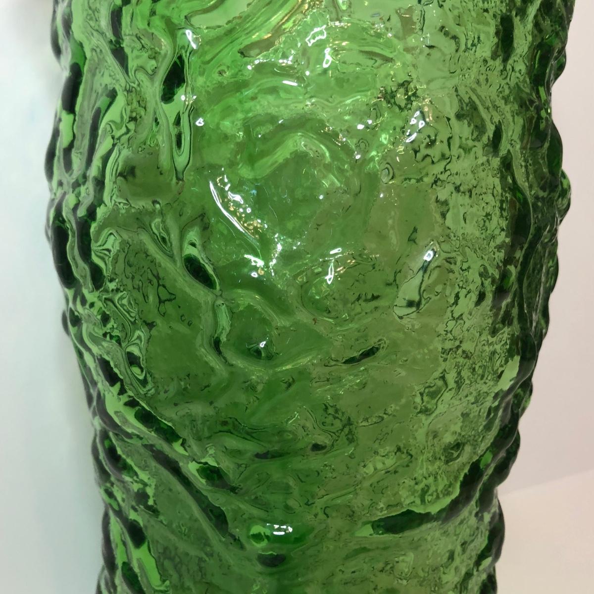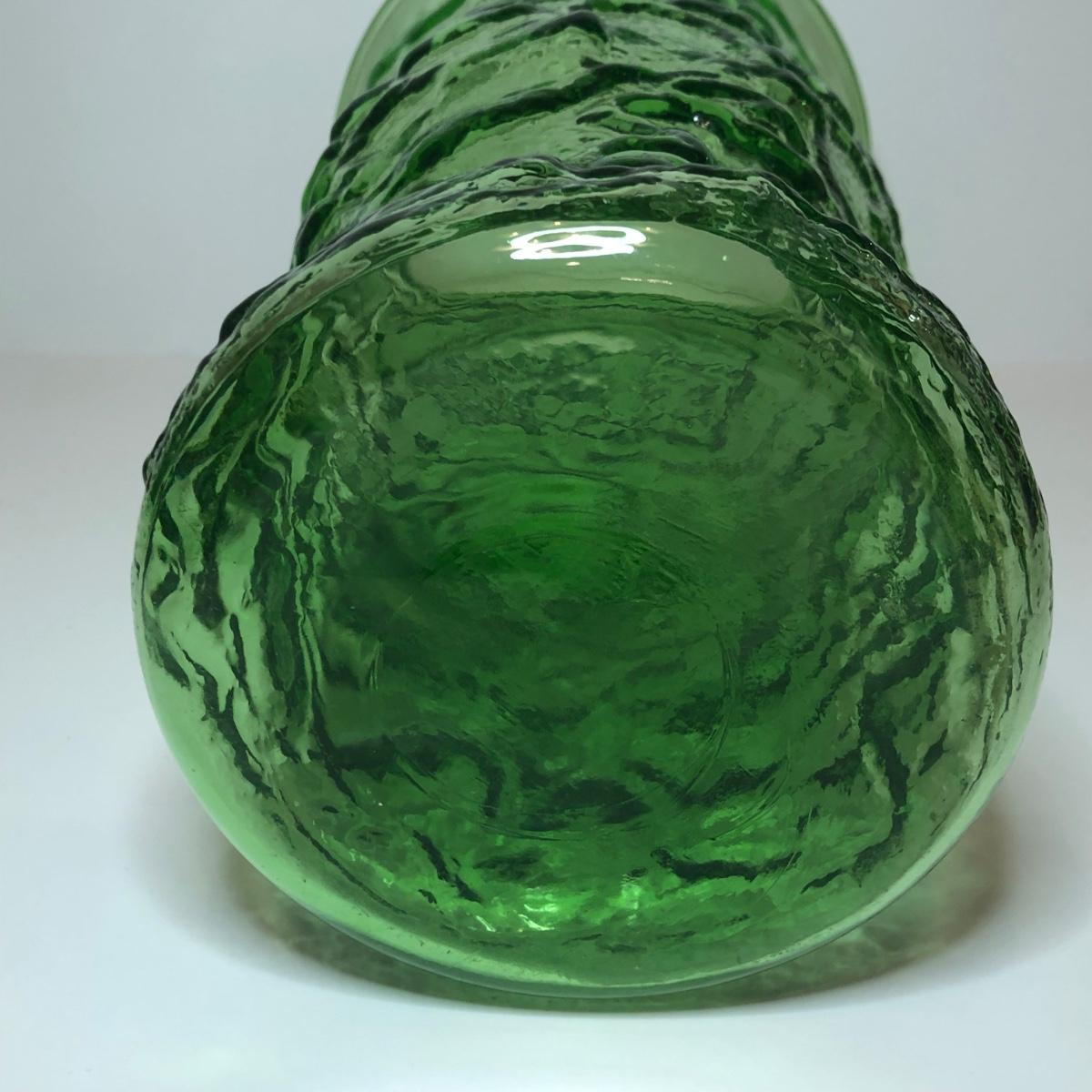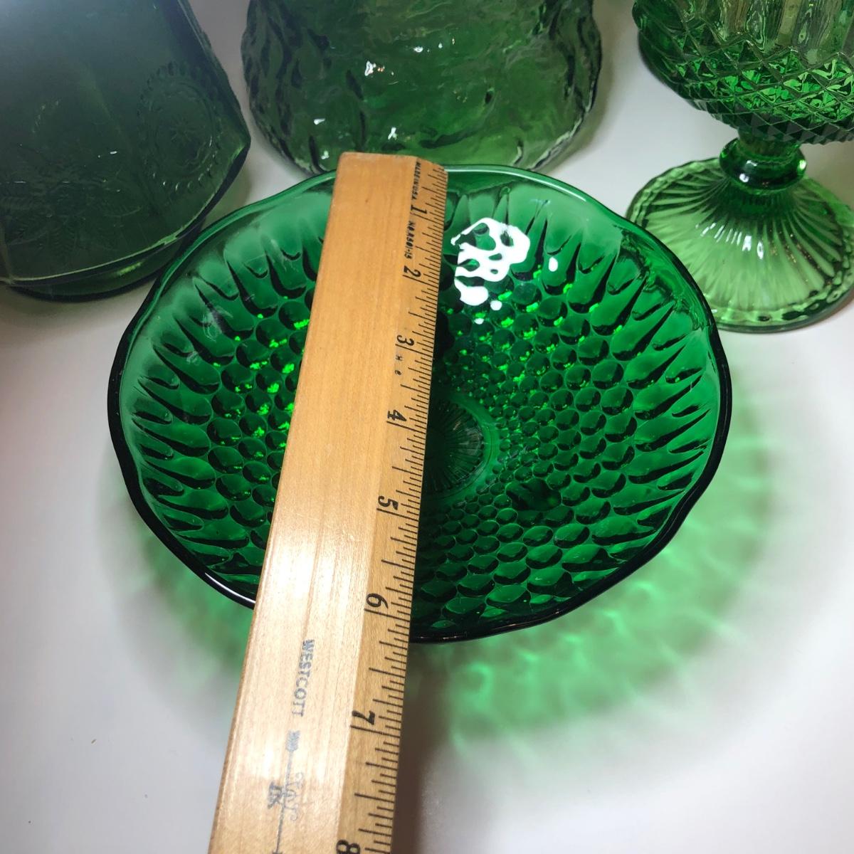 LOT 163M: Large Vintage Avocado Textured Glass Vase, Footed Green Wheaton Pressed Glass Tree Shaped Vase, Hobnail Green Footed Bowl & Vintage Green Glass Goblets