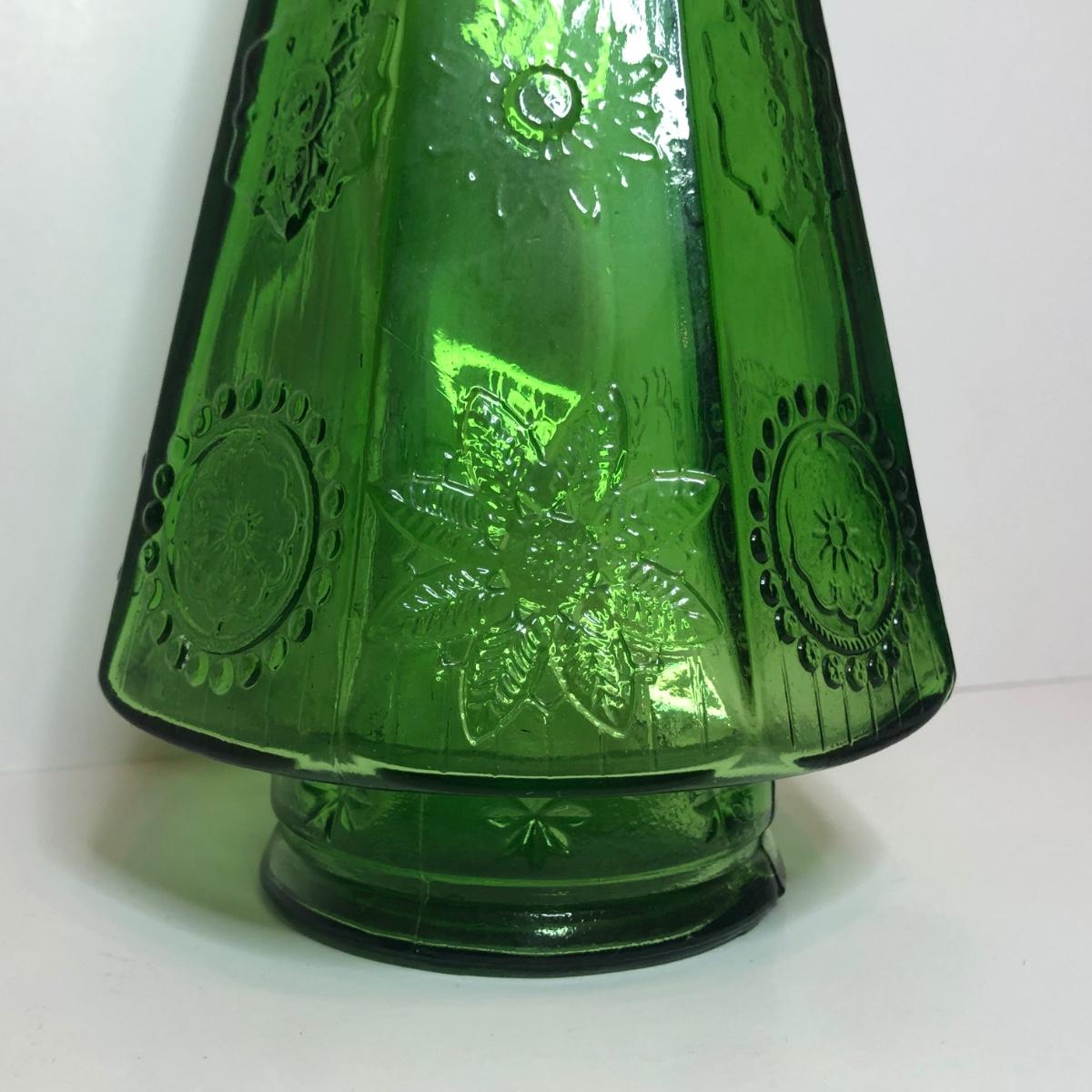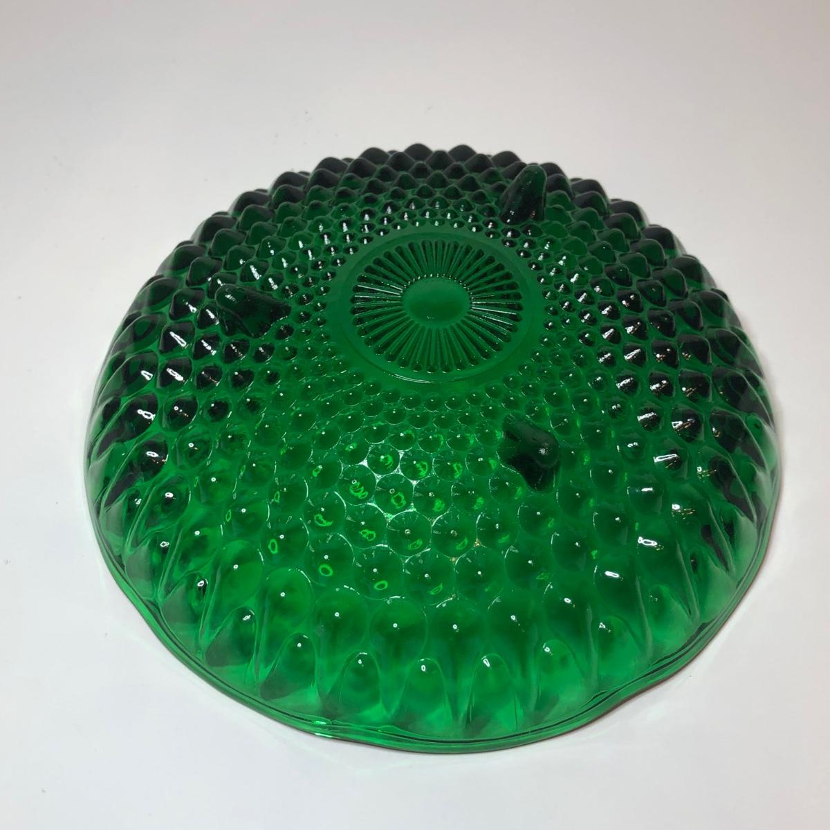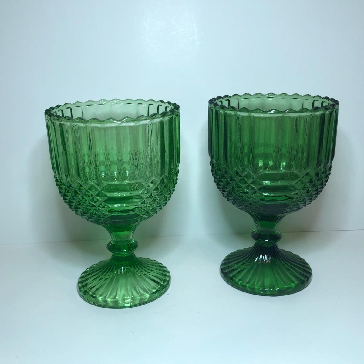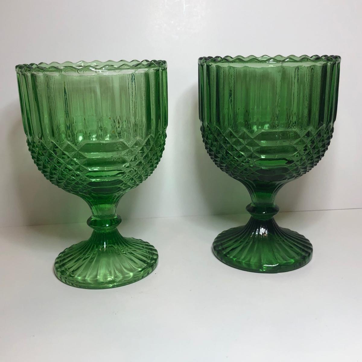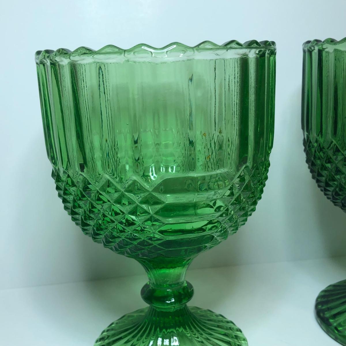 LOT 163M: Large Vintage Avocado Textured Glass Vase, Footed Green Wheaton Pressed Glass Tree Shaped Vase, Hobnail Green Footed Bowl & Vintage Green Glass Goblets