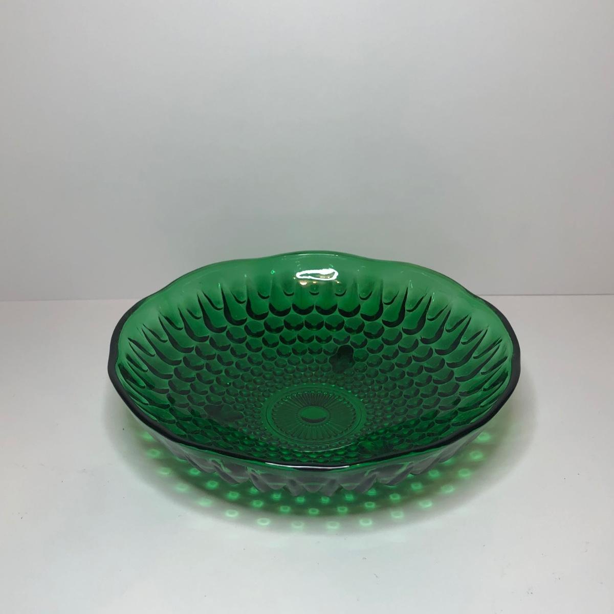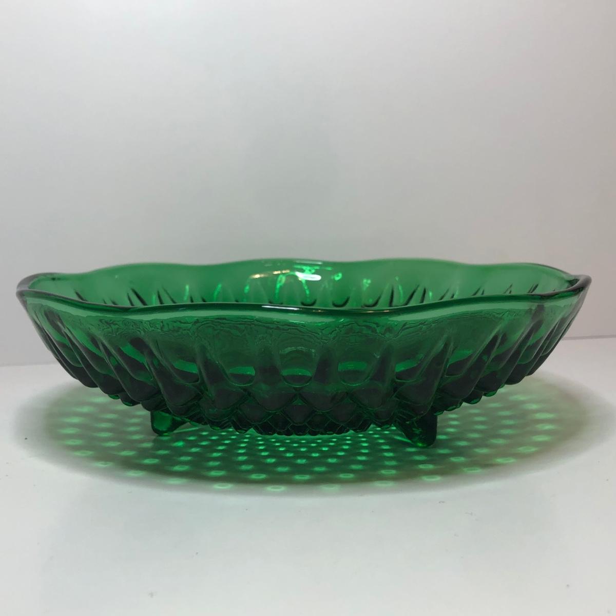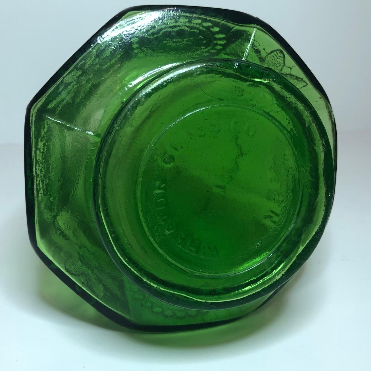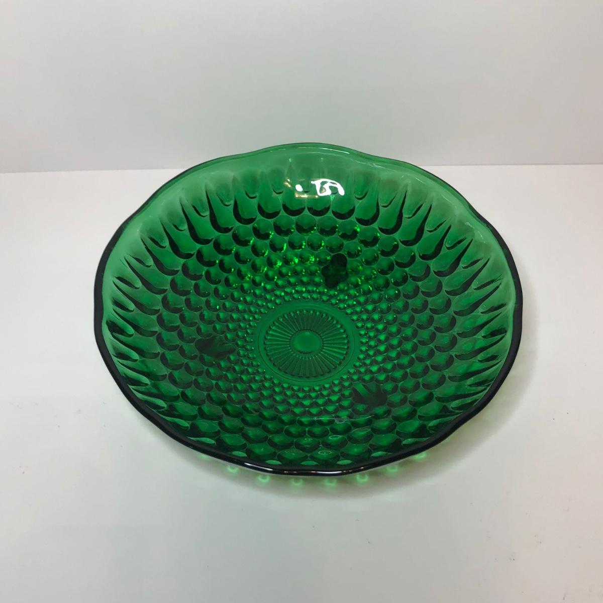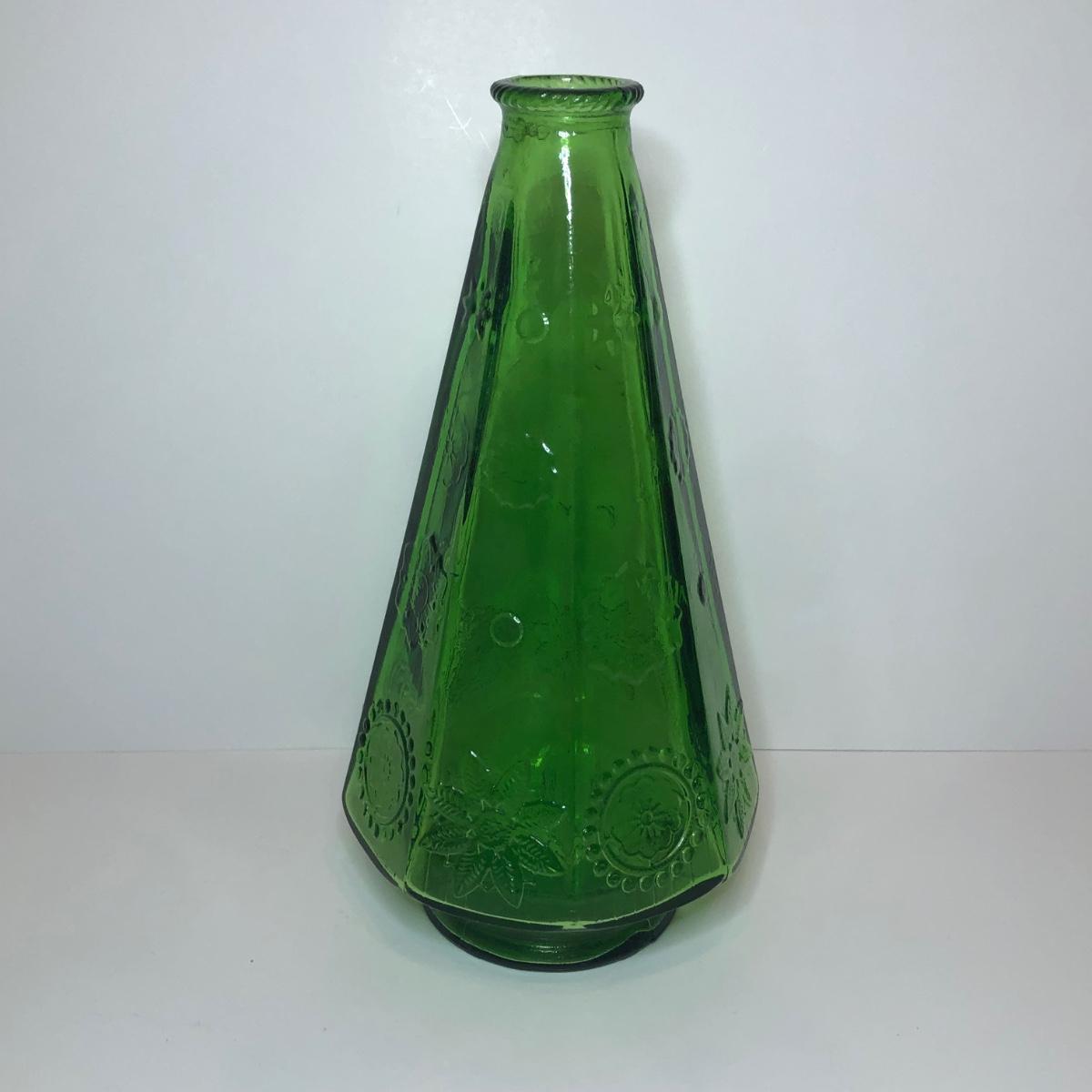 LOT 163M: Large Vintage Avocado Textured Glass Vase, Footed Green Wheaton Pressed Glass Tree Shaped Vase, Hobnail Green Footed Bowl & Vintage Green Glass Goblets