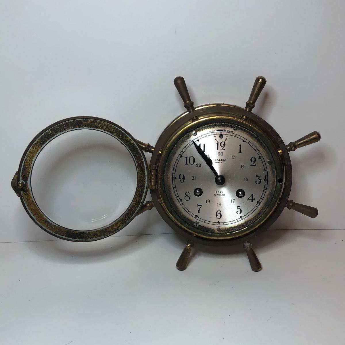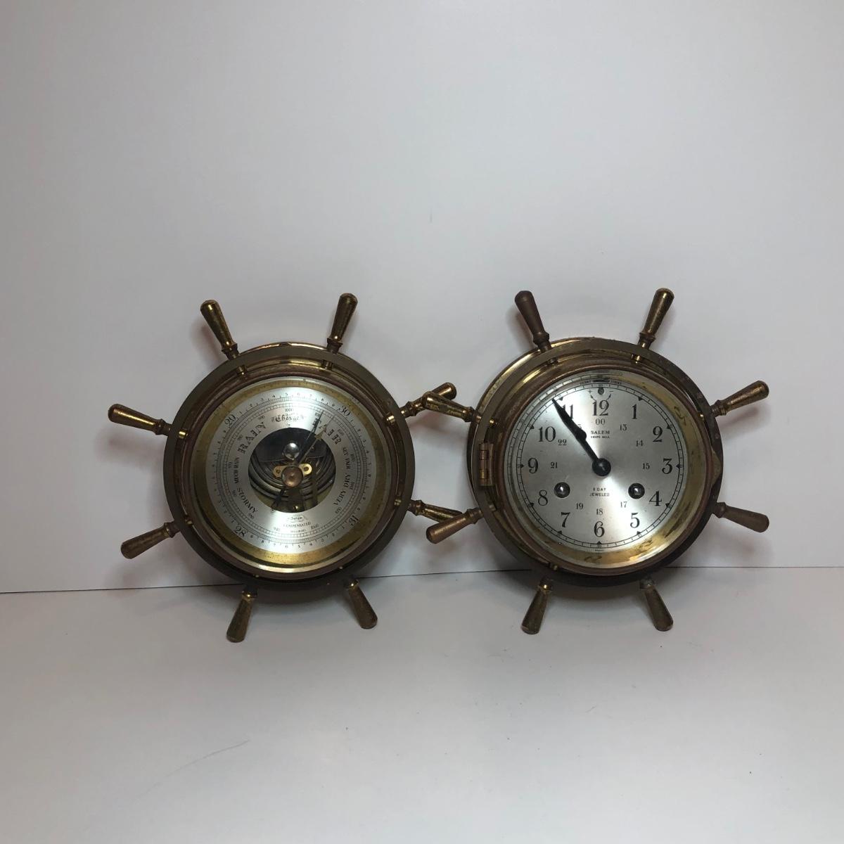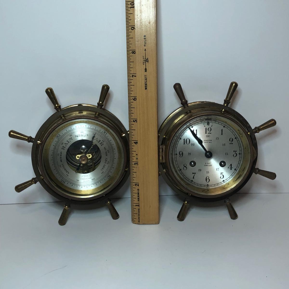 LOT 182M: Salem Ships Bell 8 Day Jeweled Clock & Salem Compensated Ships Wheel Barometer
