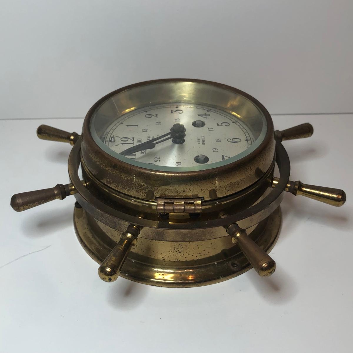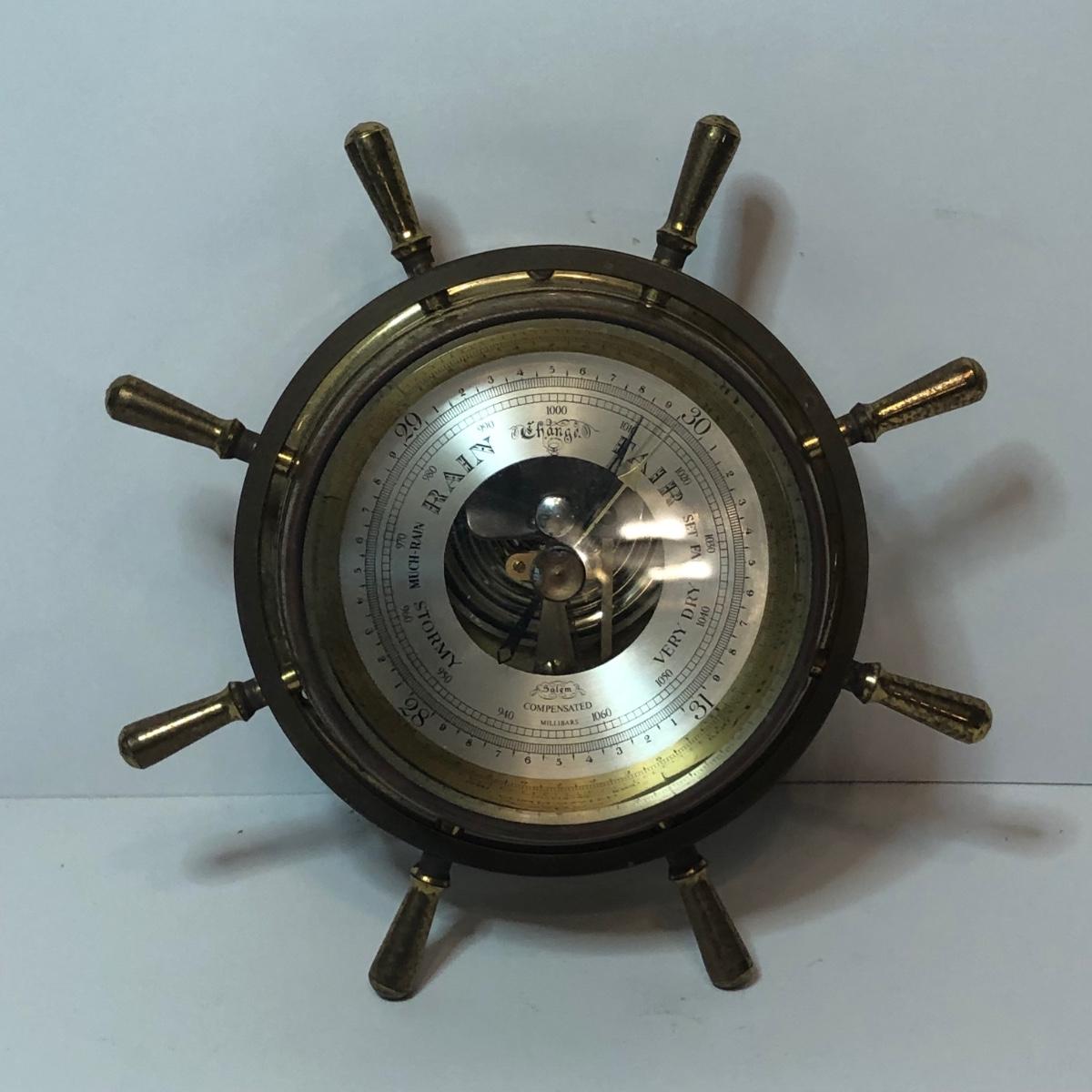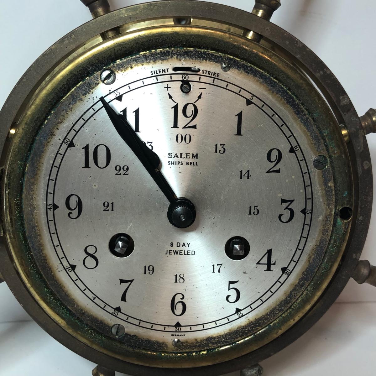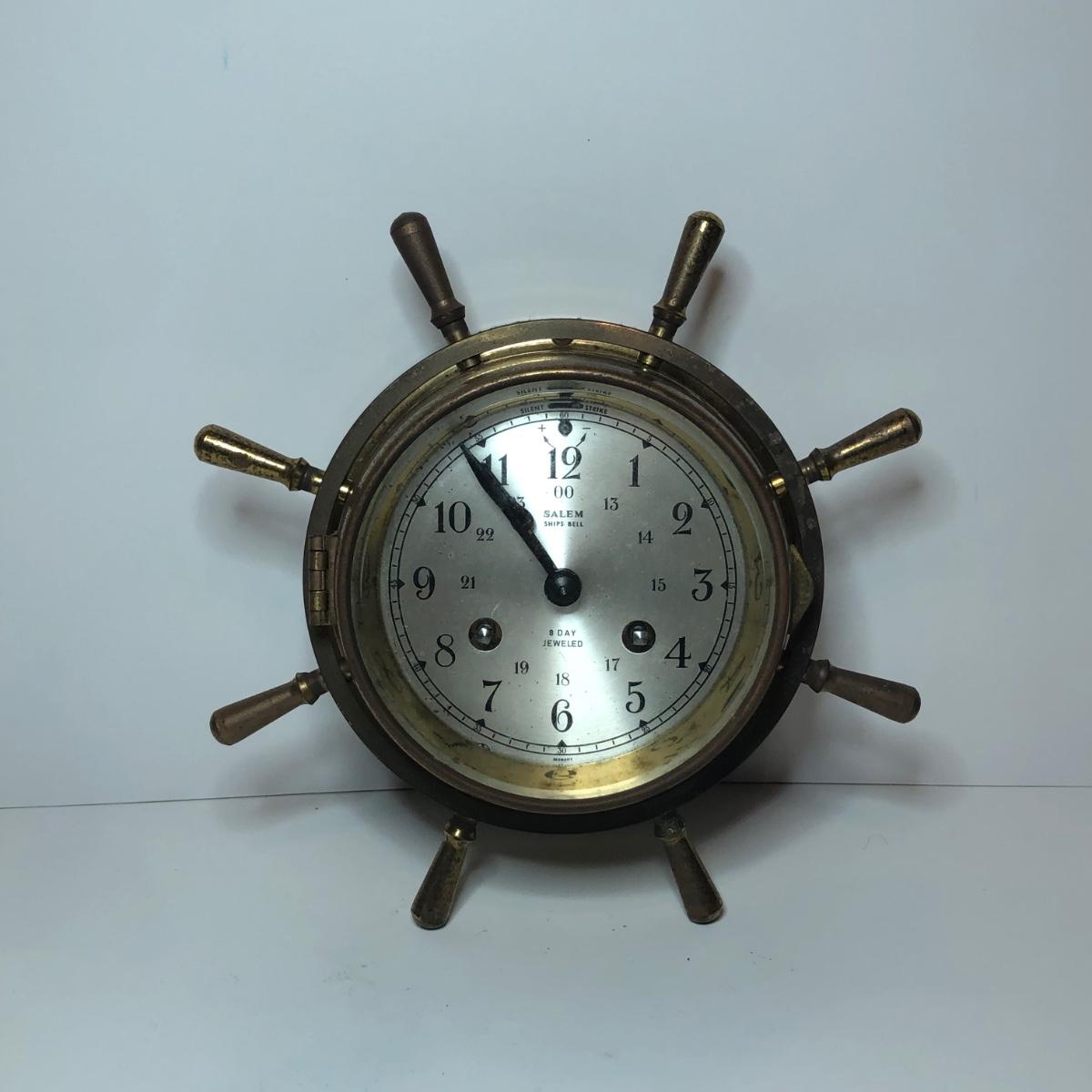 LOT 182M: Salem Ships Bell 8 Day Jeweled Clock & Salem Compensated Ships Wheel Barometer