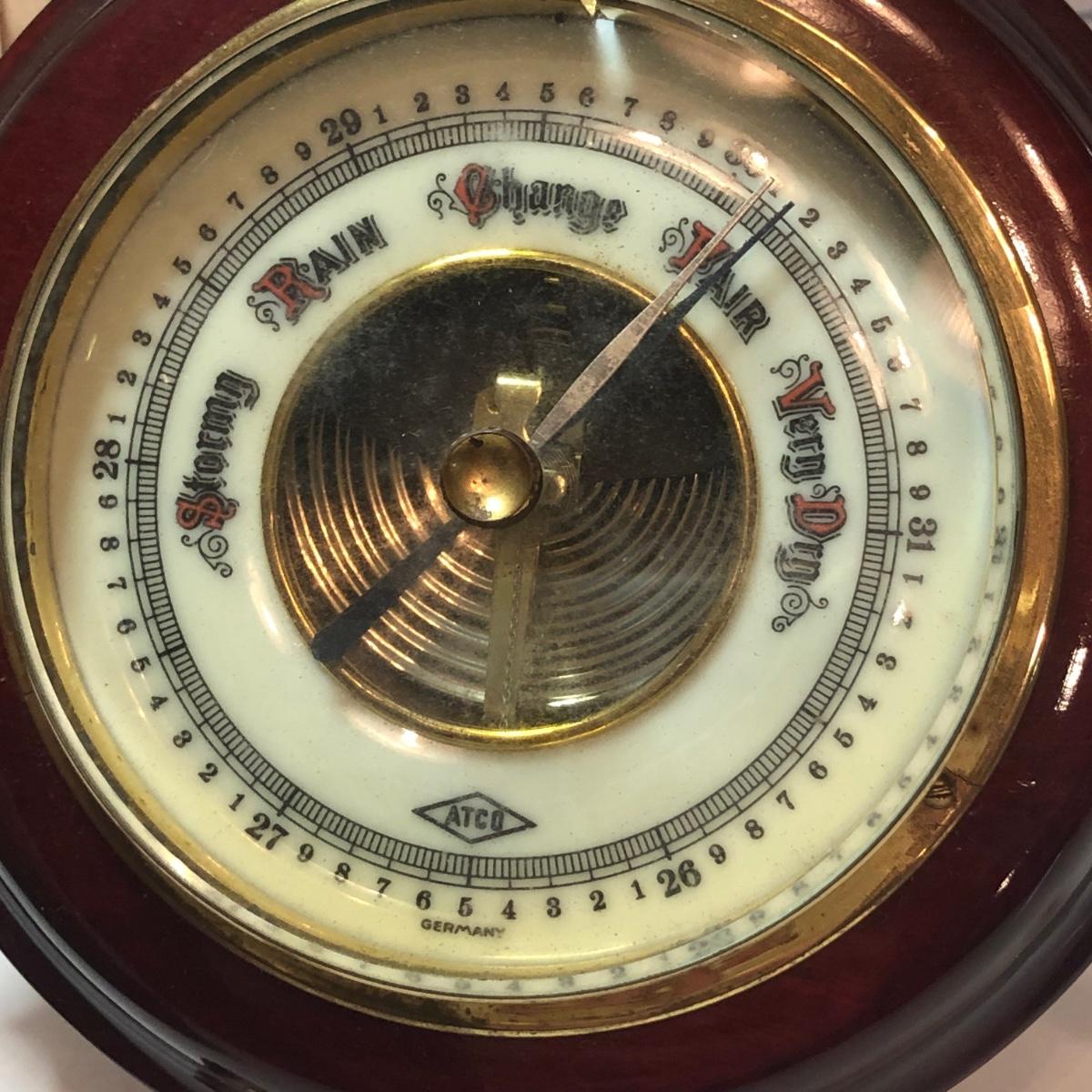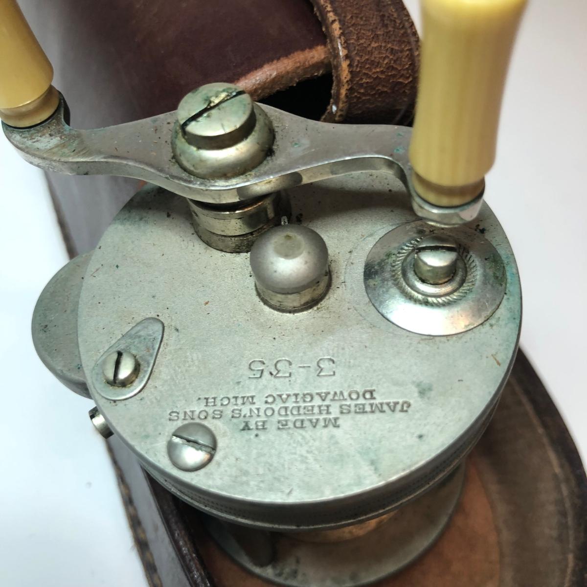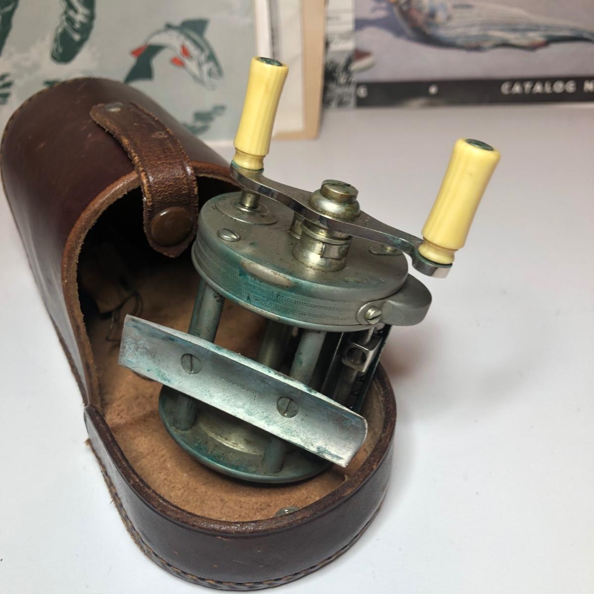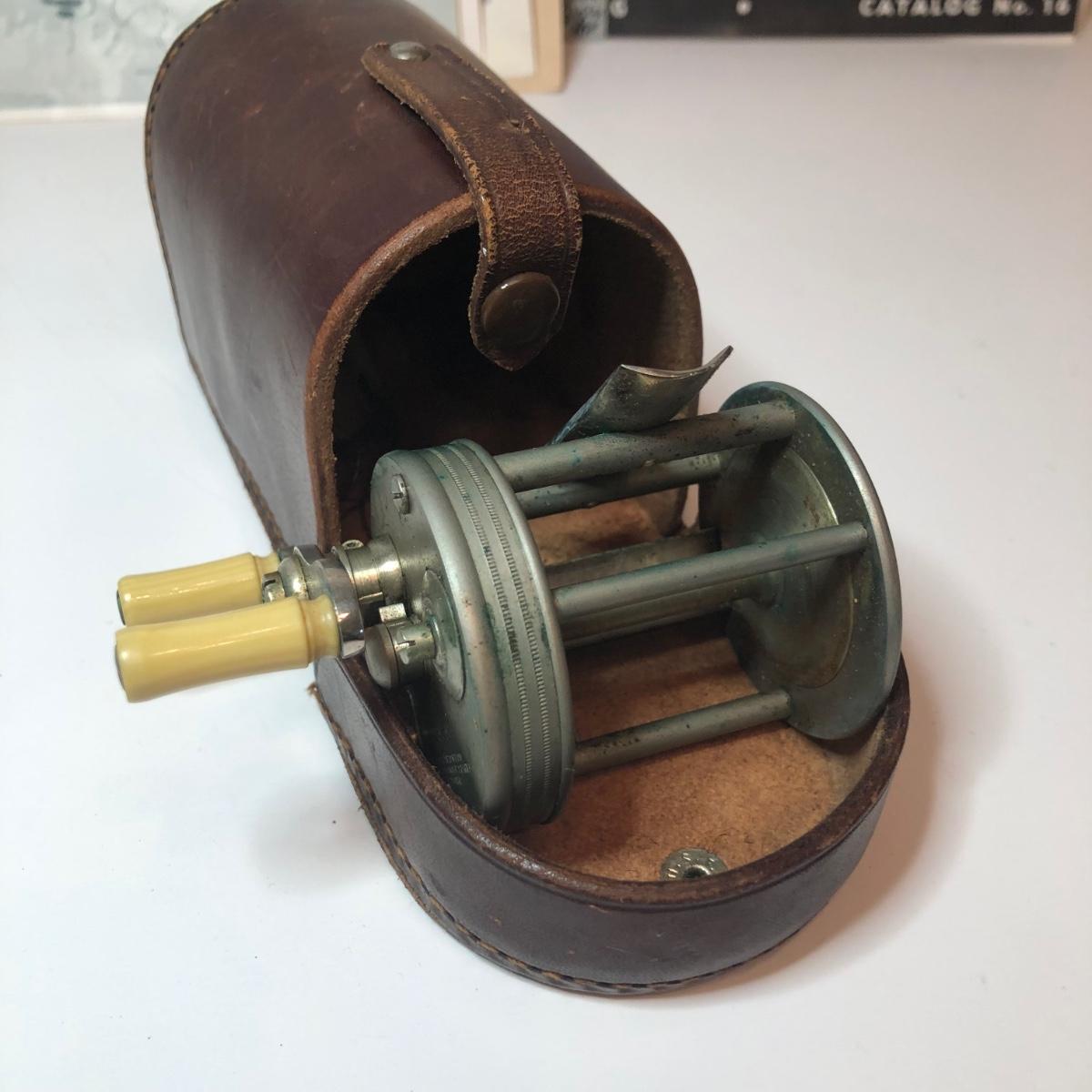 LOT 184M: ATCO German Ships Wheel Nautical Barometer, Vintage James Heddon's Sons 3-35 Fishing Reel in Case & Vintage Fishing/Boat Ephemera