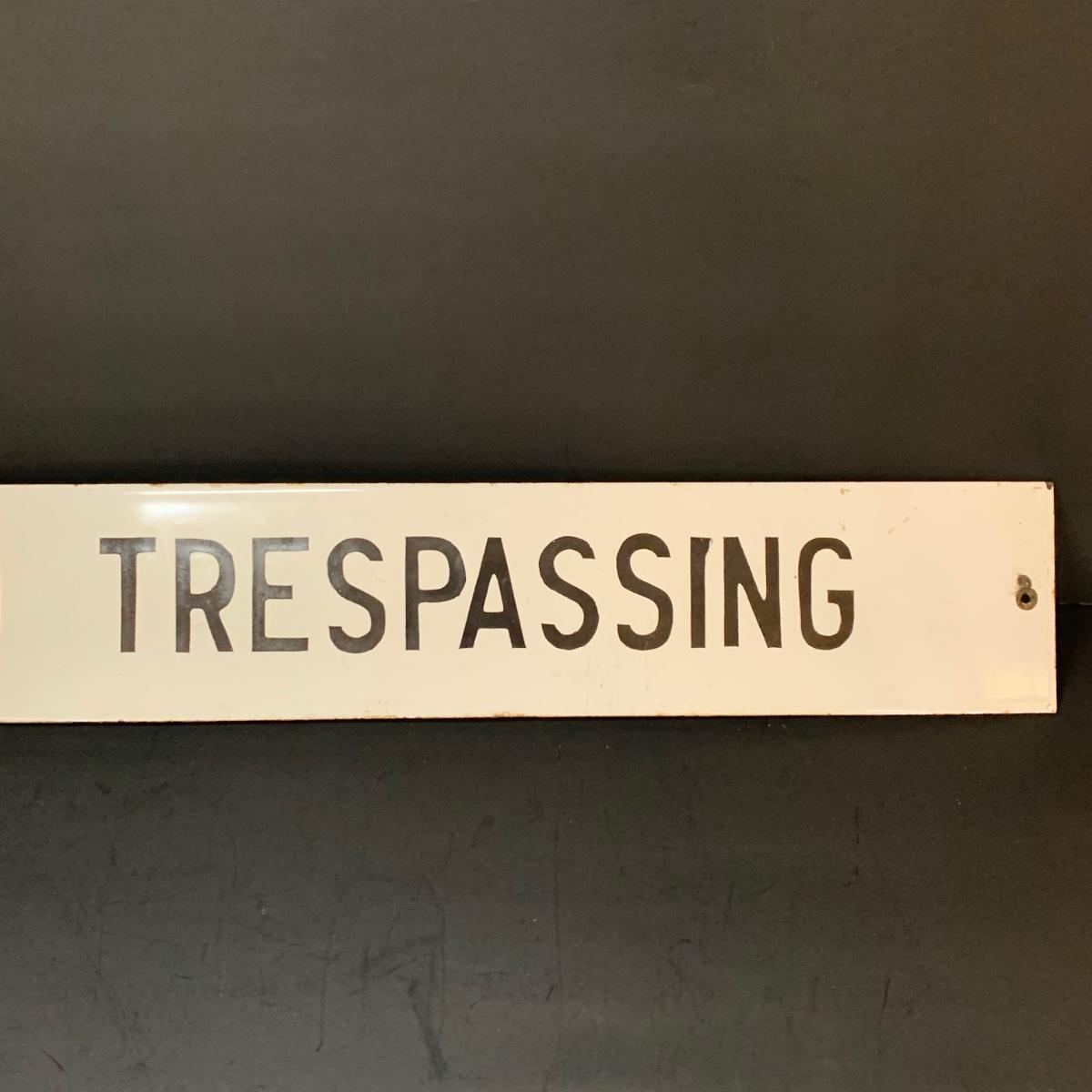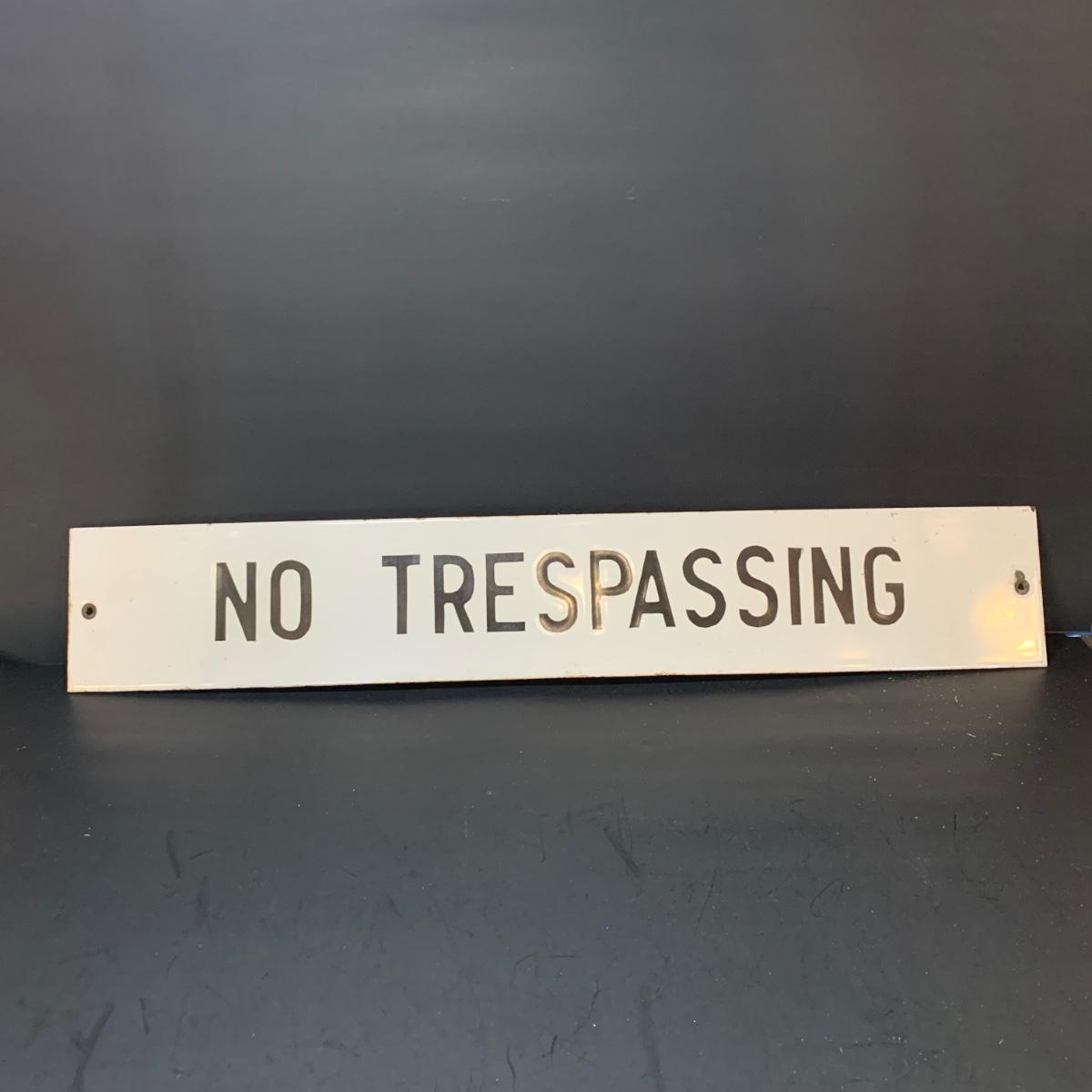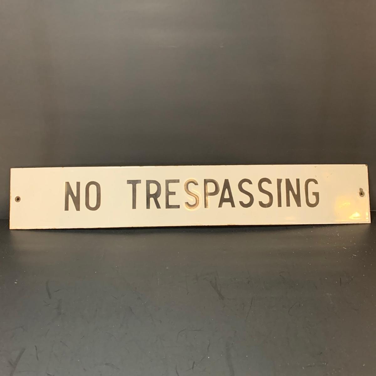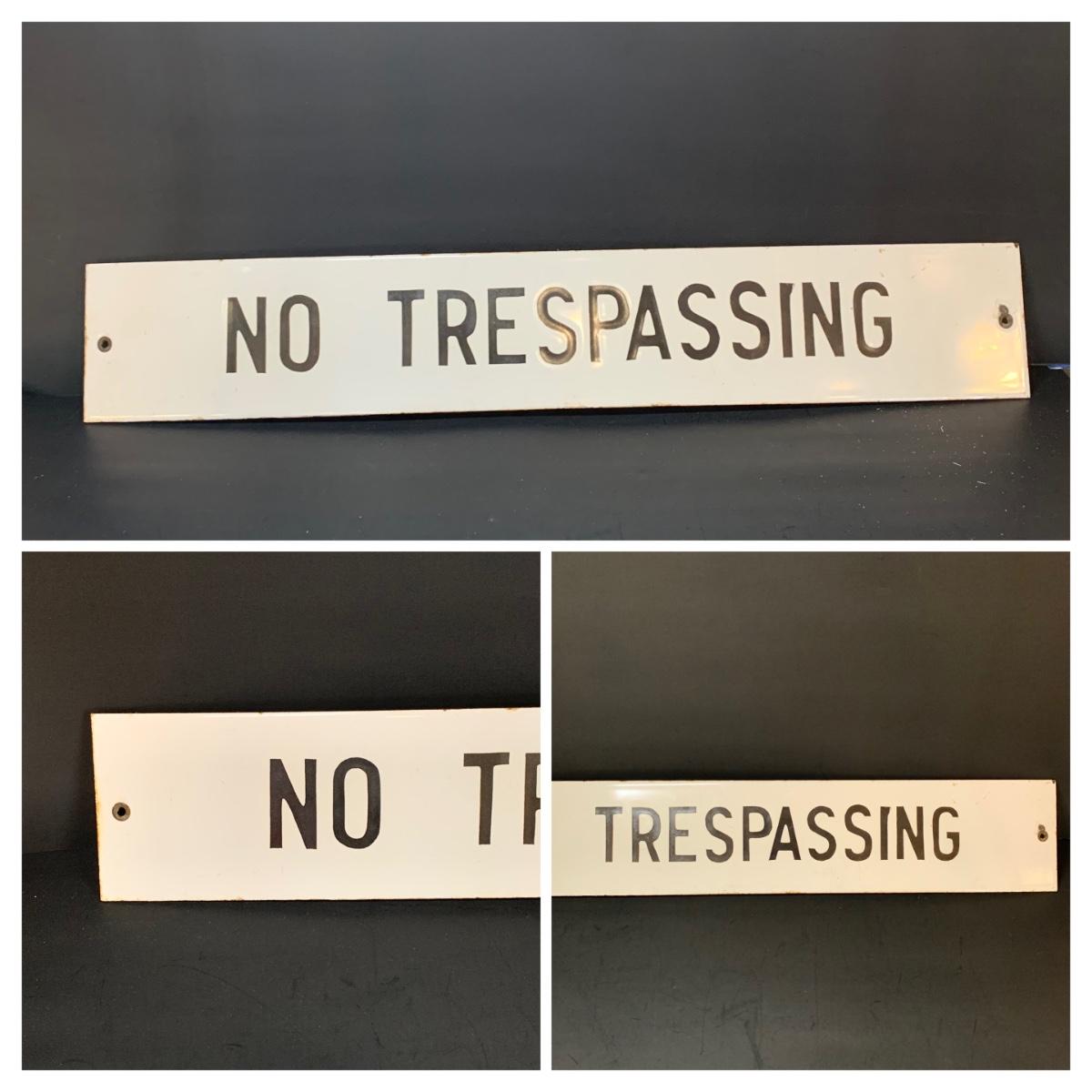 LOT 191R: Vintage Porcelain No Trespassing Sign (24" x 4")