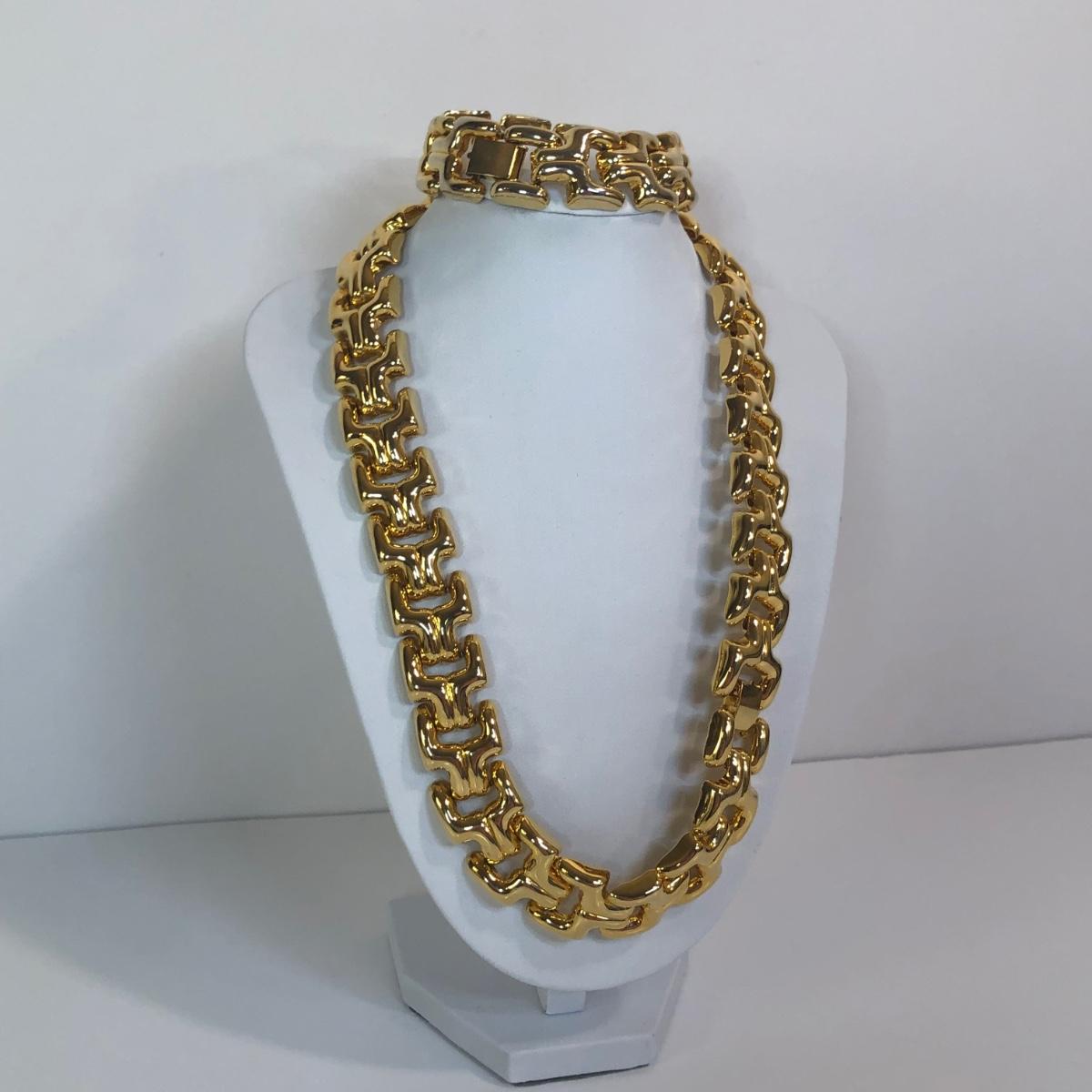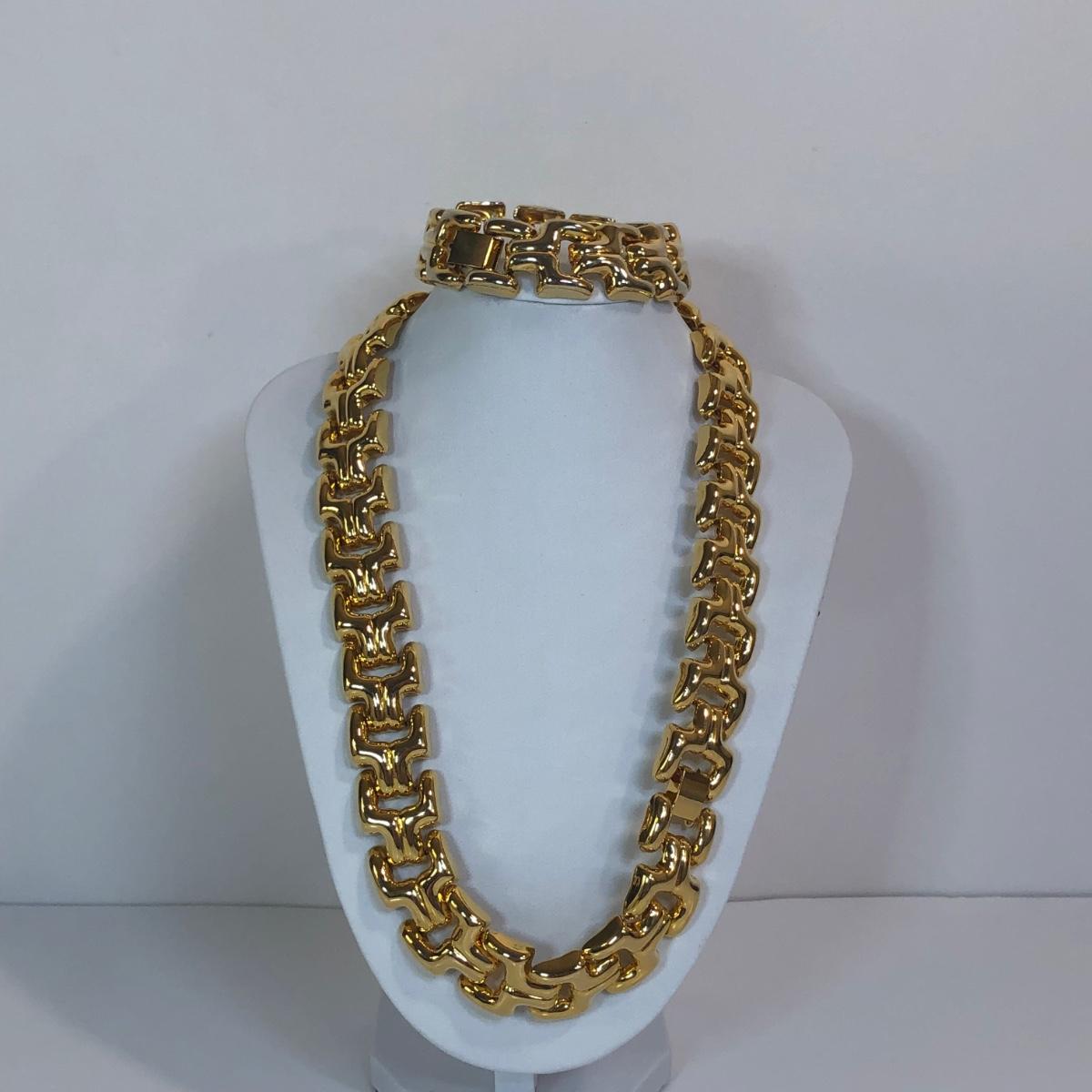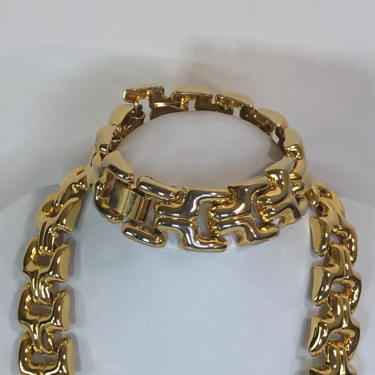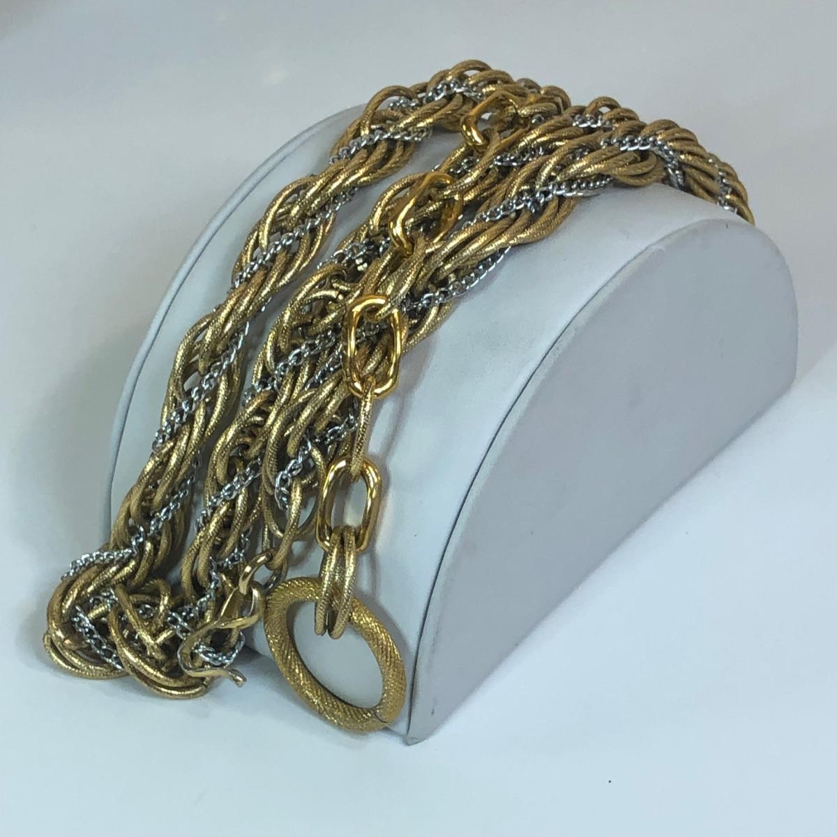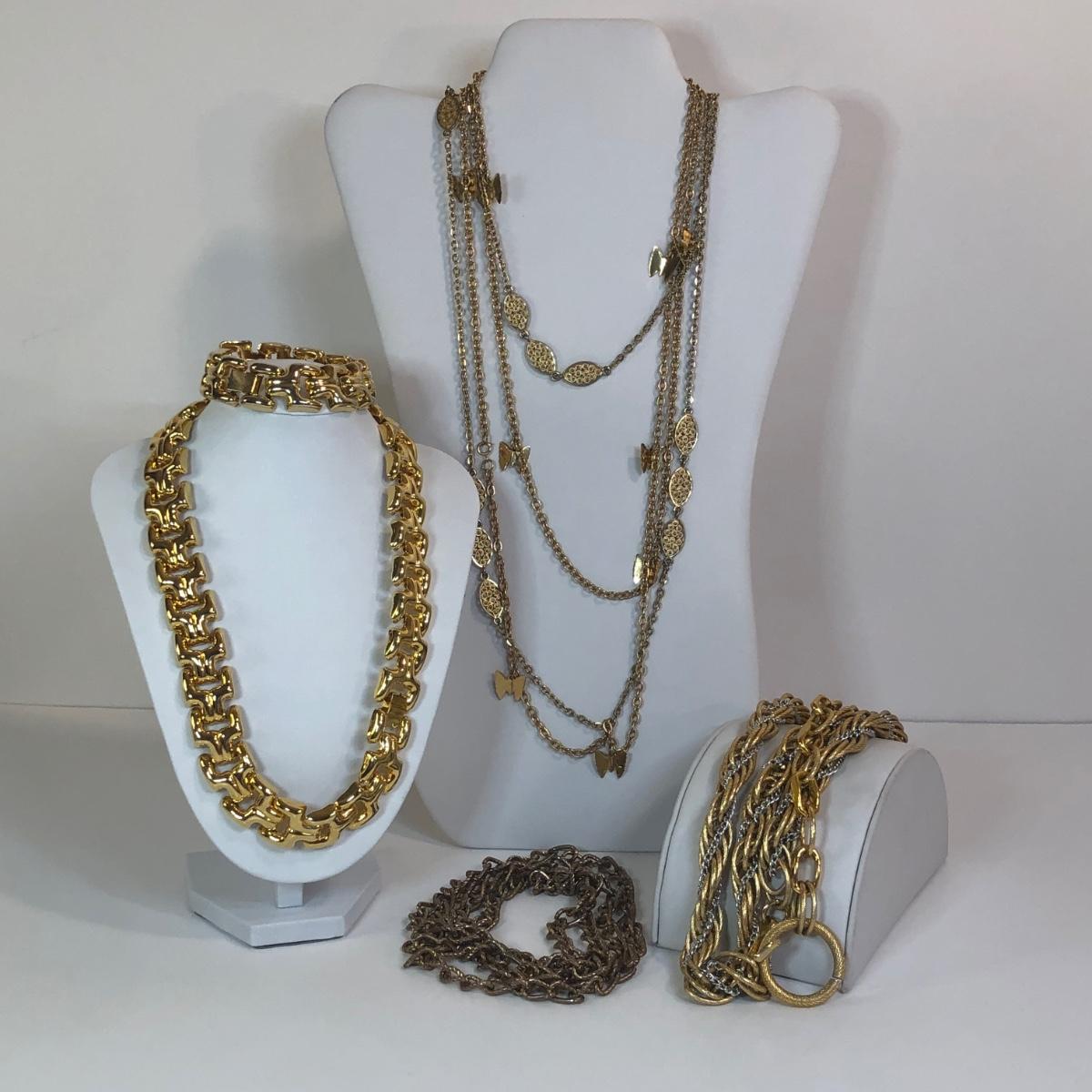 LOT 110M: Long Goldtone Necklaces (52" & 55"), Goldtone Link Necklace & Bracelet Set & Chain Belts
