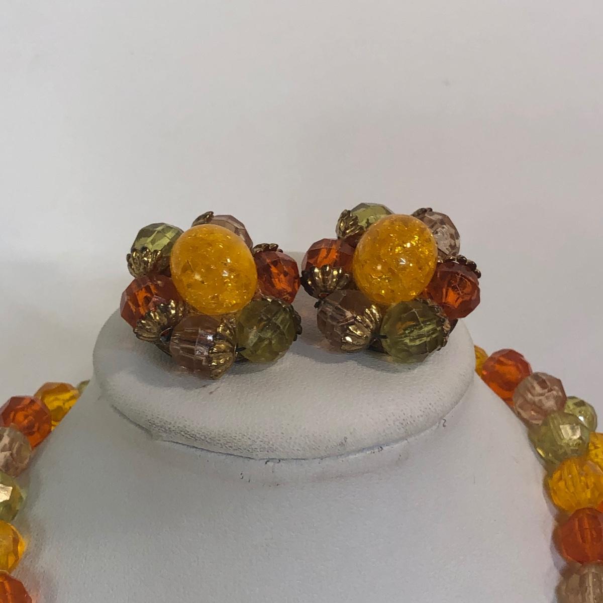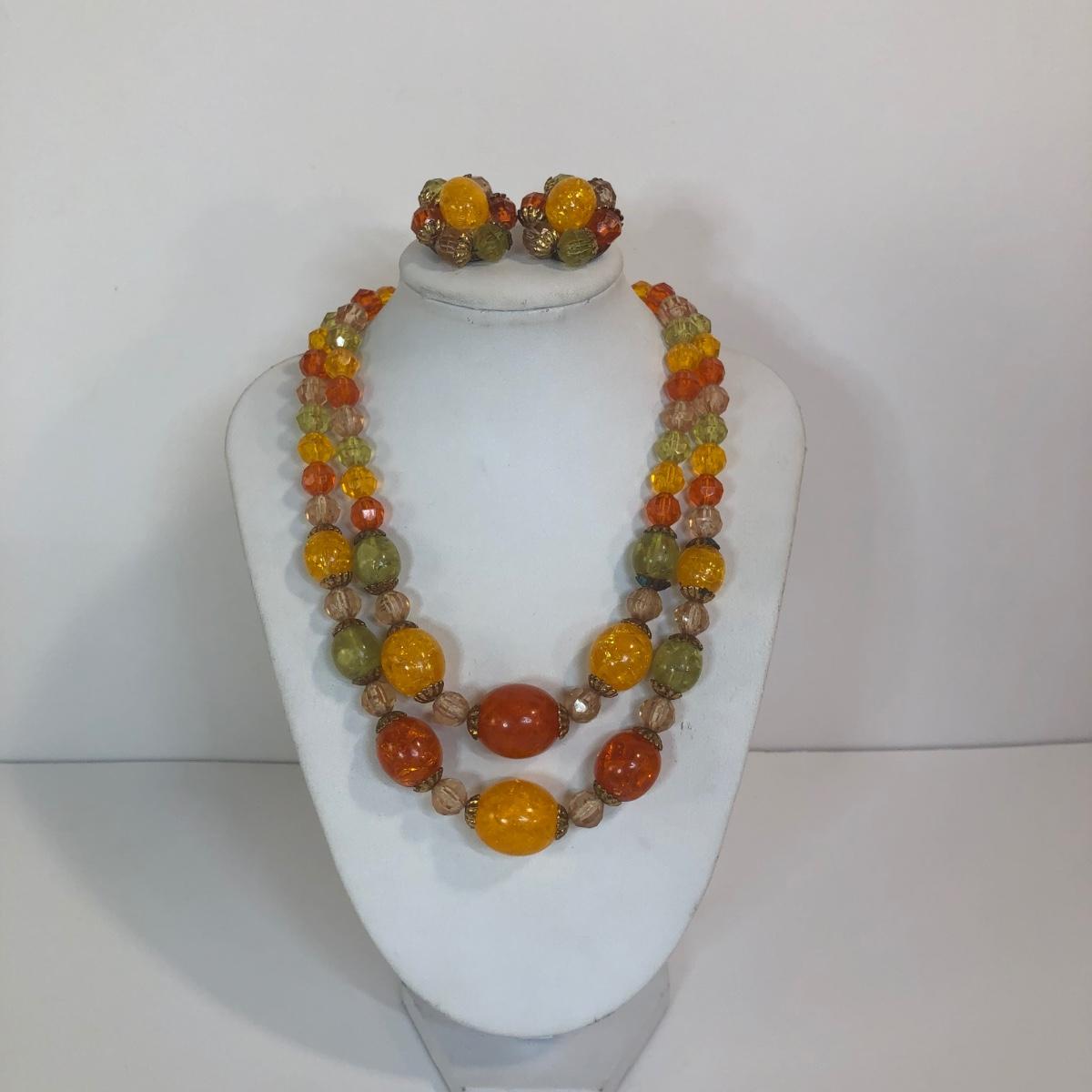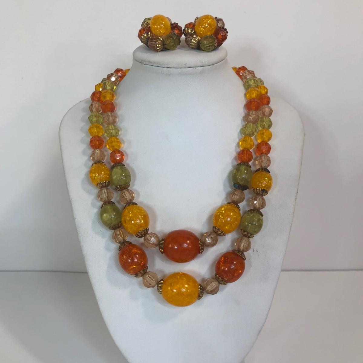 LOT 111M: Warm Color Jewelry Collection - Scarab Earrings, Plastic Bangles, Bead Necklaces & More