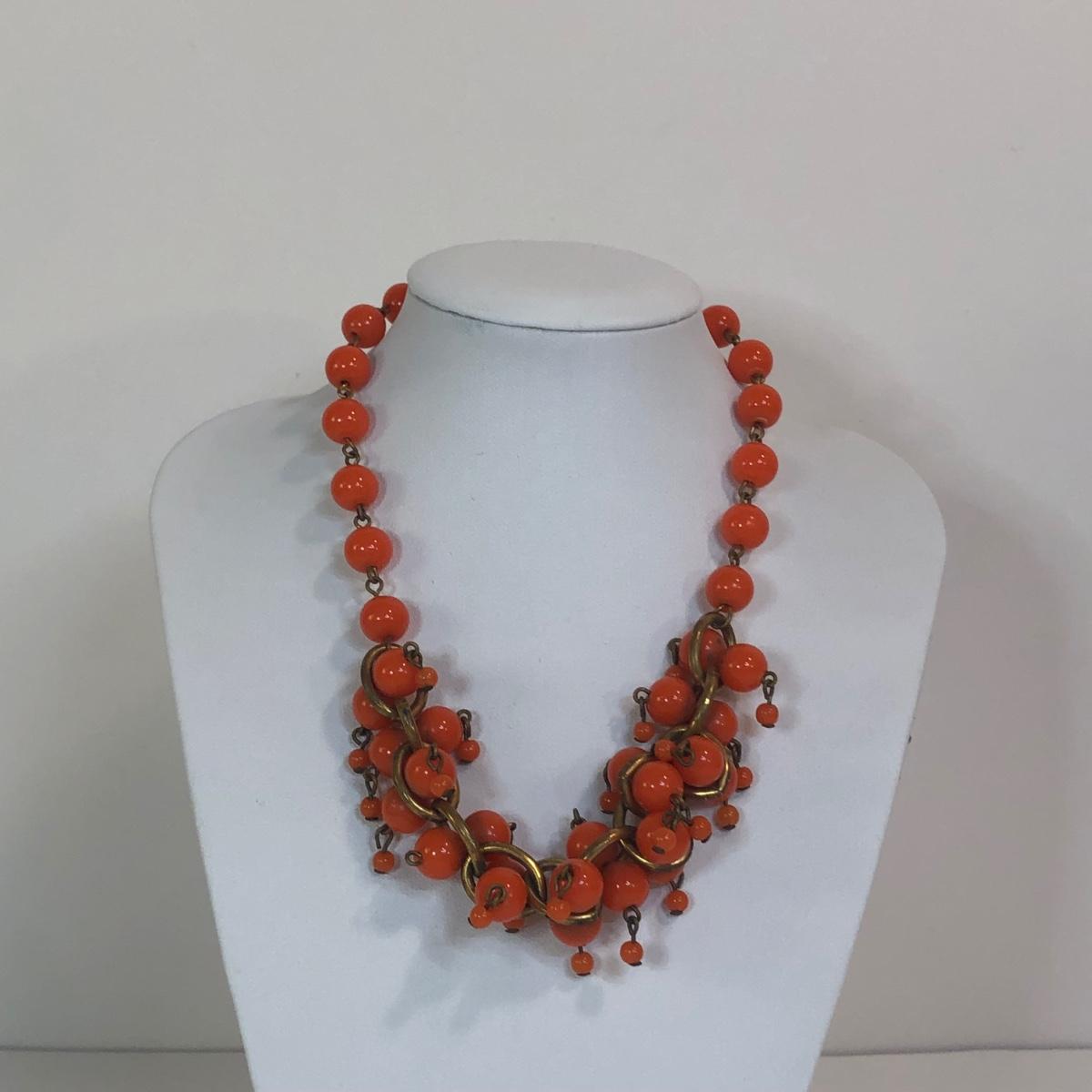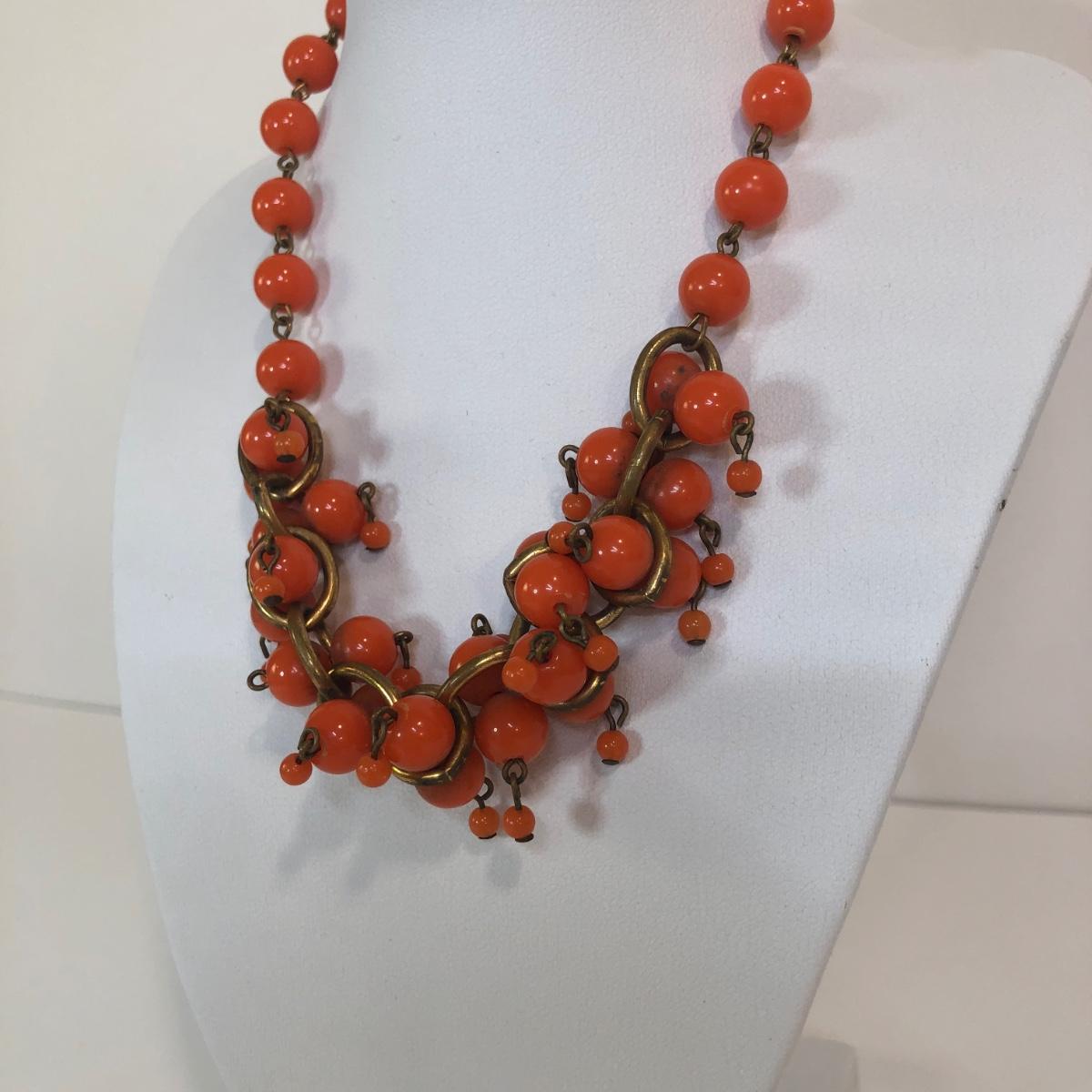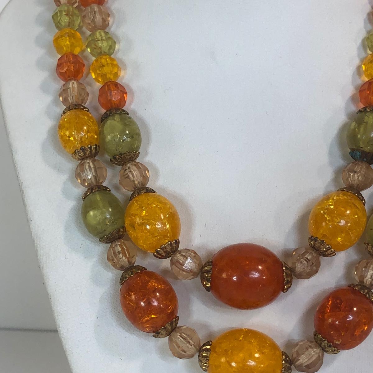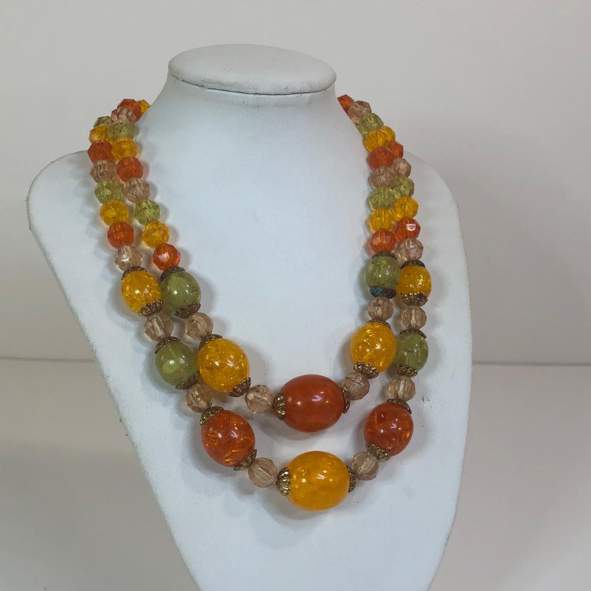 LOT 111M: Warm Color Jewelry Collection - Scarab Earrings, Plastic Bangles, Bead Necklaces & More