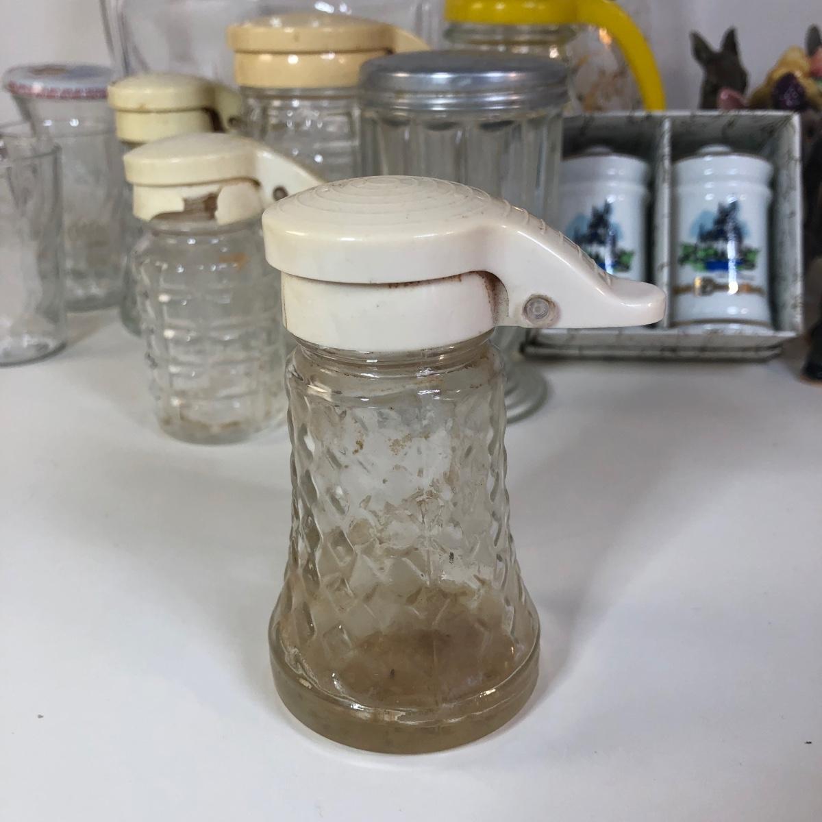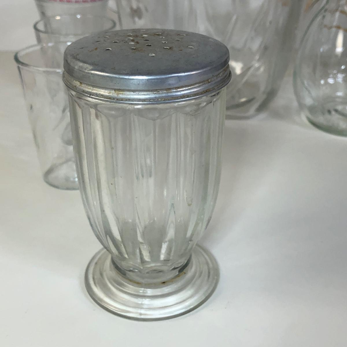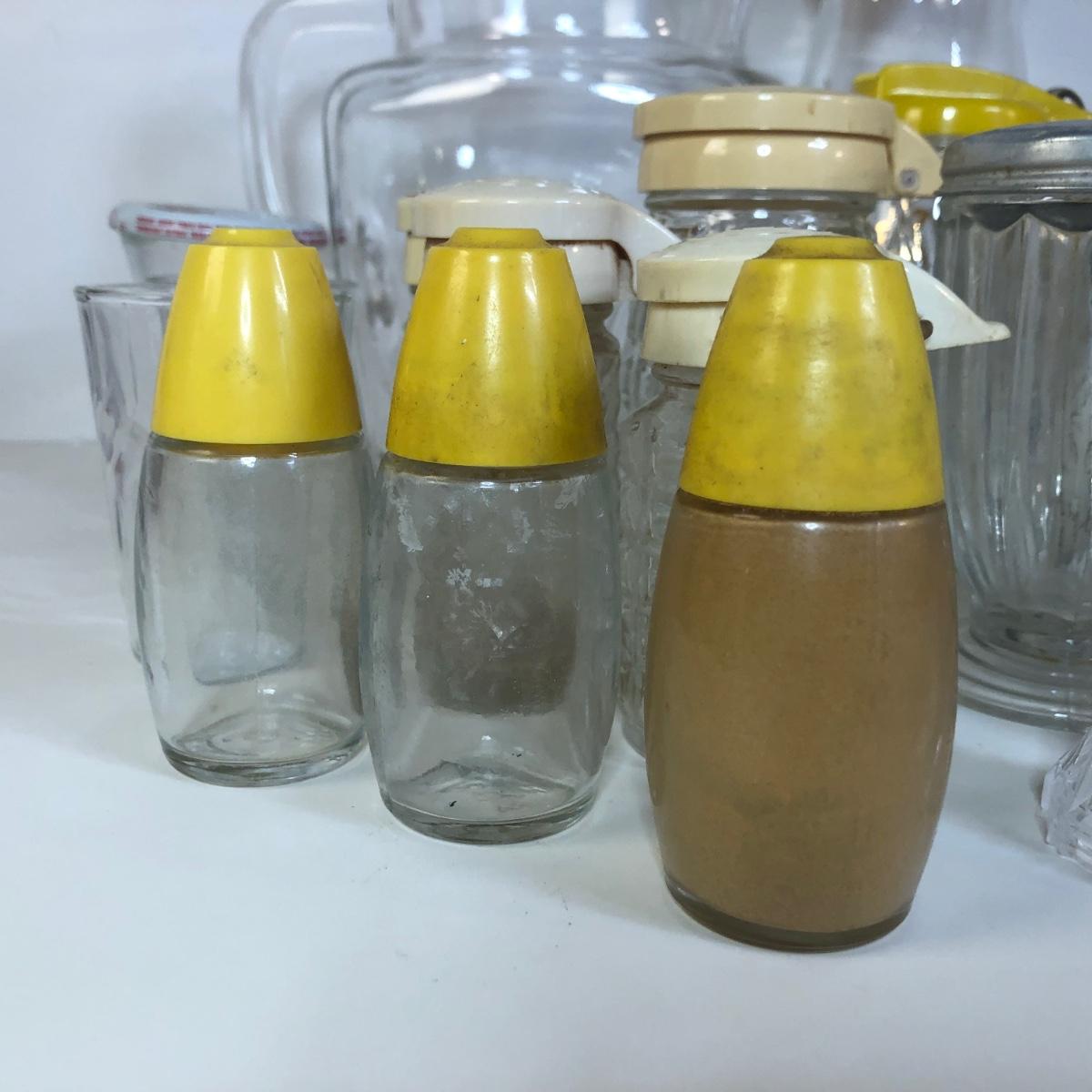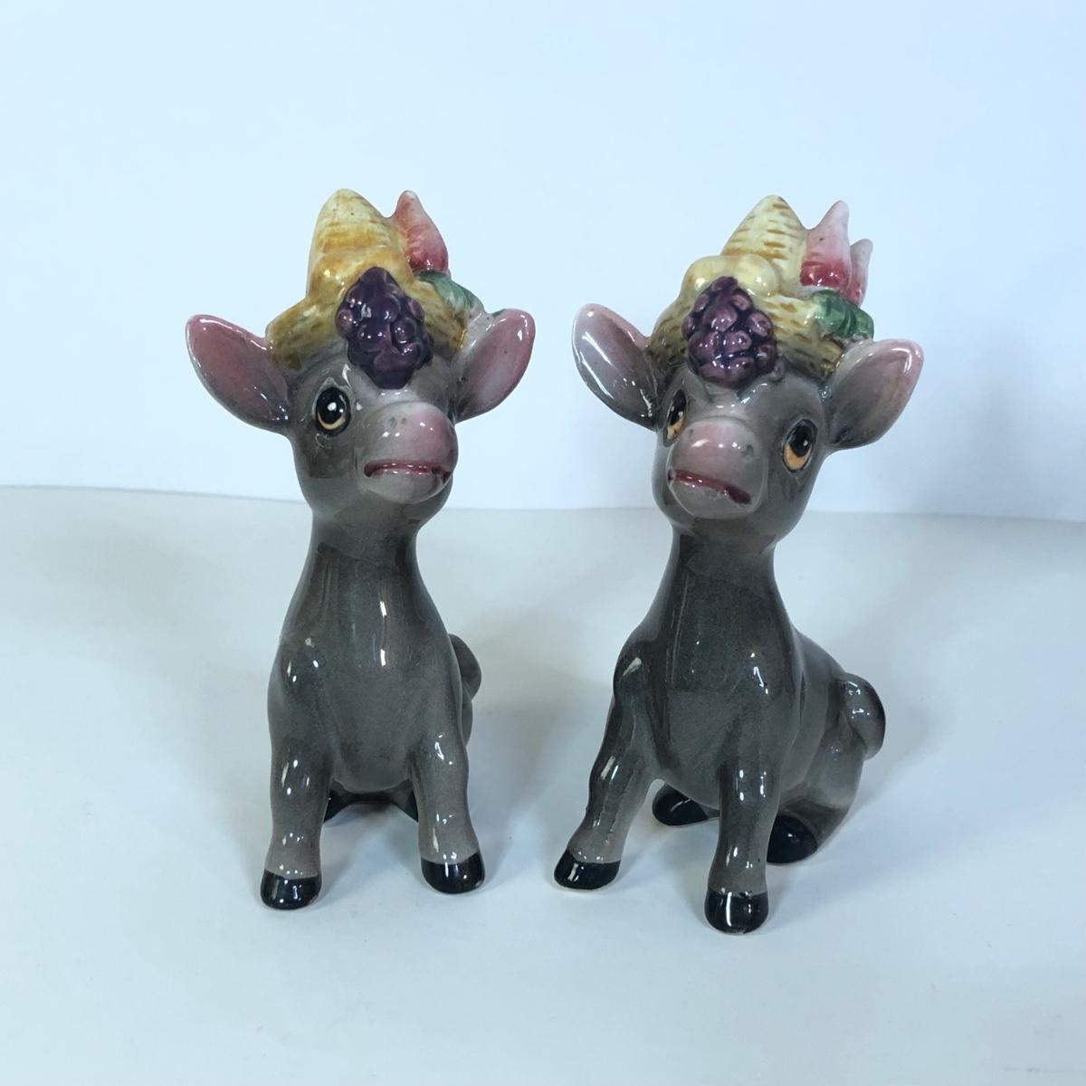 LOT 118M: Vintage Floral Pyrex Pitcher, Glass Juice Pitcher, Disney World Souvenir S&P Shakers, Donkey S&P Shakers & More