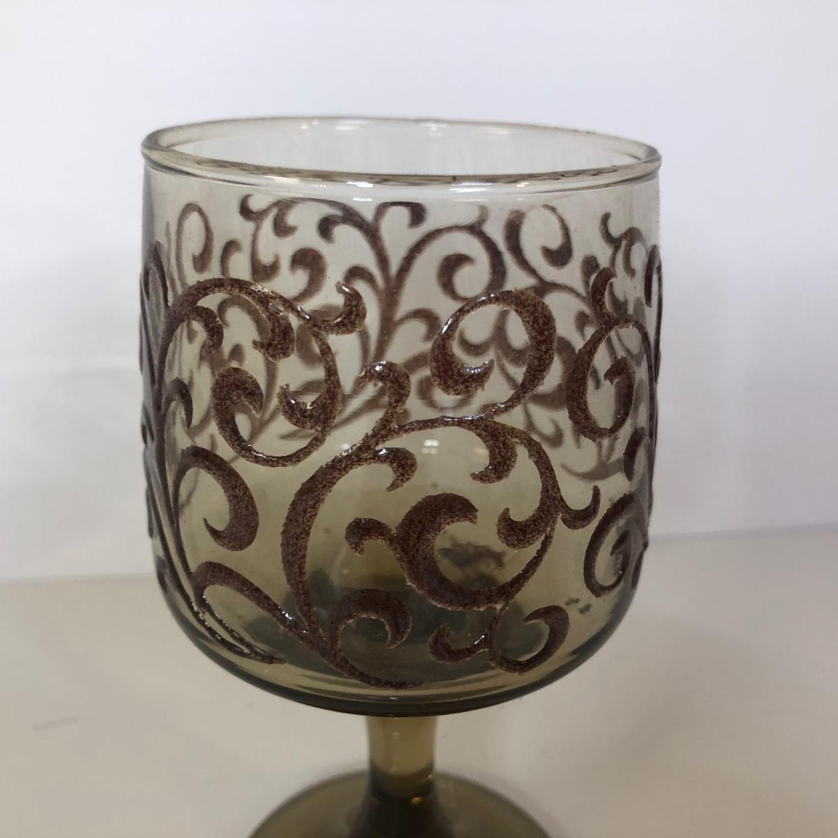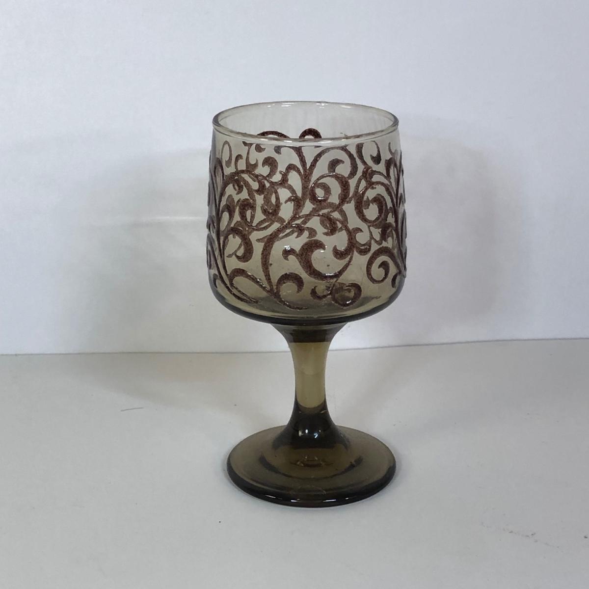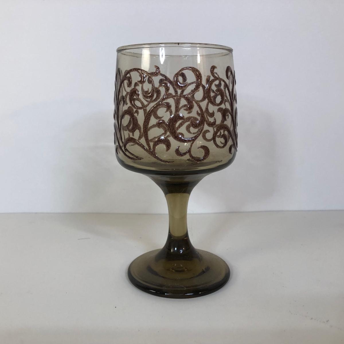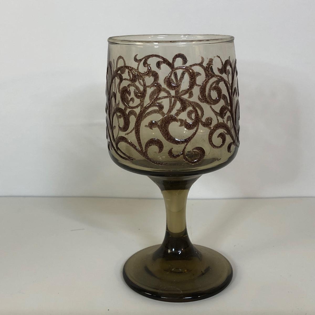 LOT 121M: 1970s Libbey Prado Raised Scroll Smoky Stemmed Glasses & Sebring China Platters