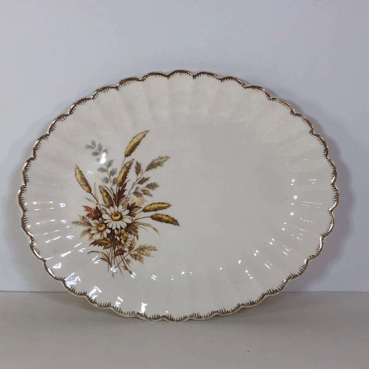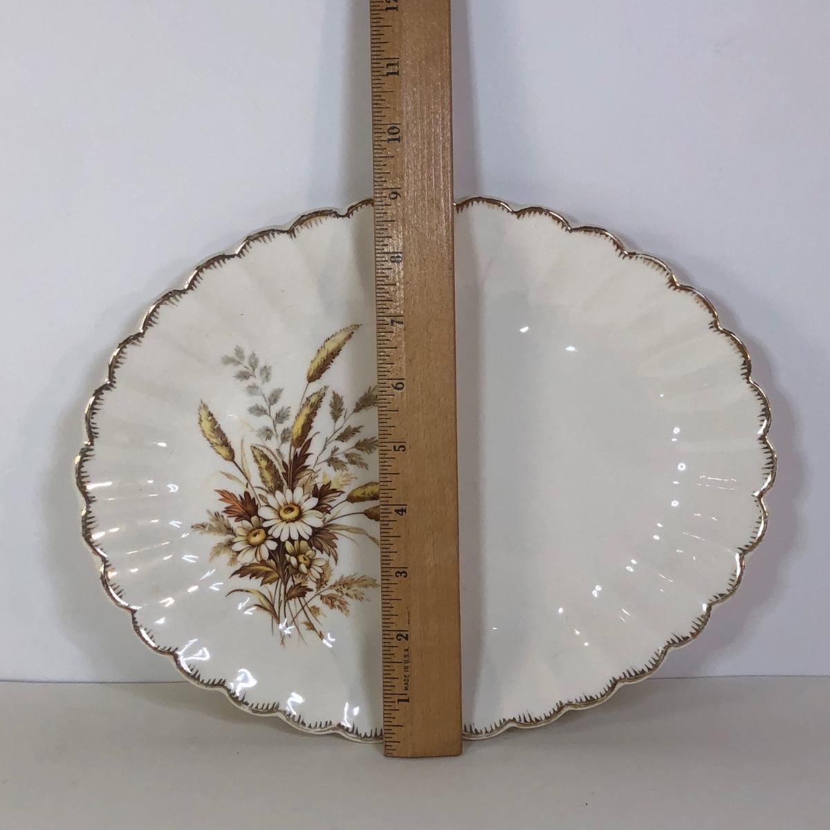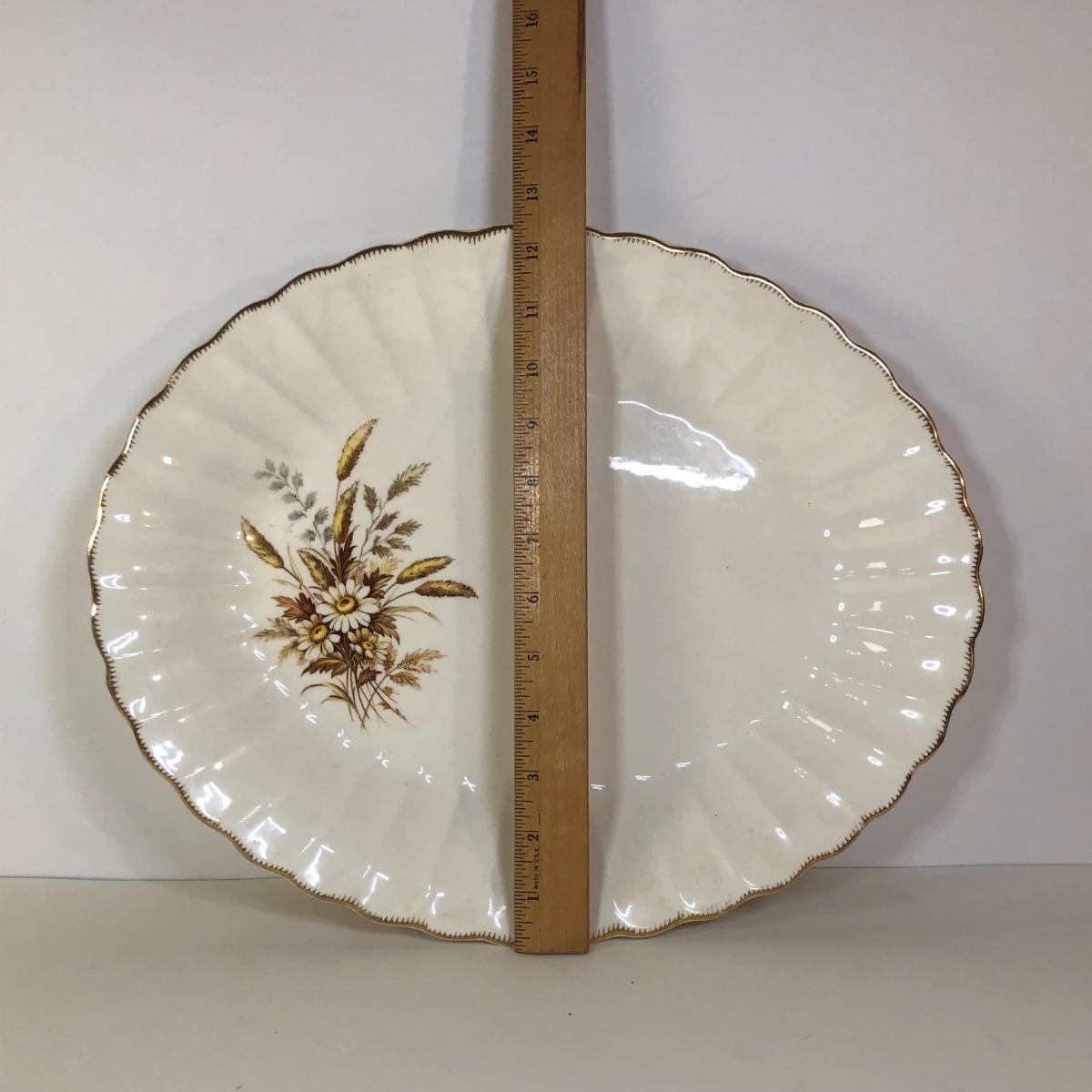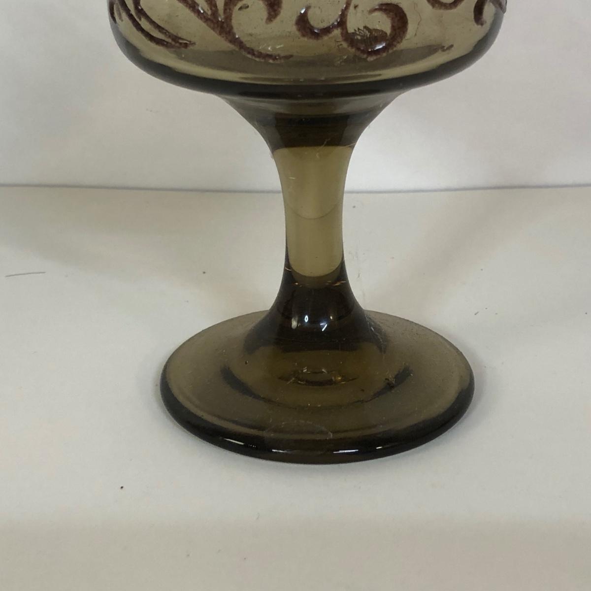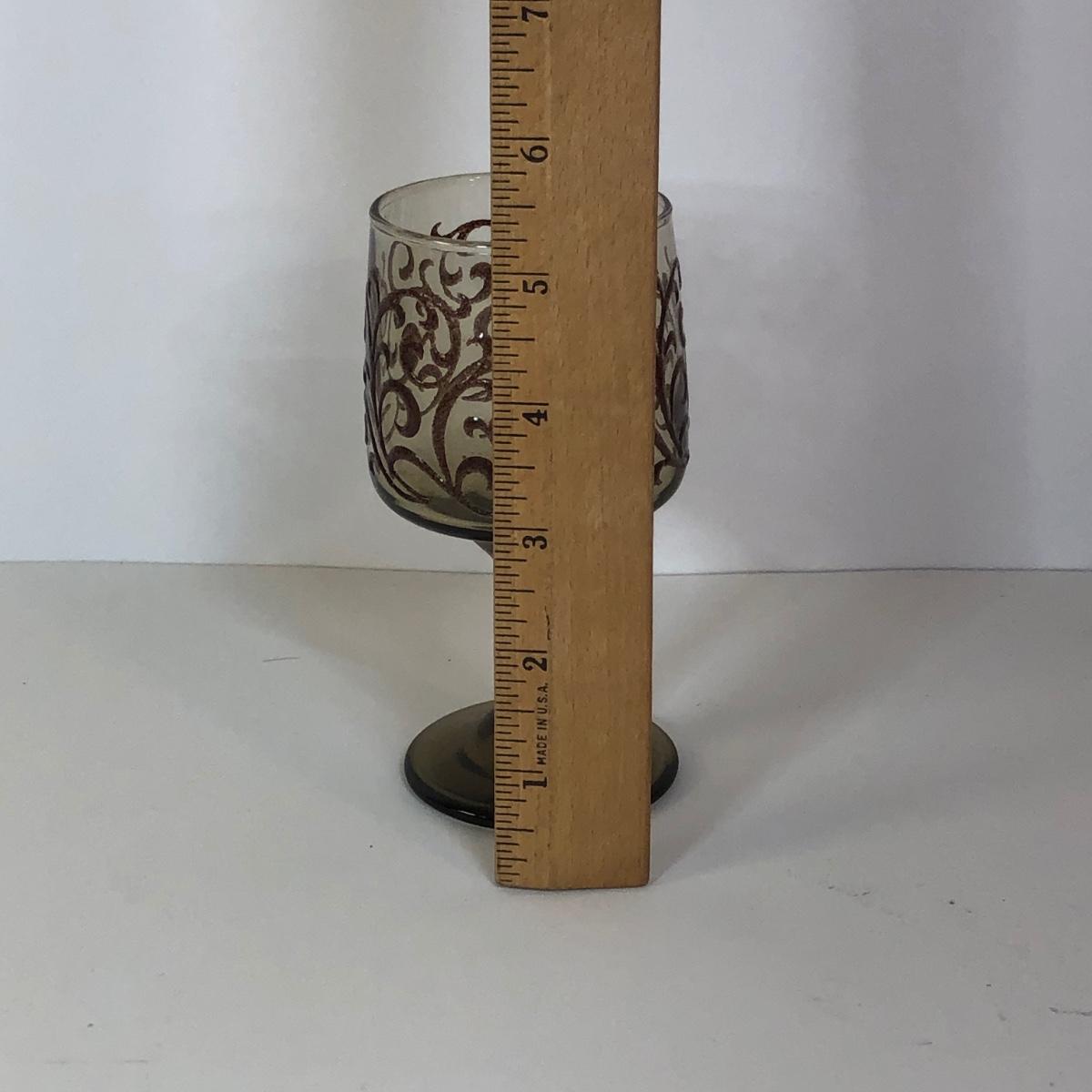 LOT 121M: 1970s Libbey Prado Raised Scroll Smoky Stemmed Glasses & Sebring China Platters
