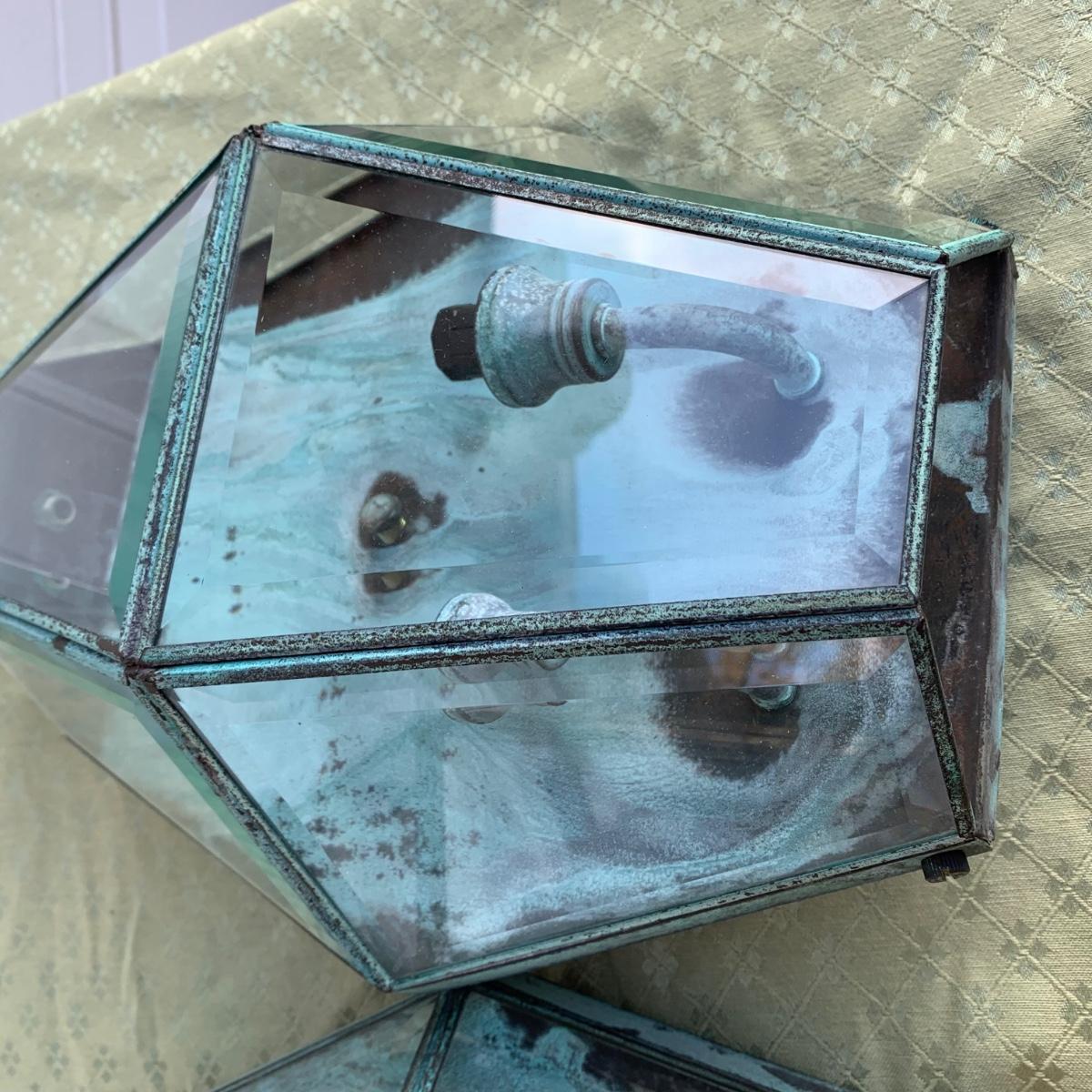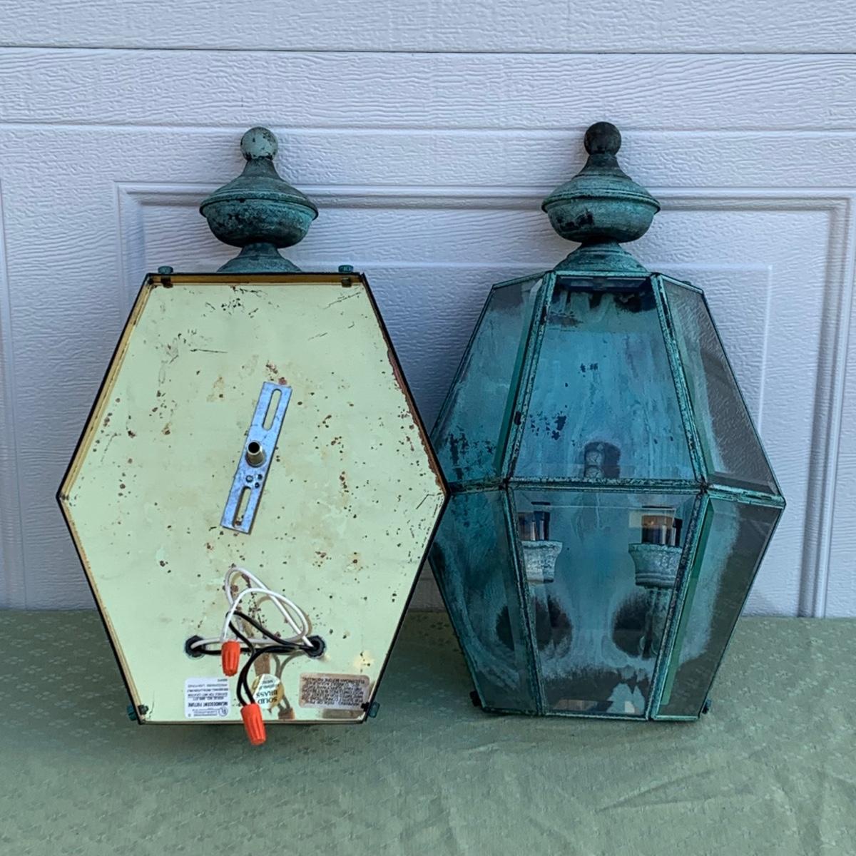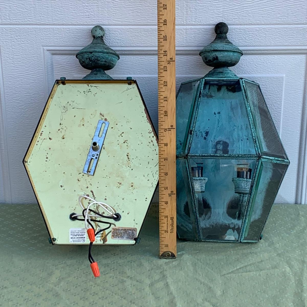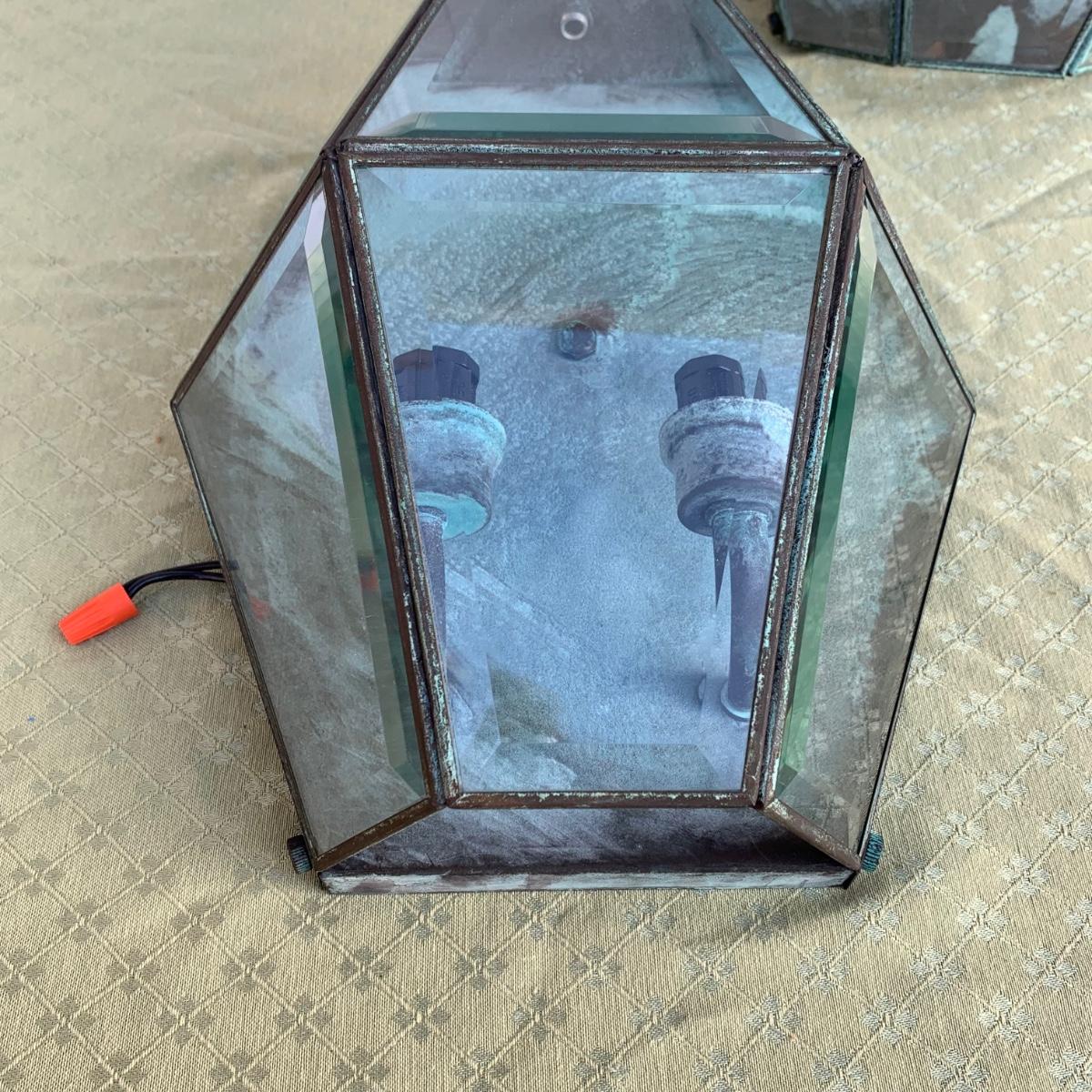 LOT 139R: Brass Wall Mount Outdoor Porch Lanterns w/Beveled Glass