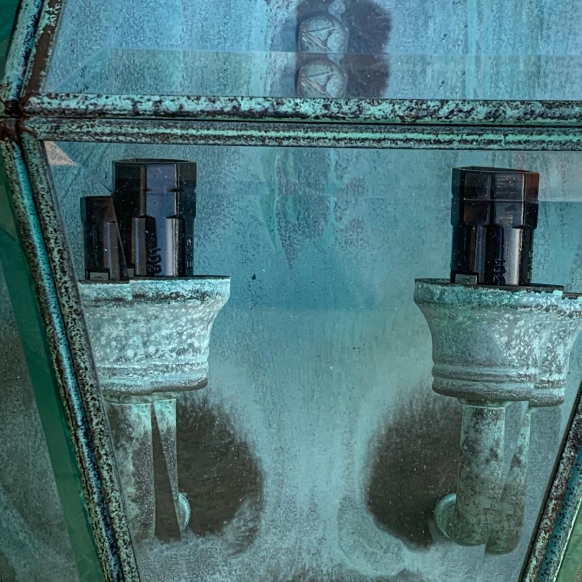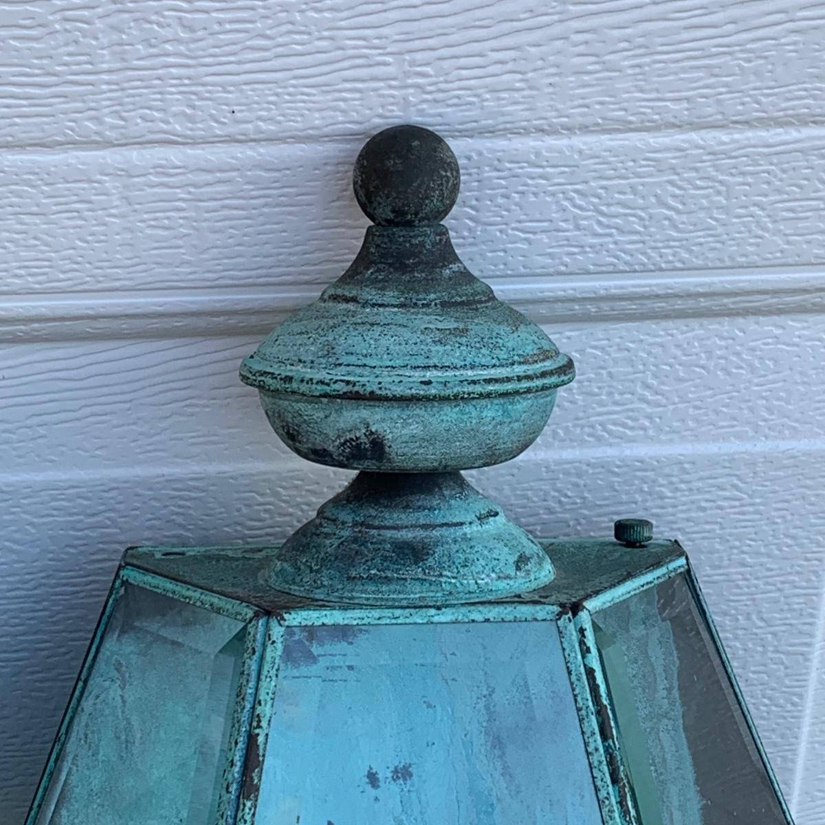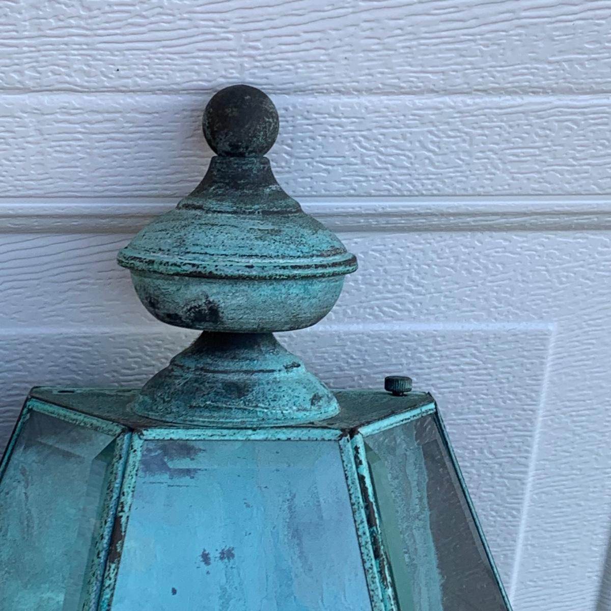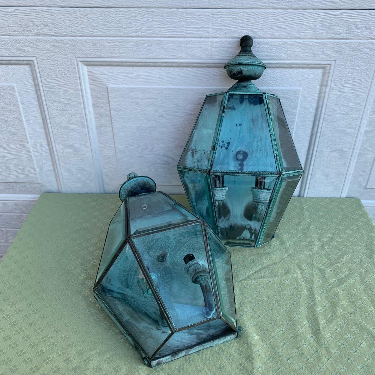 LOT 139R: Brass Wall Mount Outdoor Porch Lanterns w/Beveled Glass