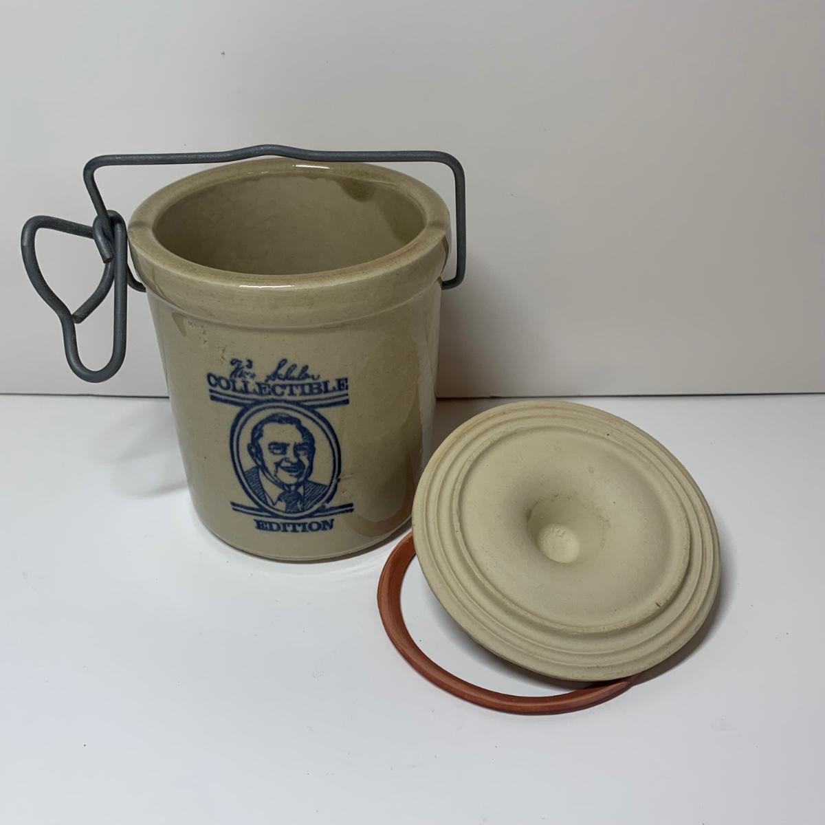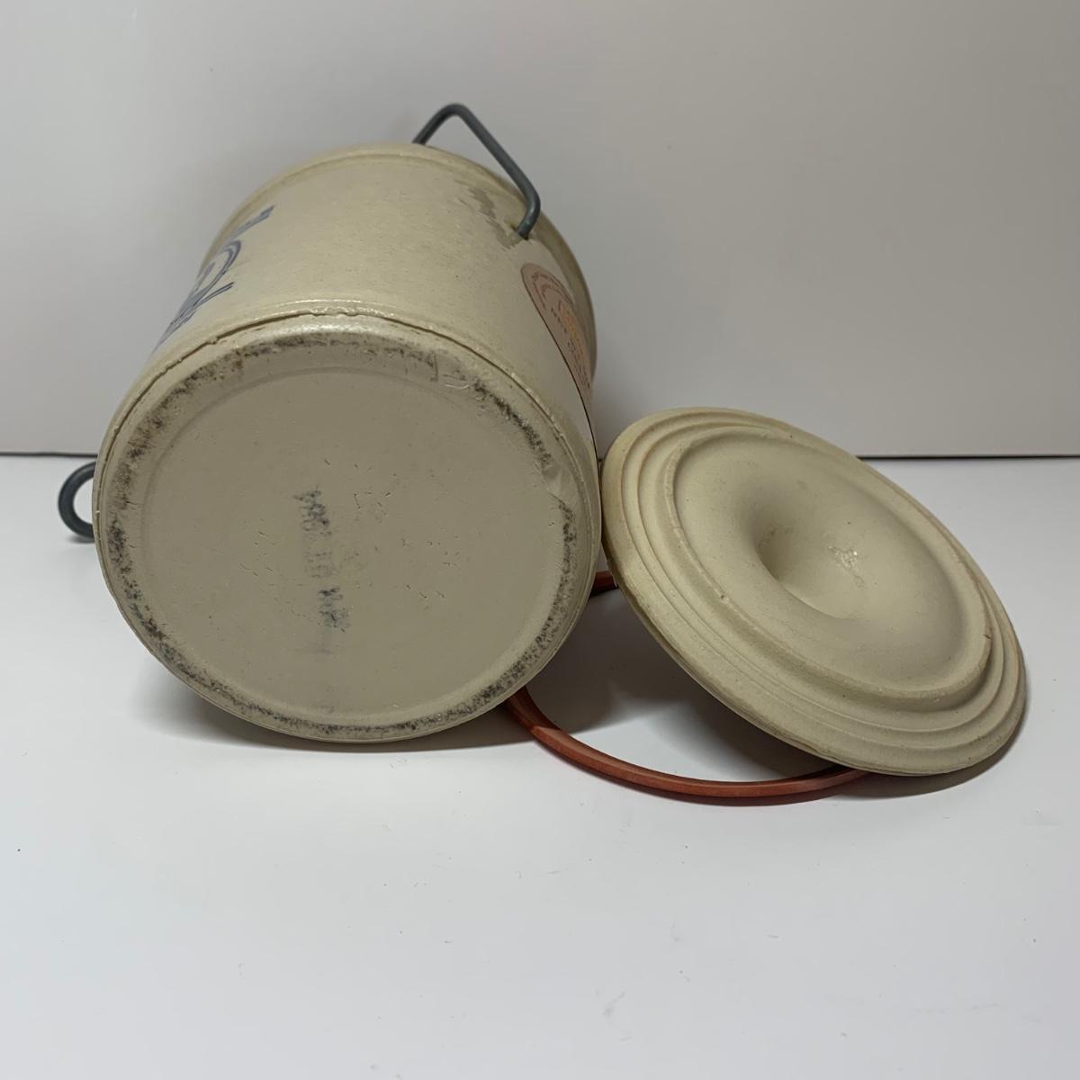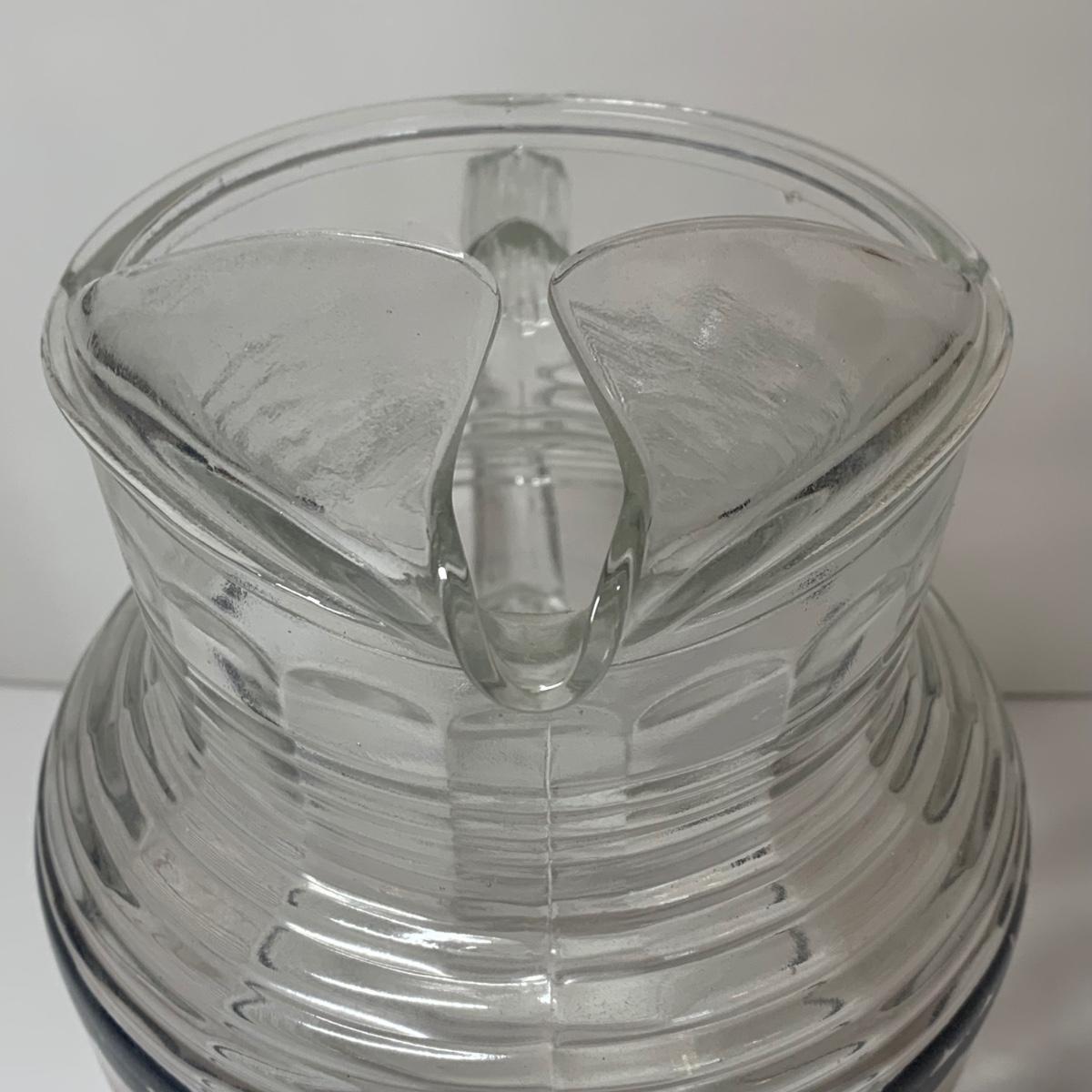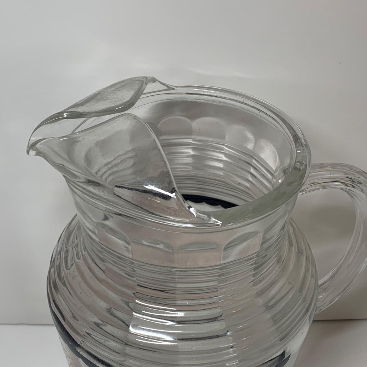 LOT 143R: Vintage Mid-Century Nasco Aluminum Nesting Canisters, Vintage Beverage Glasses, Hand Painted Teabag Holder, Vintage Hazel Atlas Atomic Pitcher, Pyrex Blue Refrigerator Dish