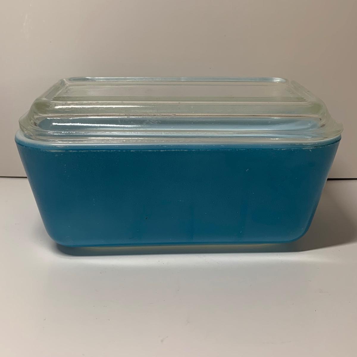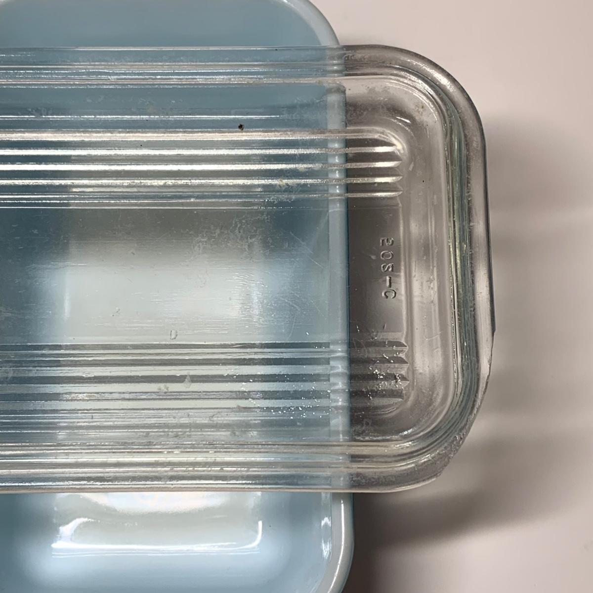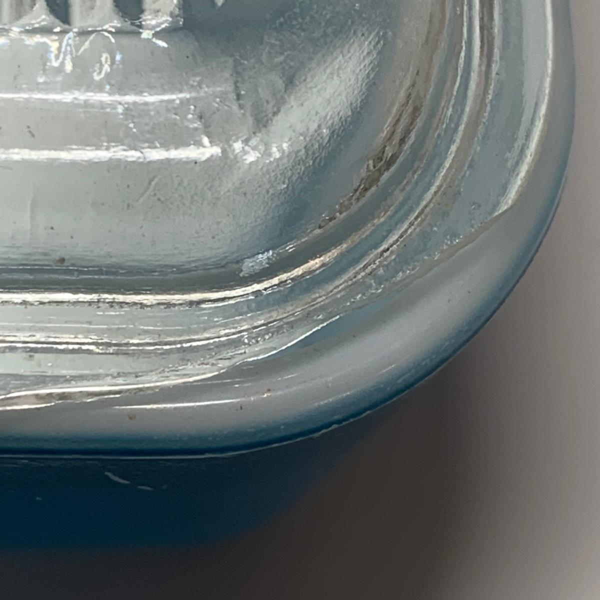 Unfortunately, the lid of the Pyrex refrigerator dish is chipped.