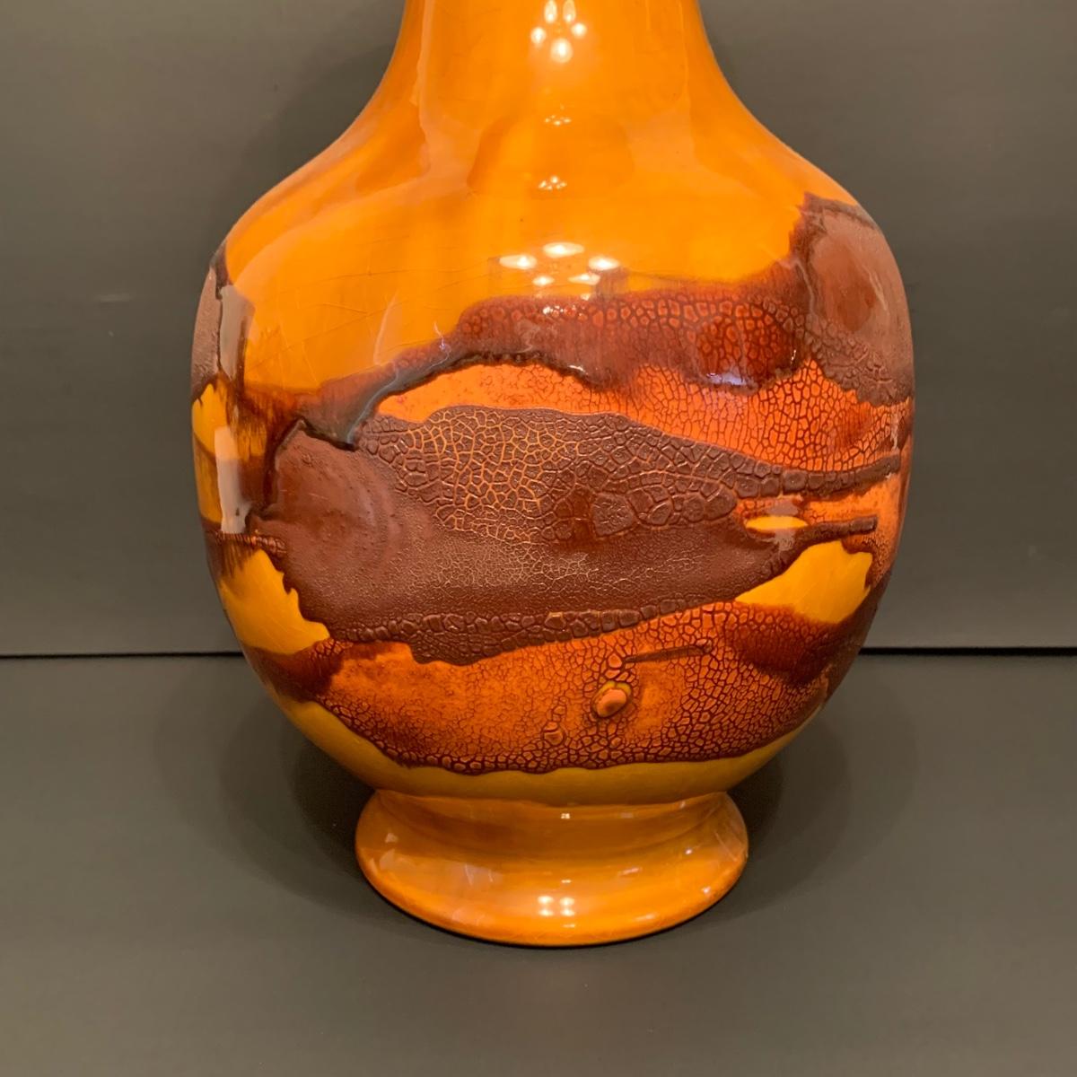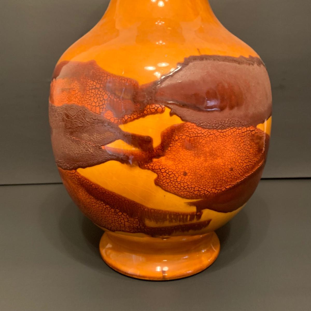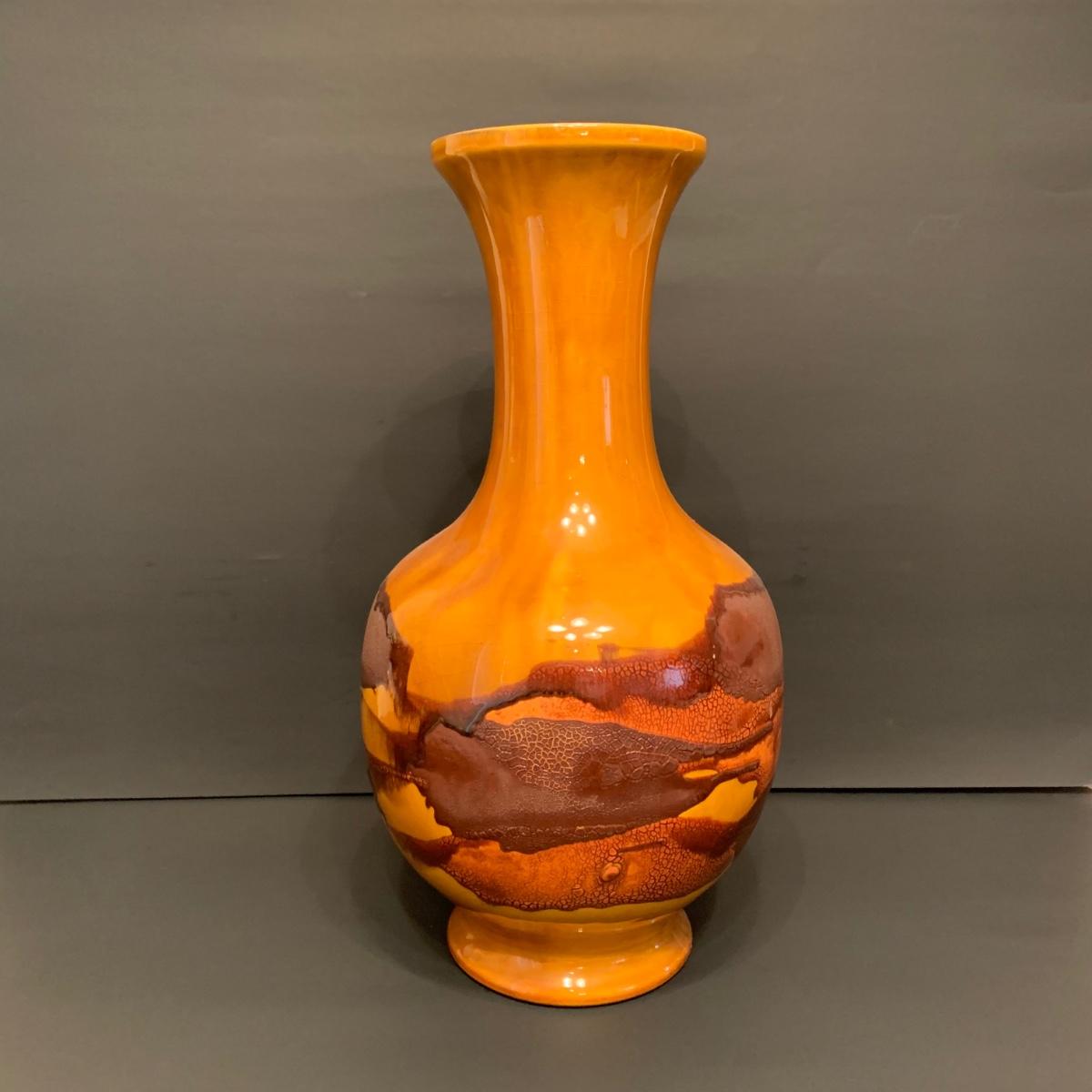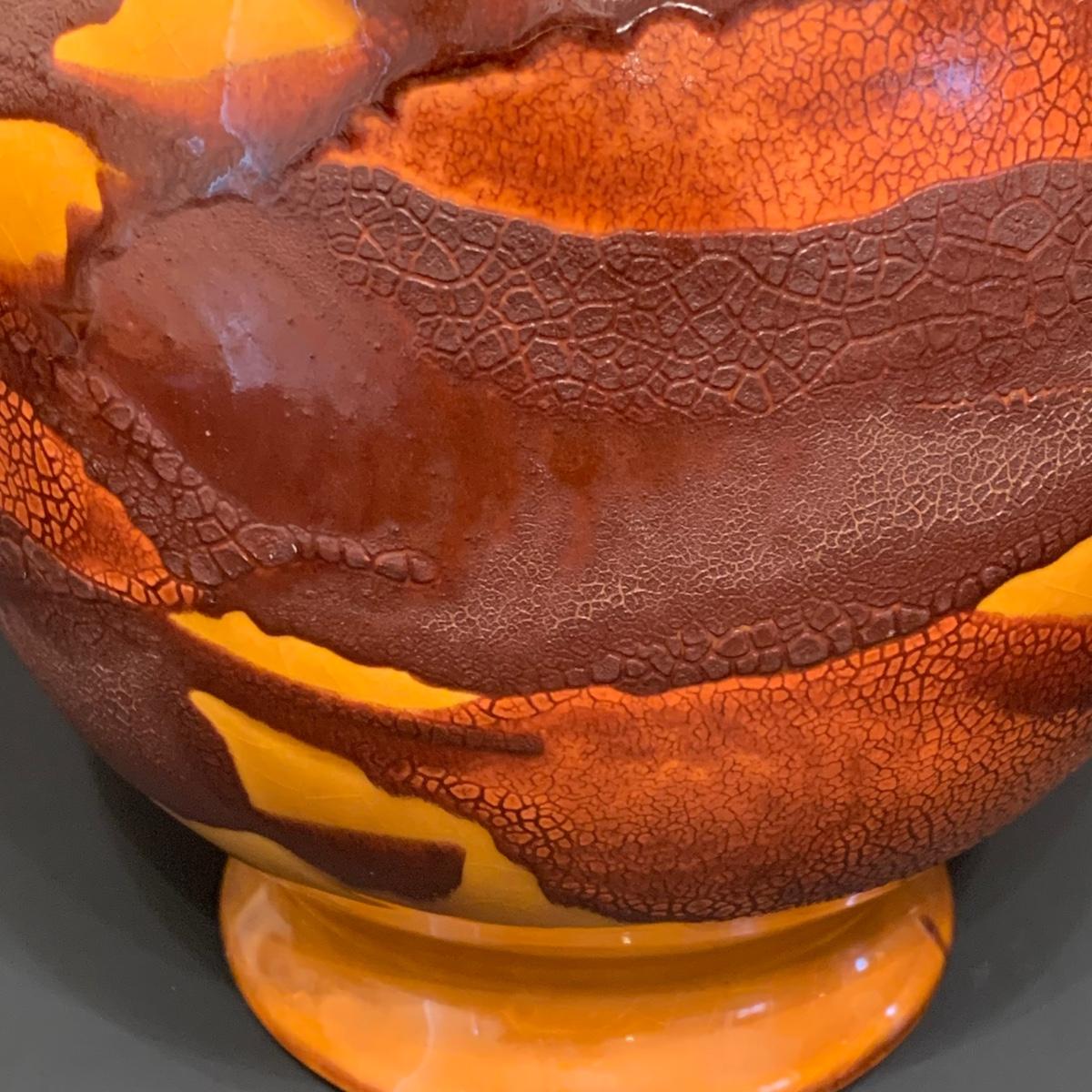 LOT 146R: Vintage MCM Earth Wrap Pottery Vase Crackle Earth Tones