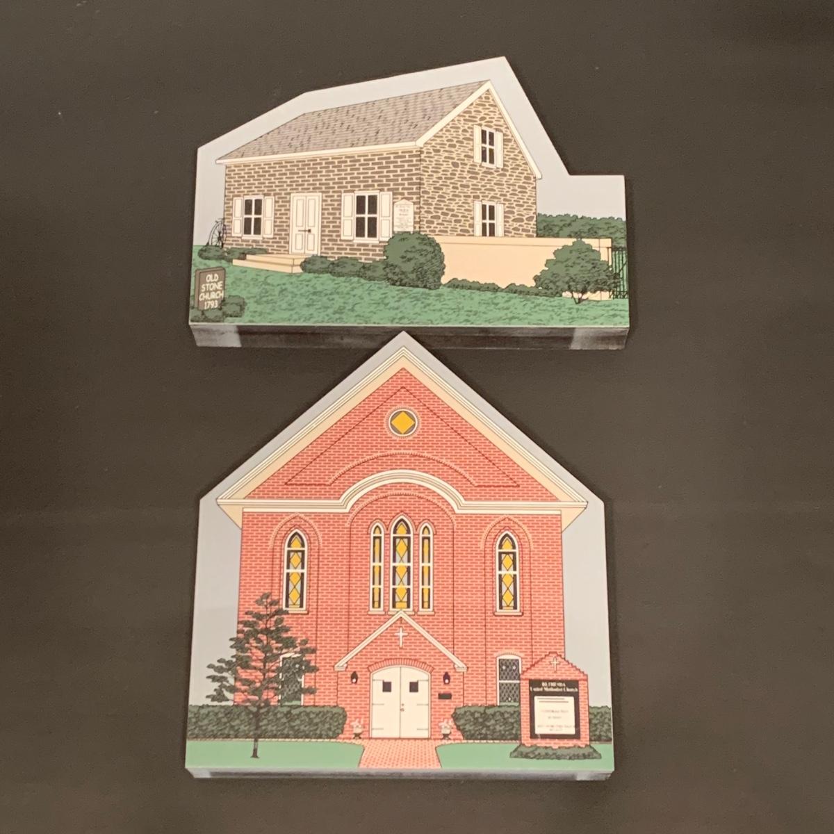 LOT 147R: Vintage Friends Meeting House Greenwich, NJ Decorative Plate, Brass Candlesticks, Hometown Collectibles featuring Swedesboro & The Cat's Meow featuring Sea Isle City