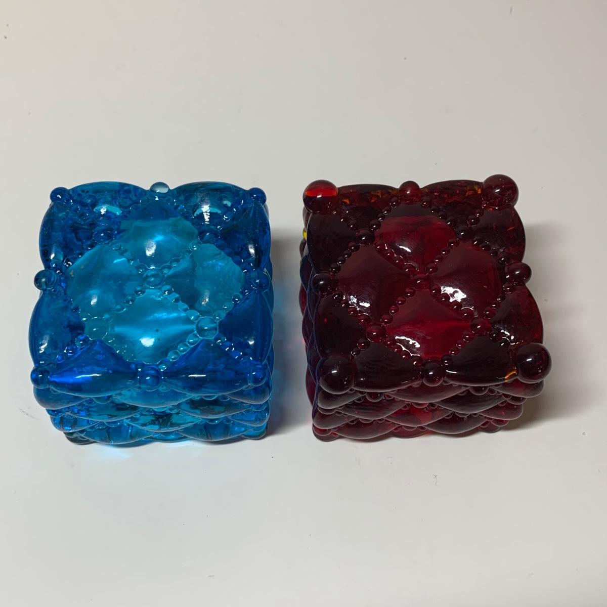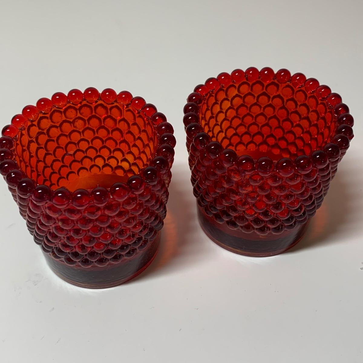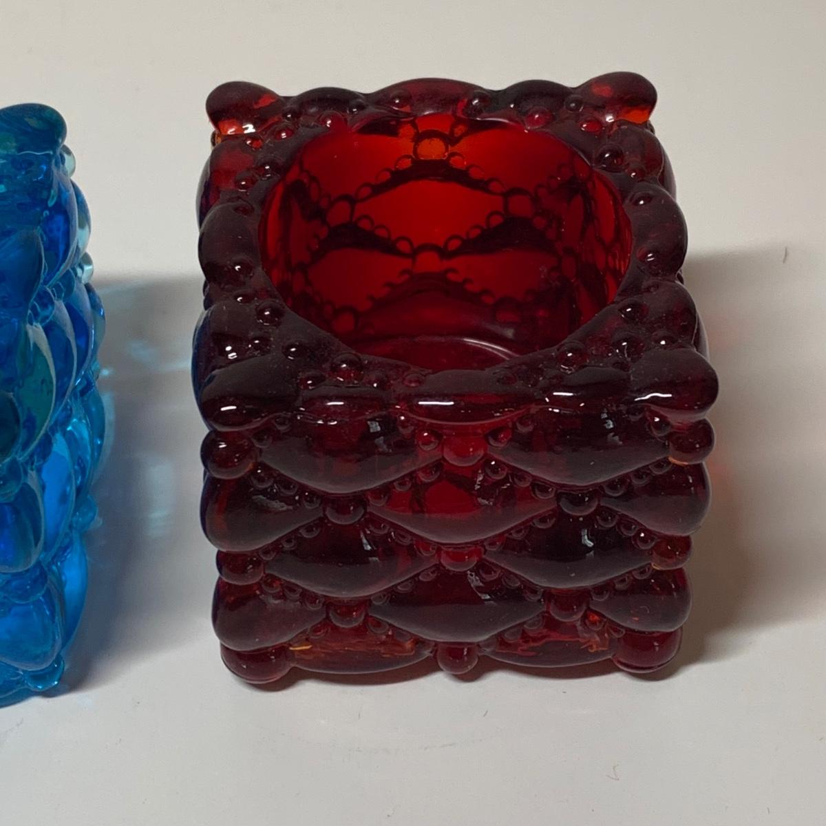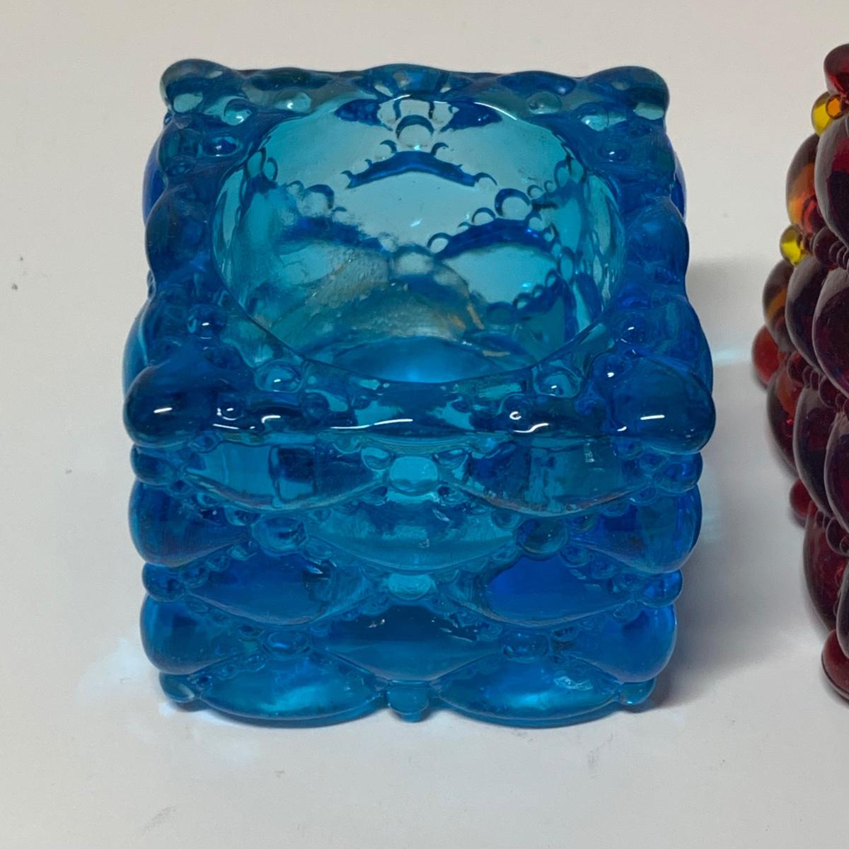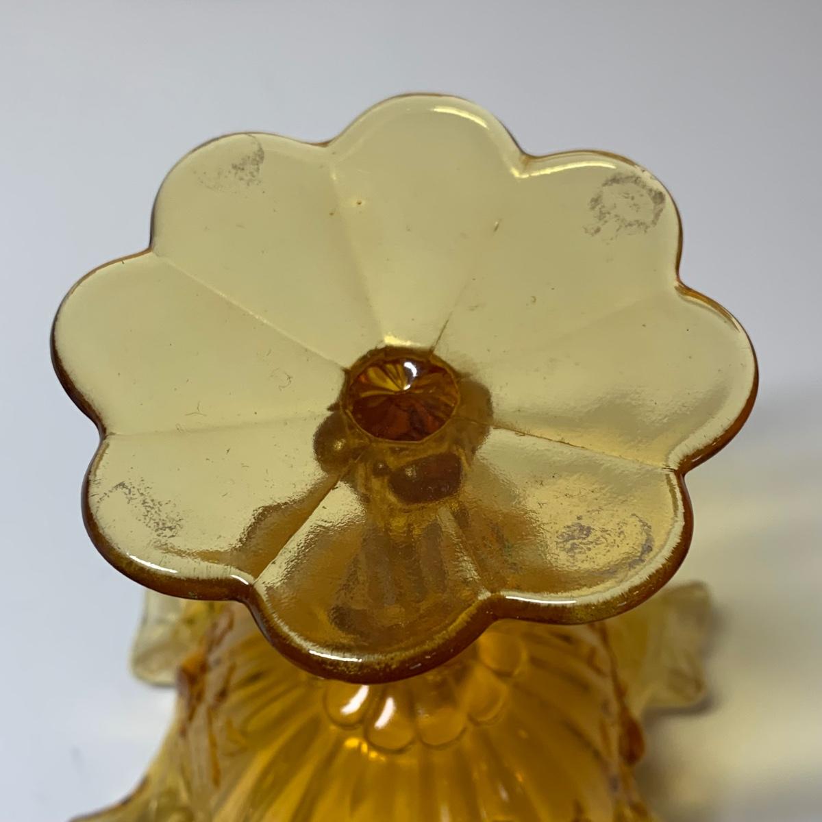 LOT 153R: Fenton Amber Ruffle Top Compote, Fenton Colonial Blue Hobnail Candle Holder & More