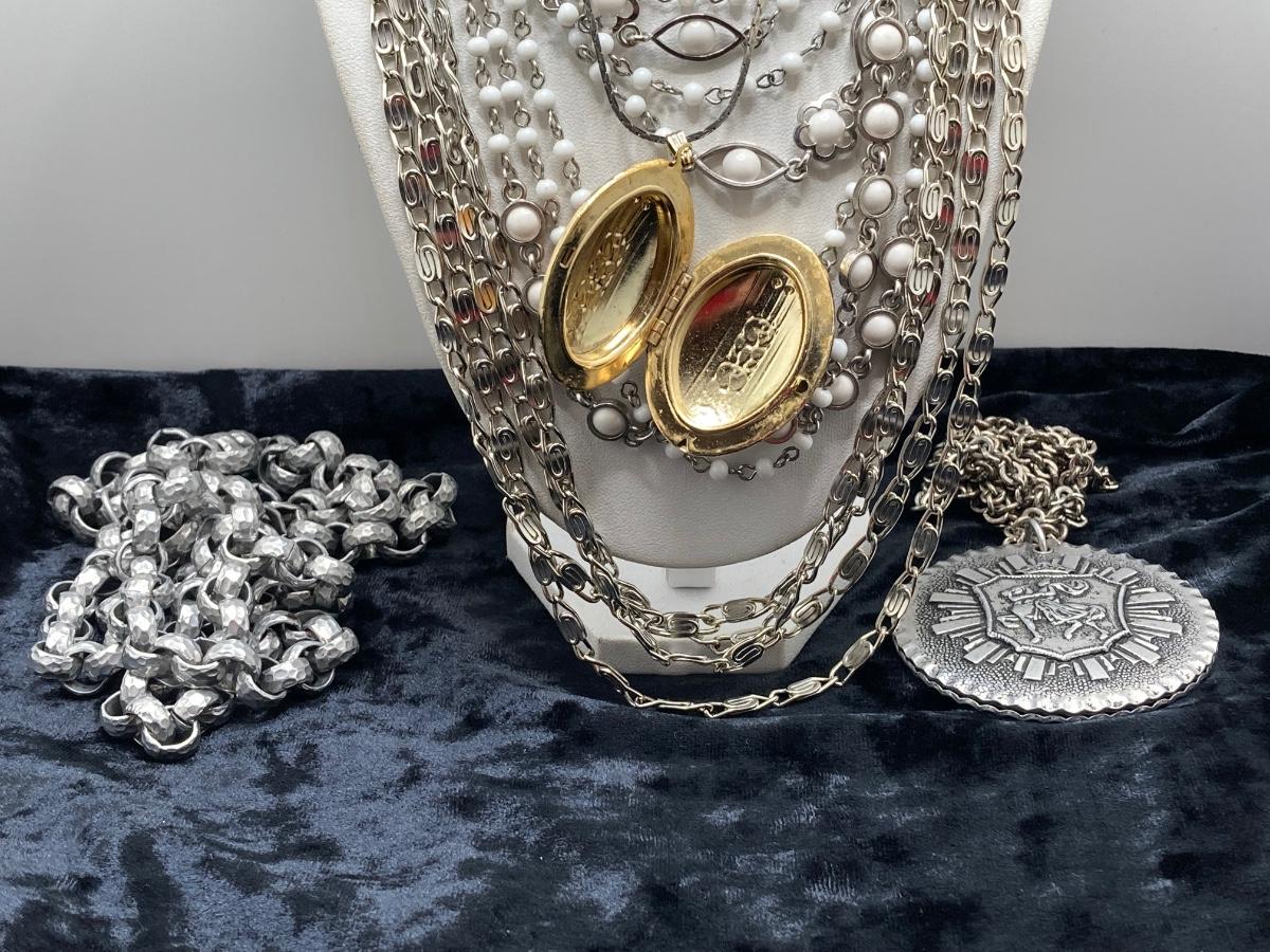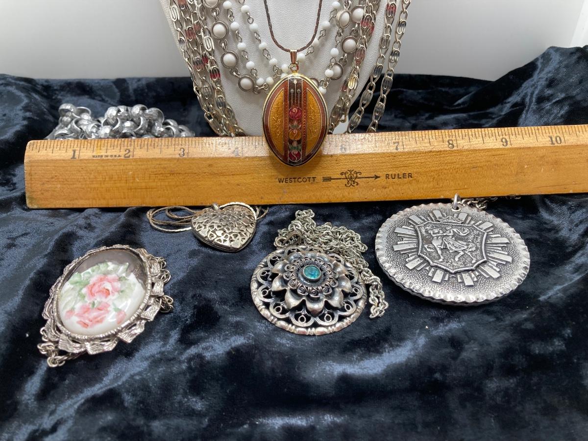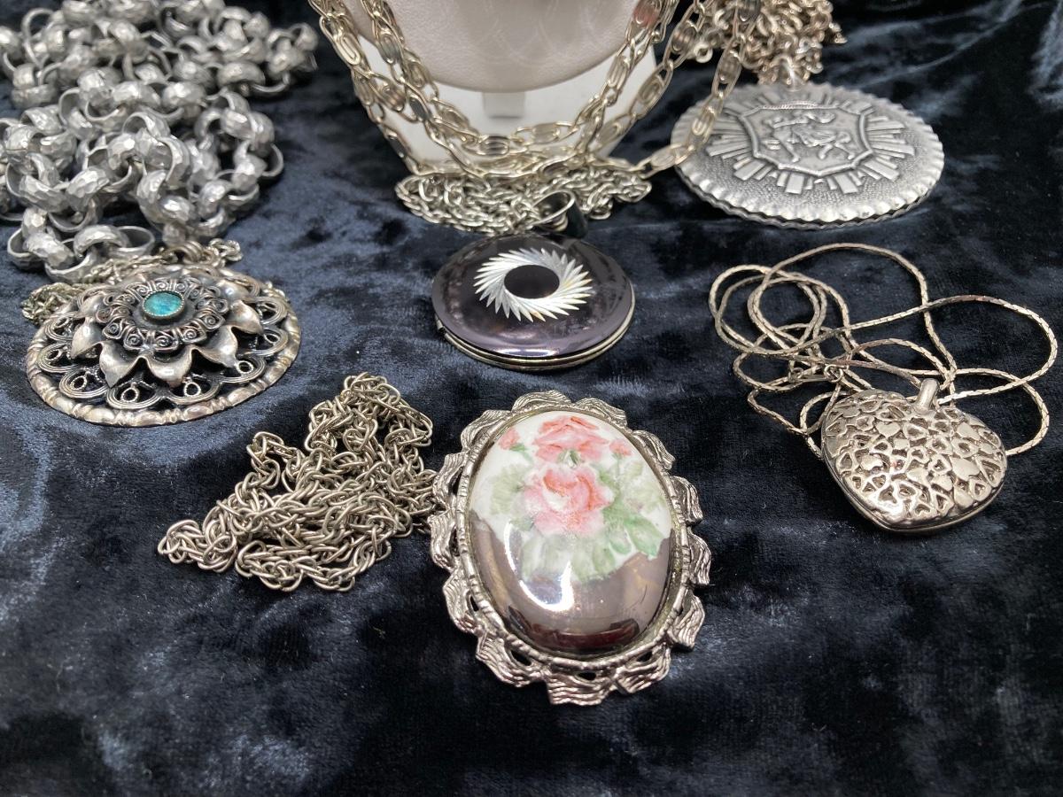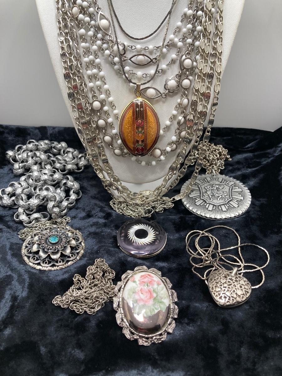 LOT 191J: Large Collection of Silver Tone Necklaces - Lockets and More