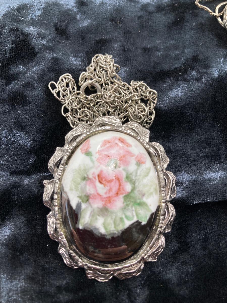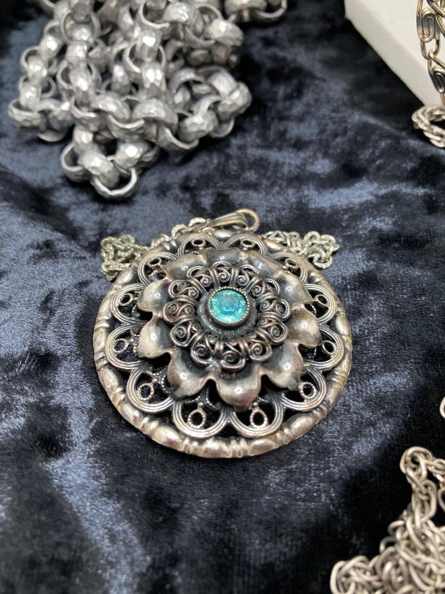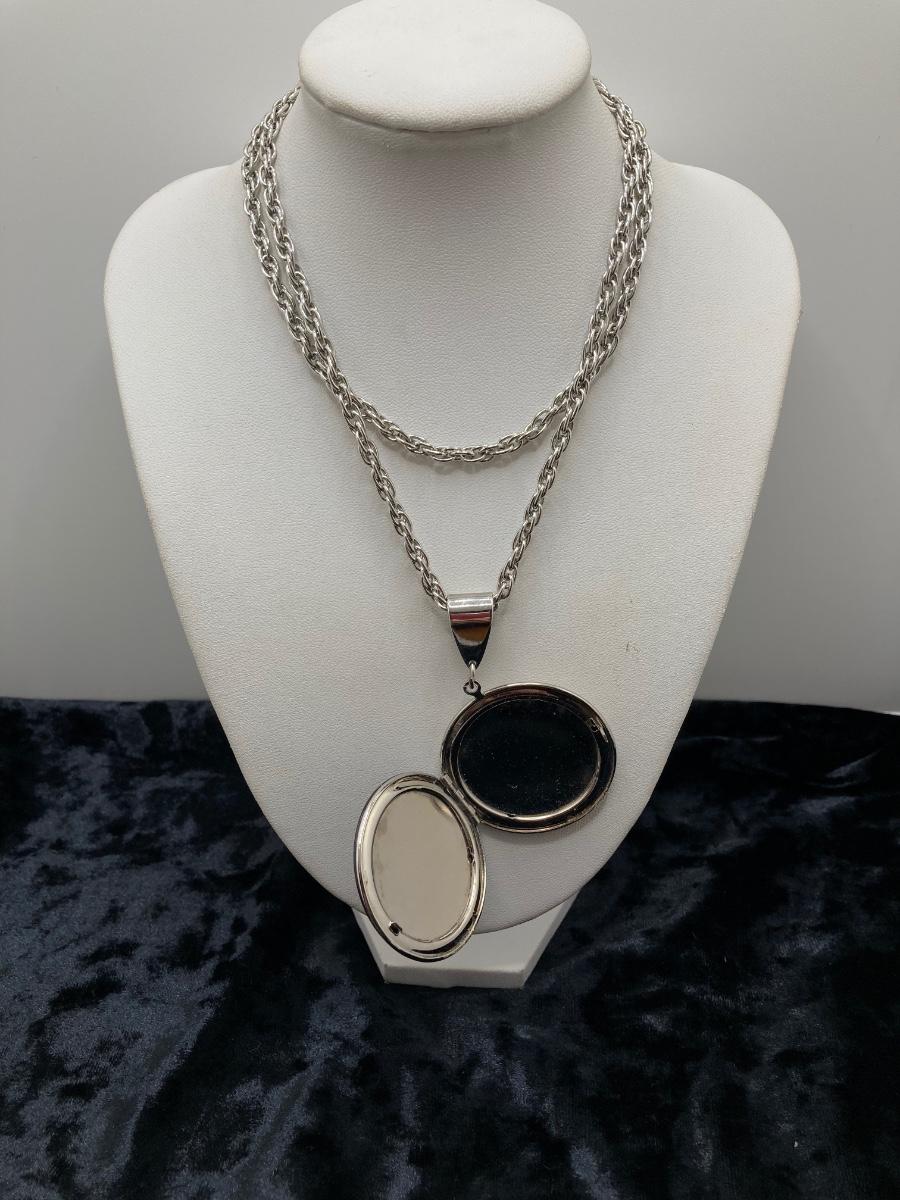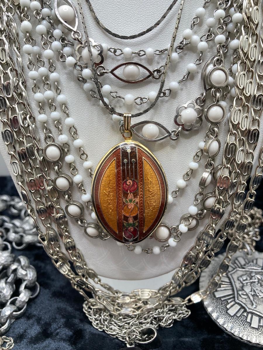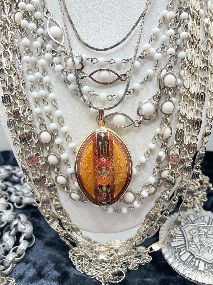 LOT 191J: Large Collection of Silver Tone Necklaces - Lockets and More