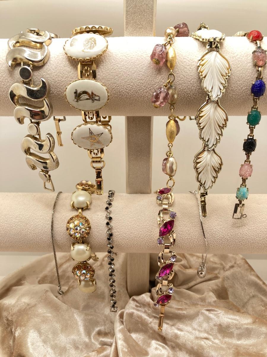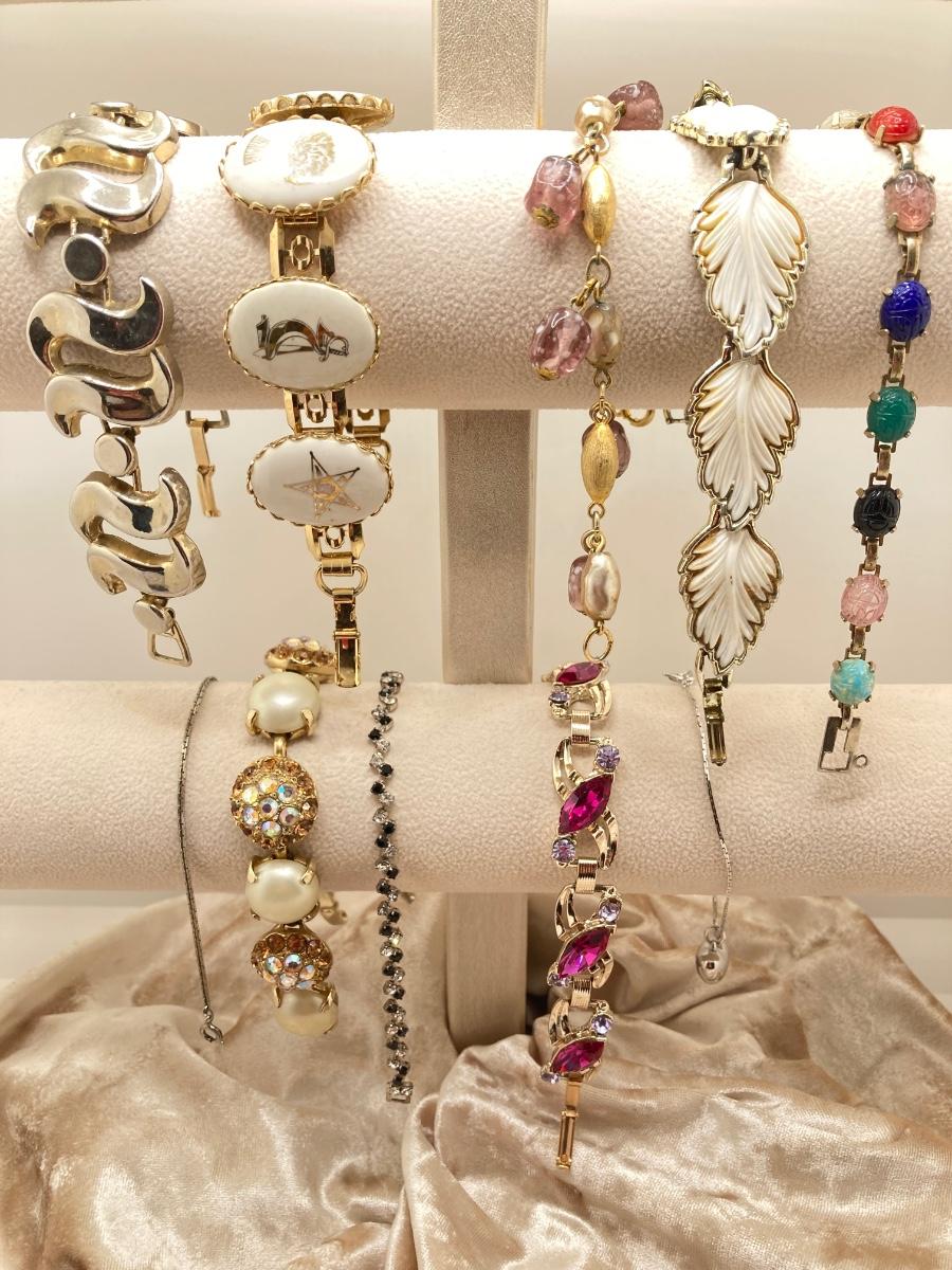 LOT 193J: Vintage Bracelet Collection - Scarab, Faux Pearl / Rhinestone and More