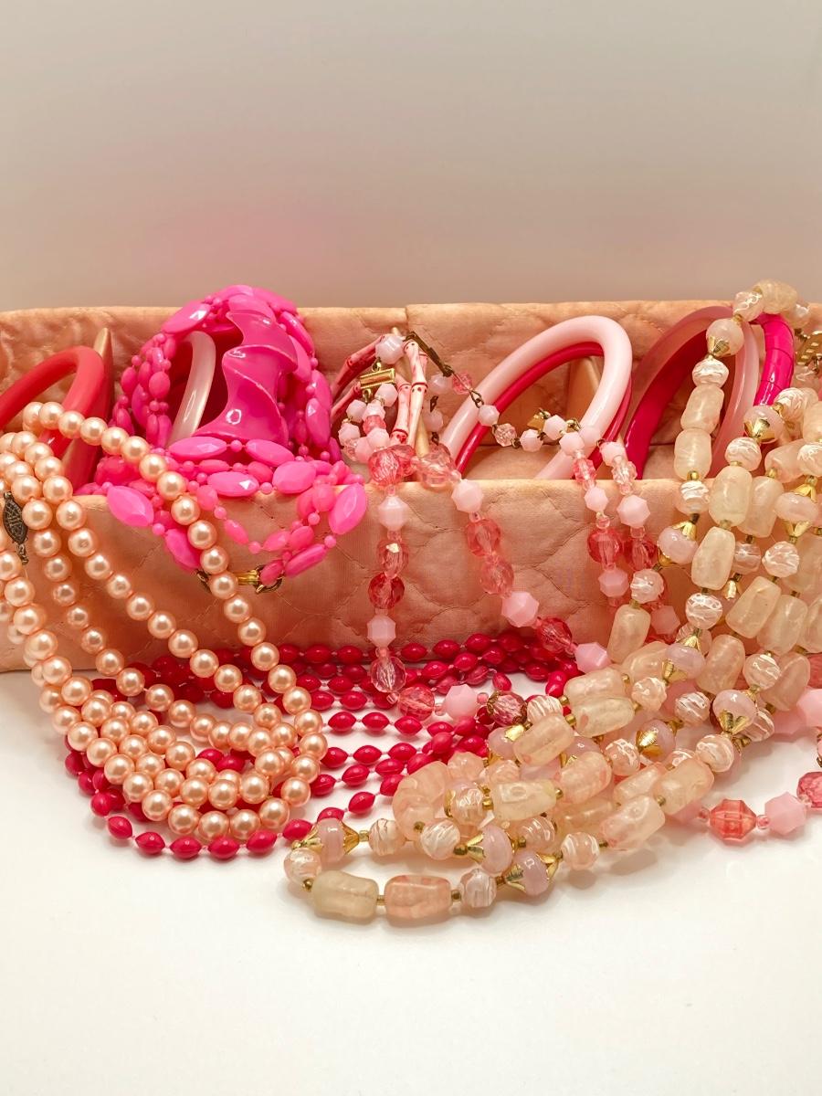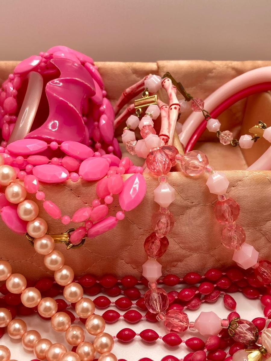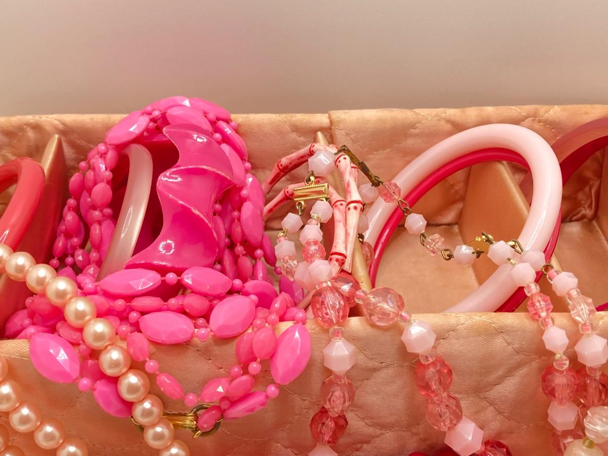 LOT 199J:Large Collection of Pink Costume Jewelry, Hong Kong and more & Vintage Glove Box