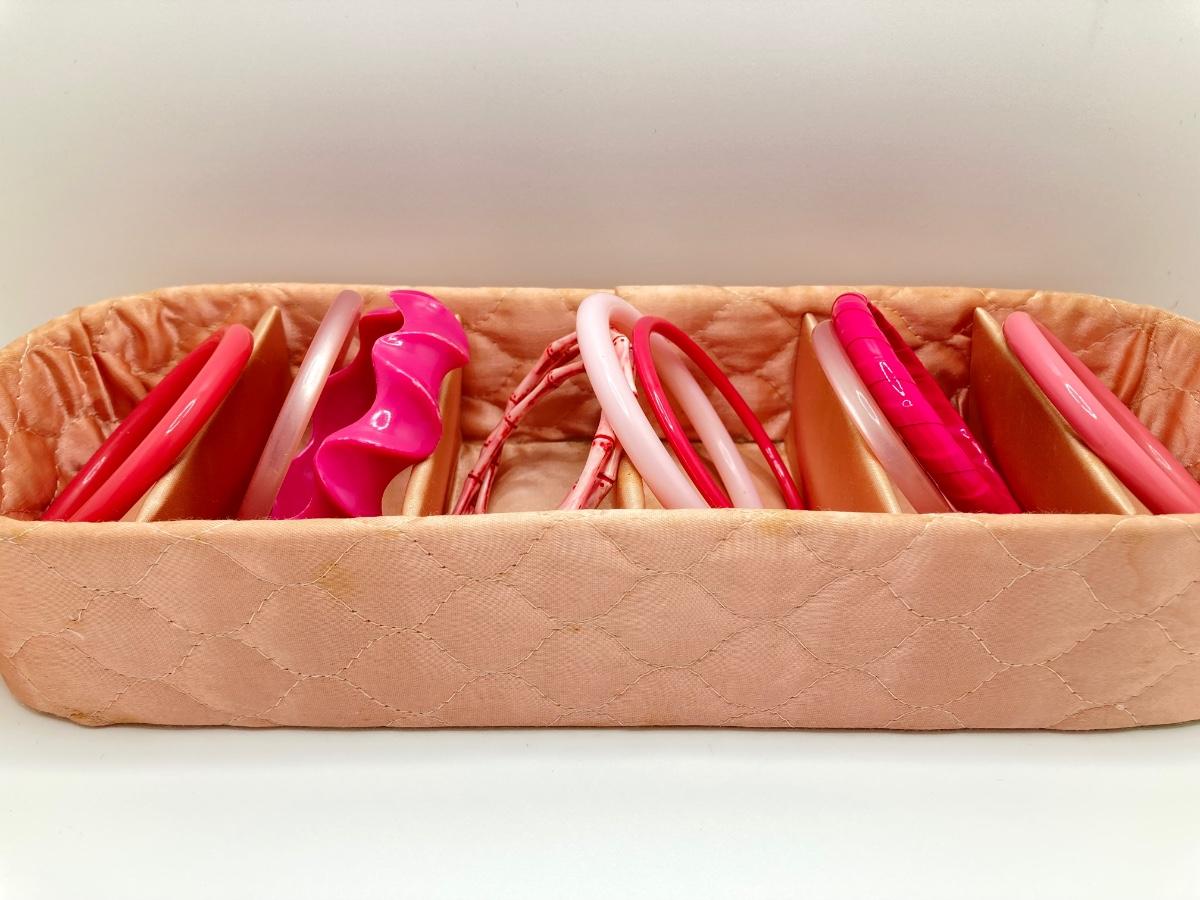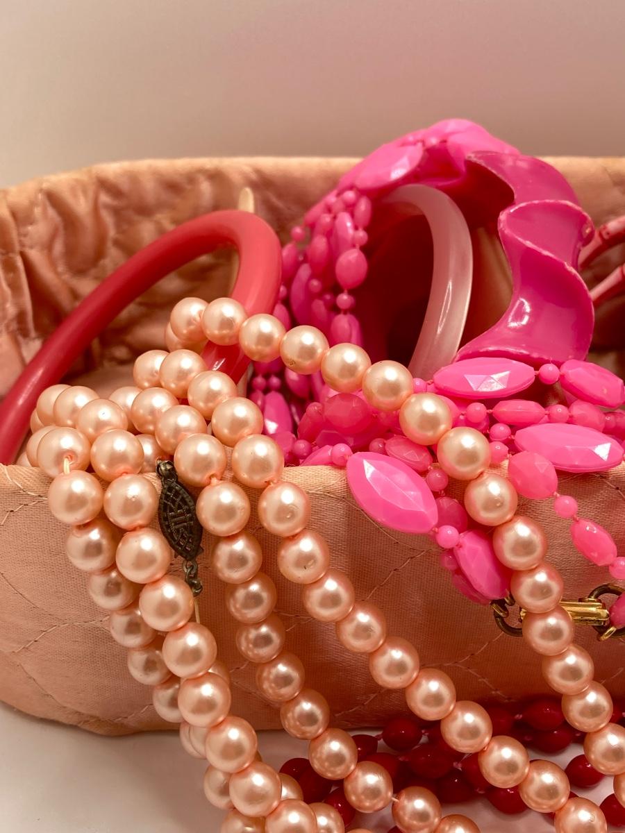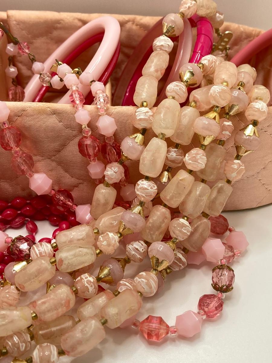 LOT 199J:Large Collection of Pink Costume Jewelry, Hong Kong and more & Vintage Glove Box