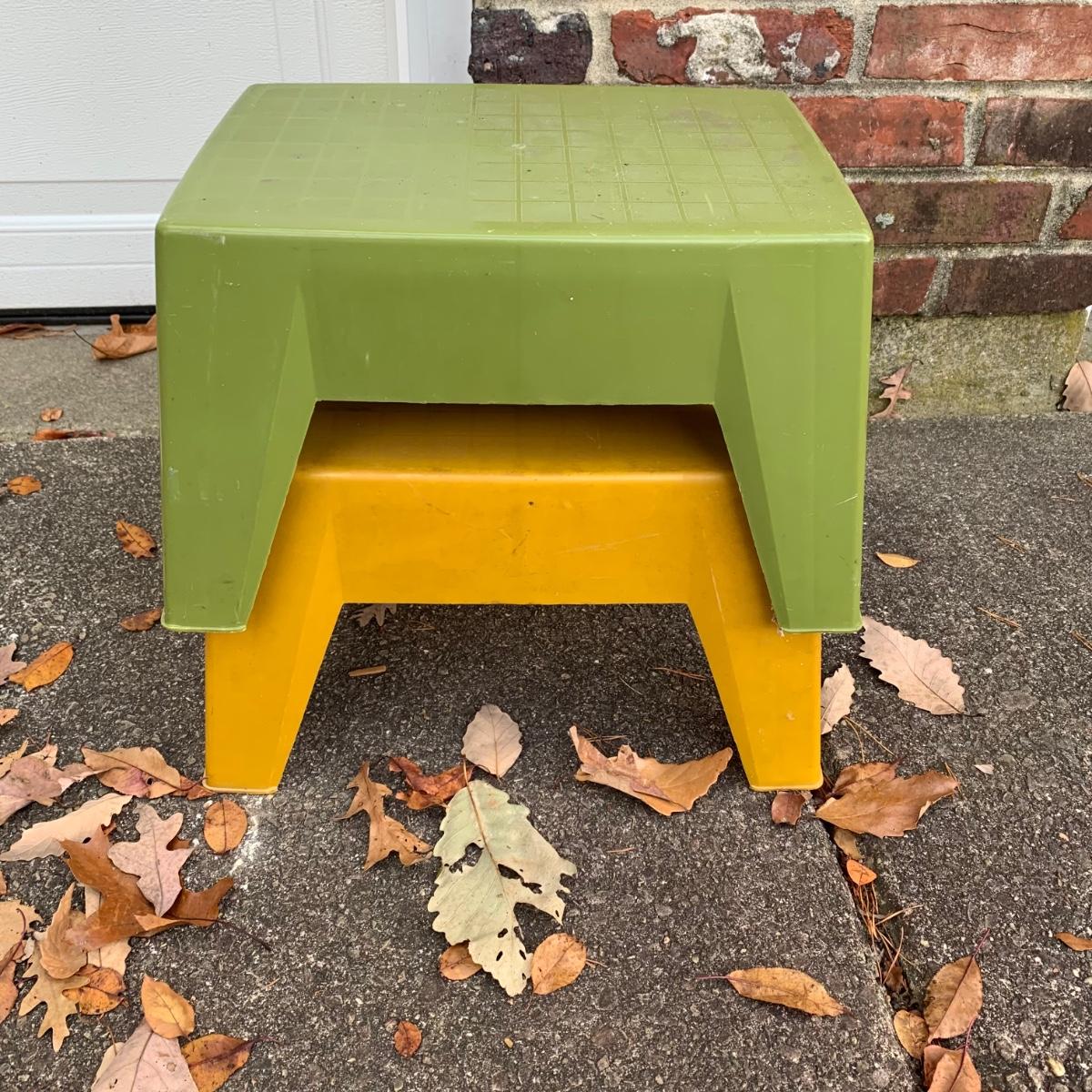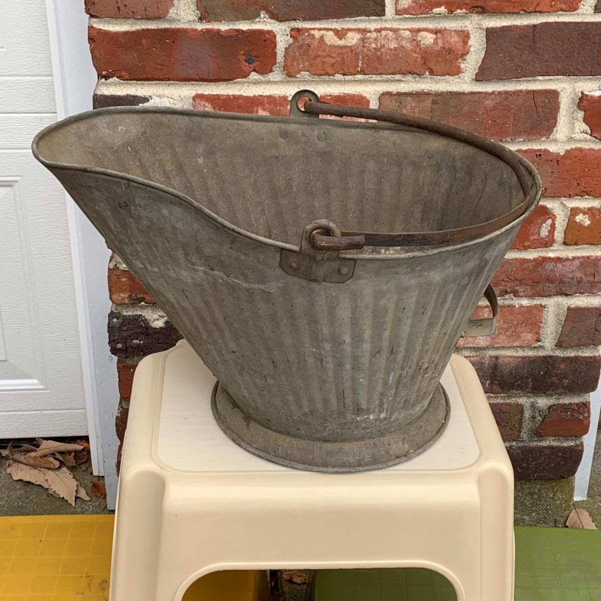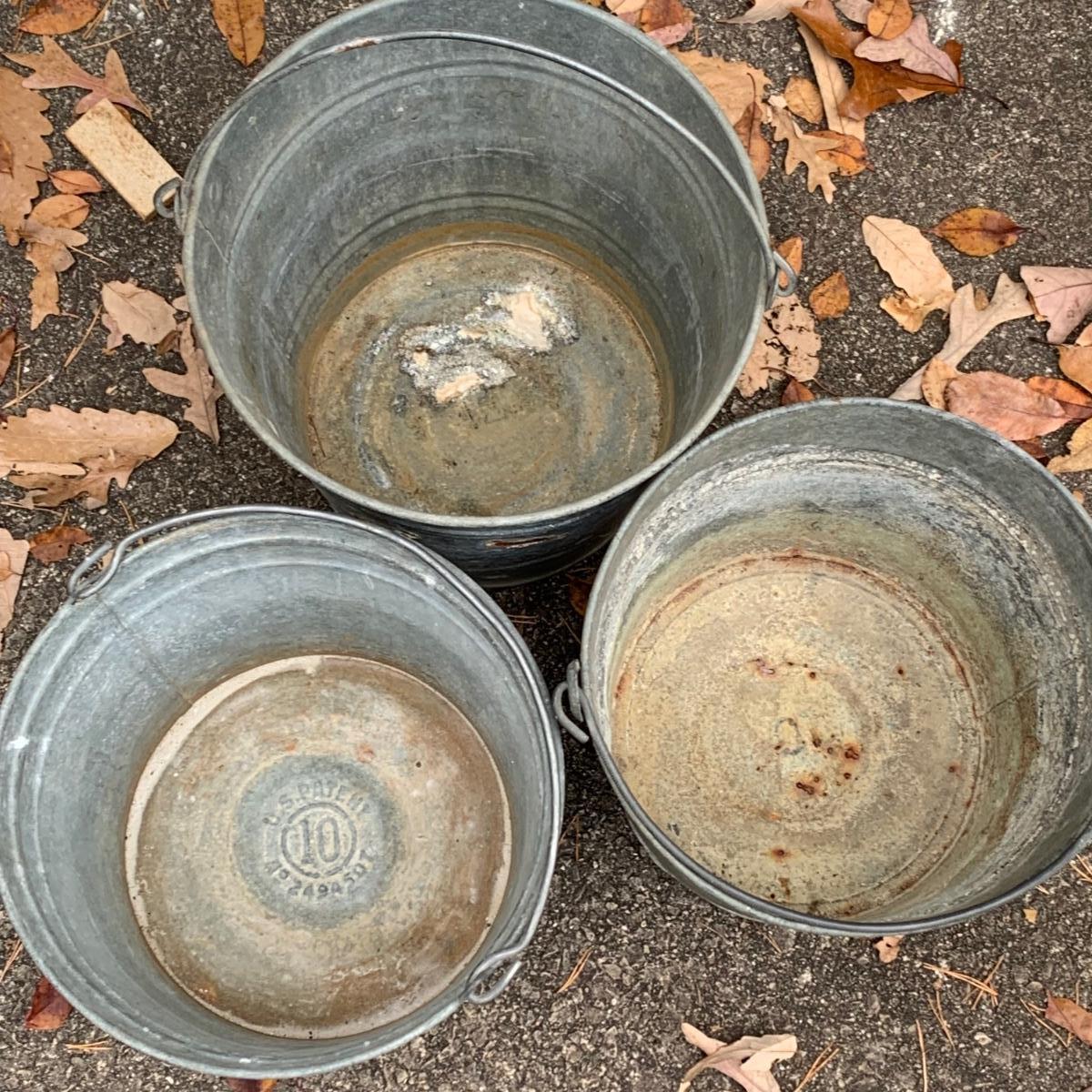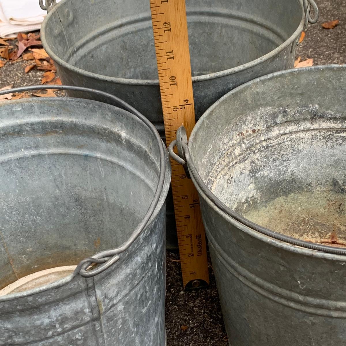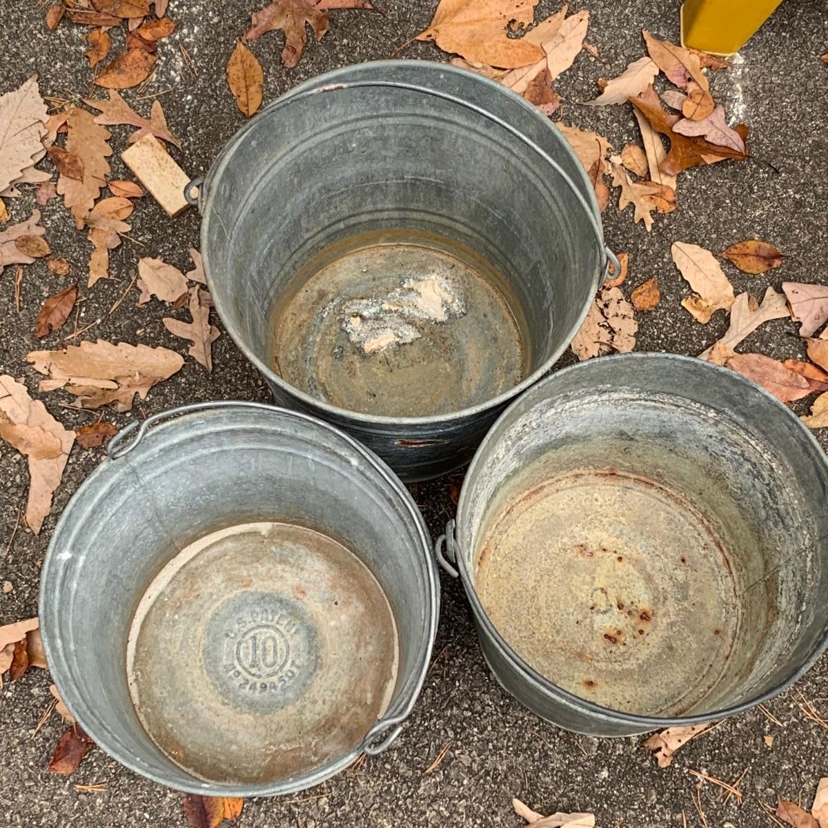 LOT 219R: Galvanized Steel Buckets, Ash Pail and Vintage Step Stools
