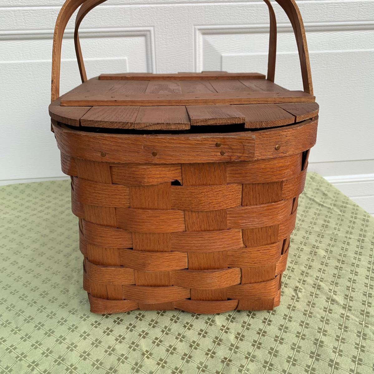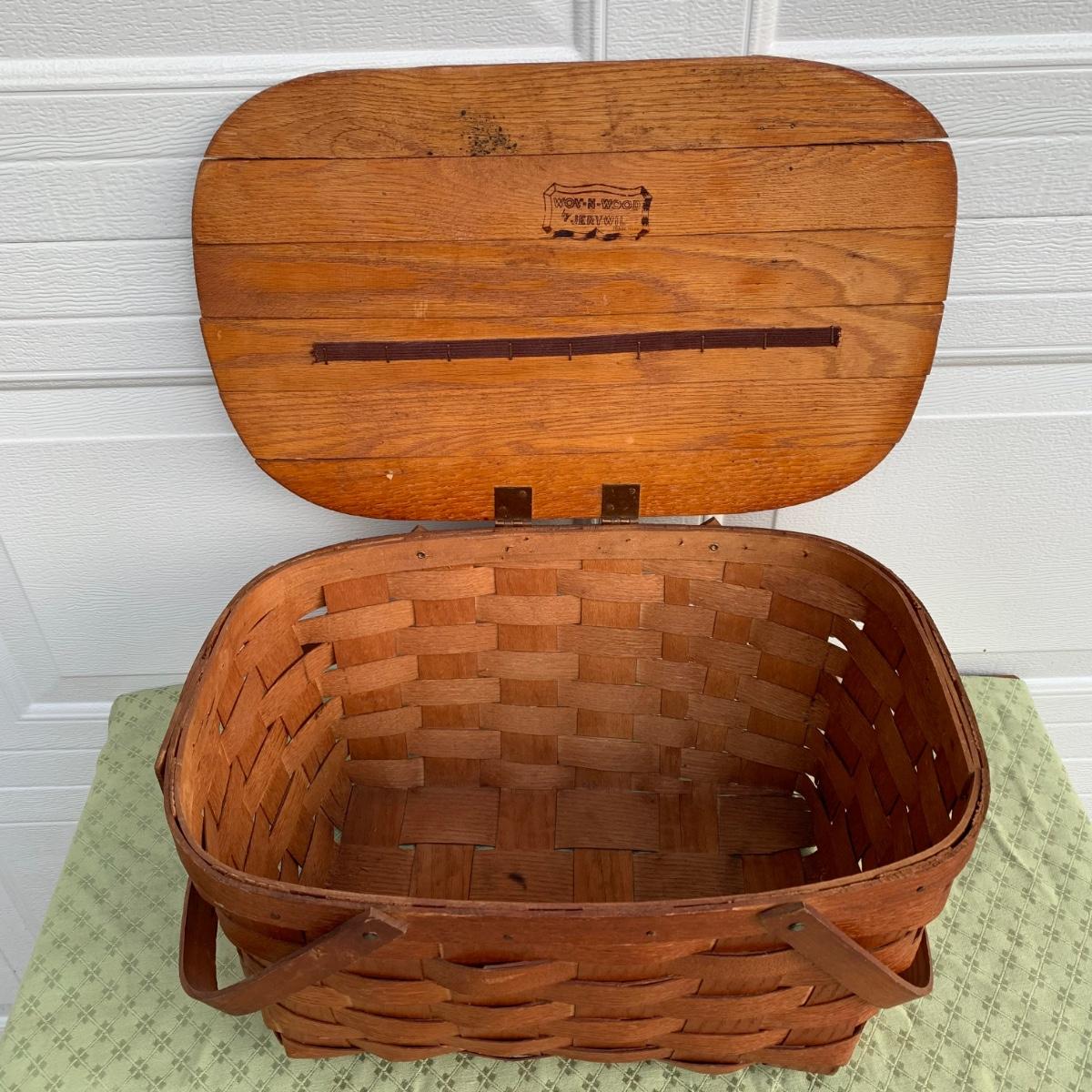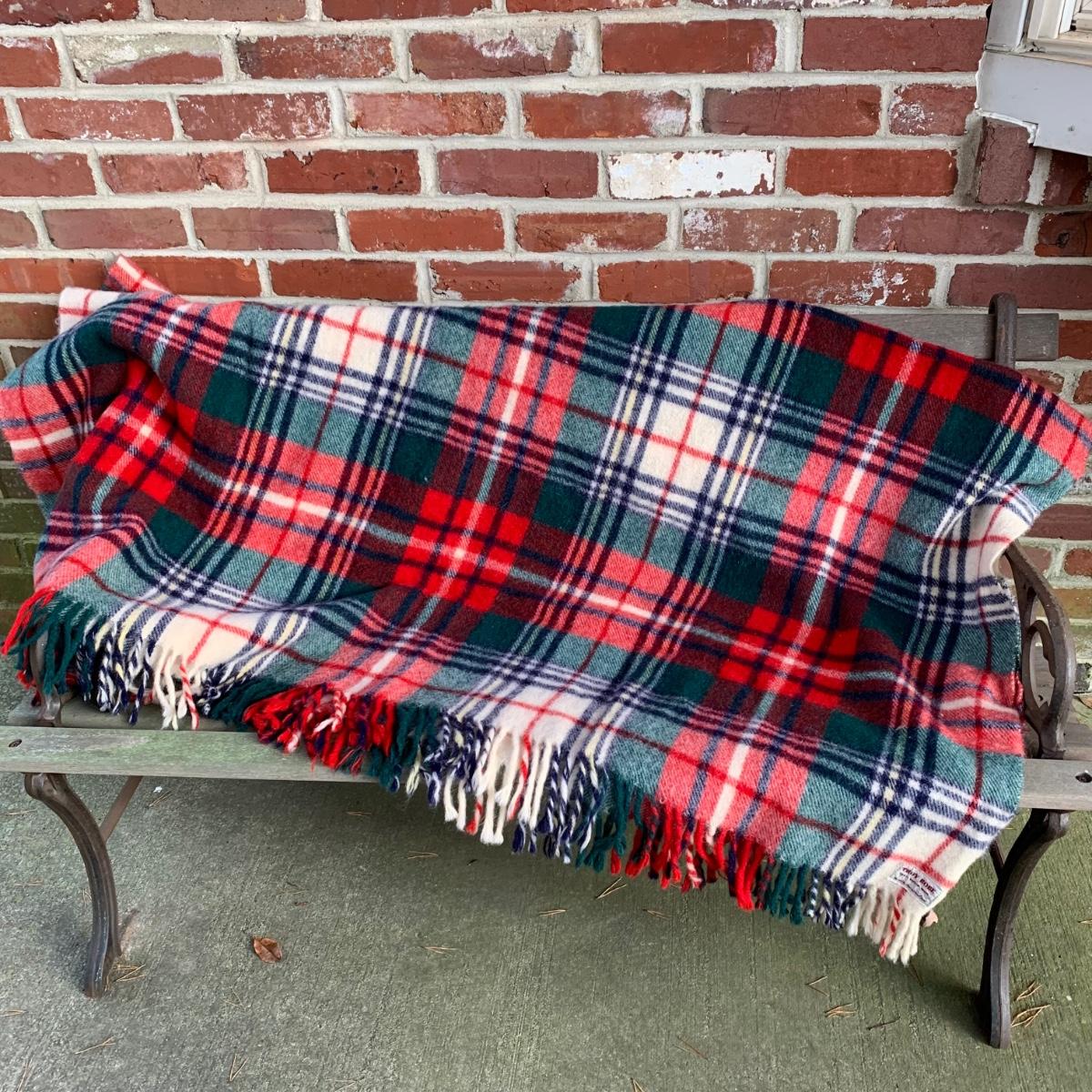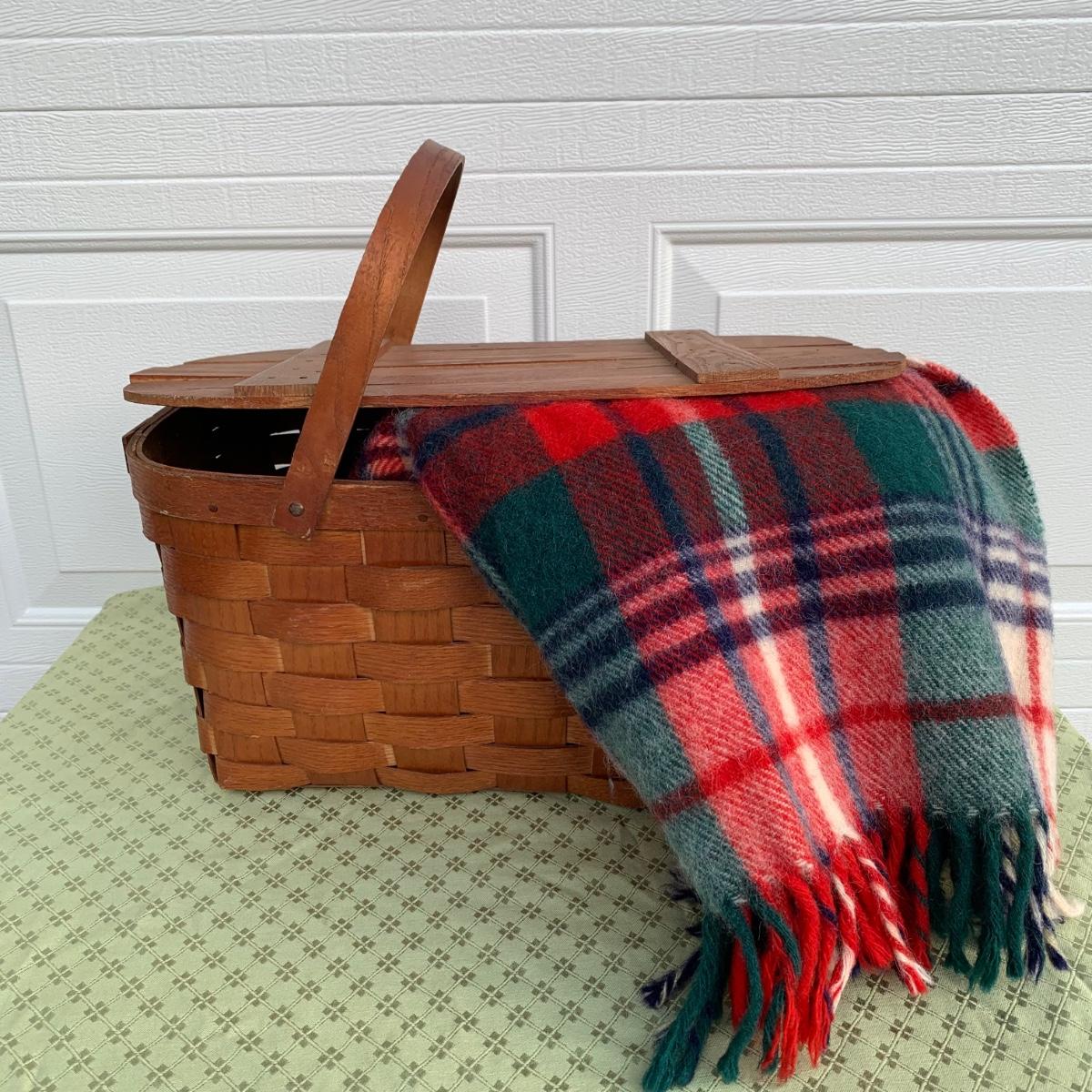 LOT 220R: Vintage Picnic Basket and Troy Robe 100% Wool Blanket